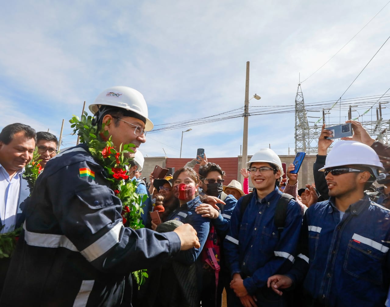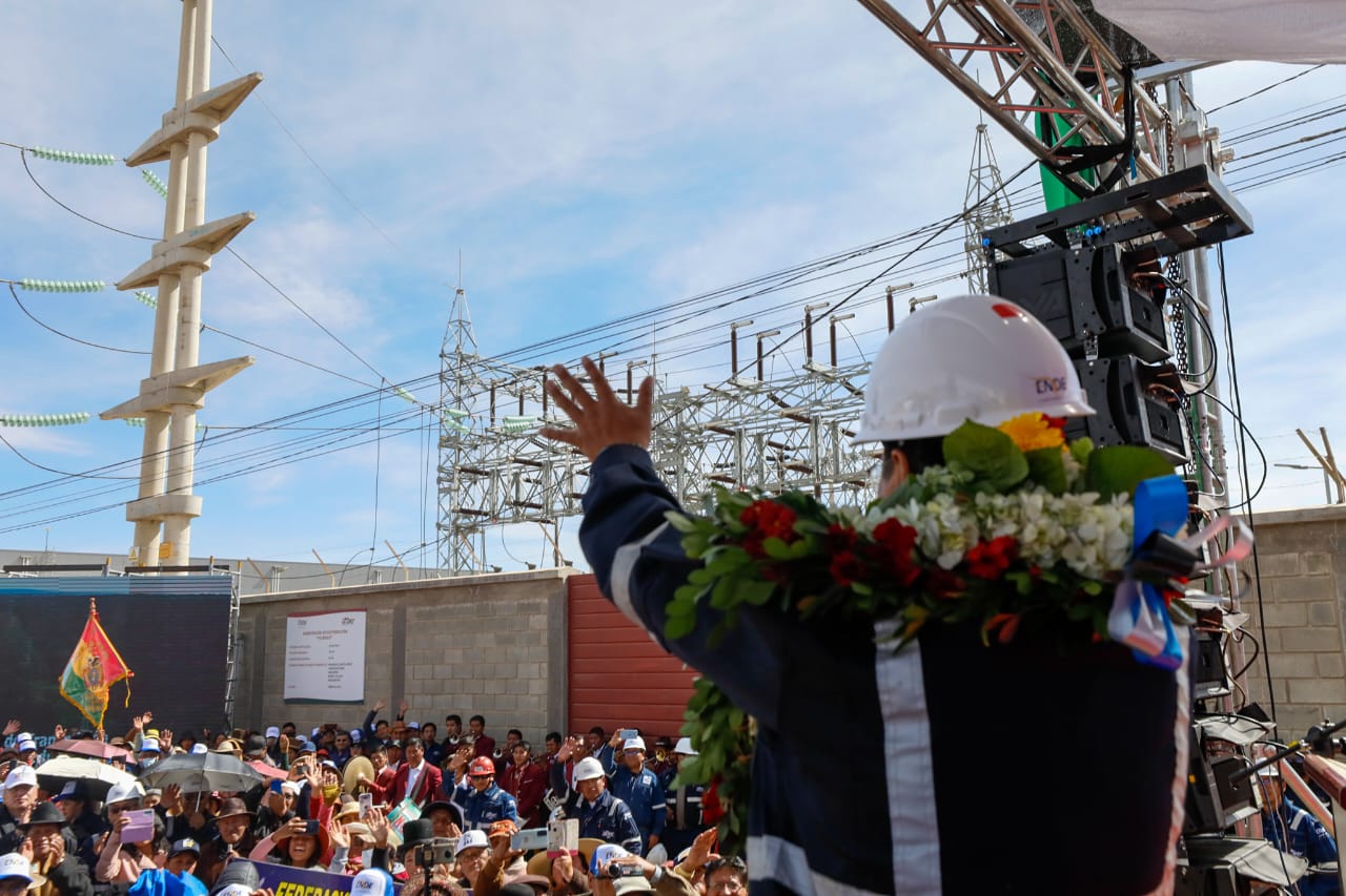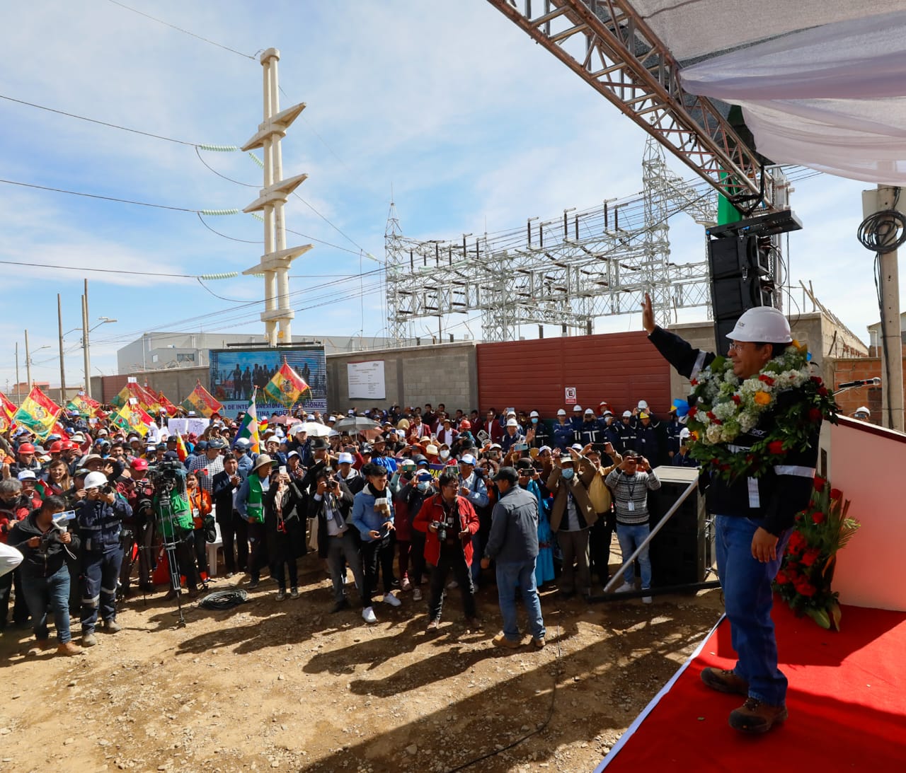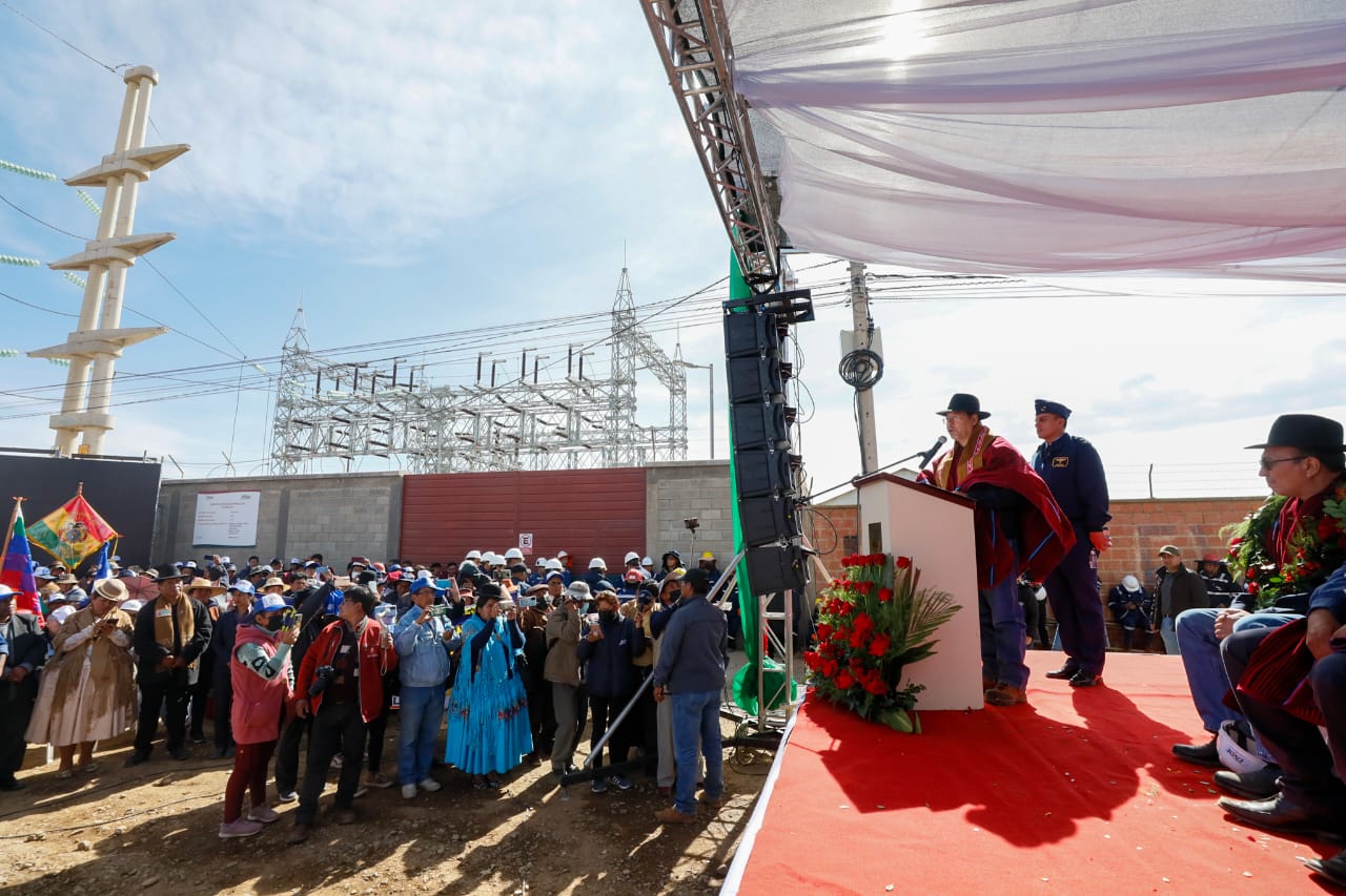 Presidente del Estado Luis Arce, inaugura la Subestación Viliroco 115/12,6 KV en el municipio de Viacha, La Paz. Fuente: Comunicación Presidencial