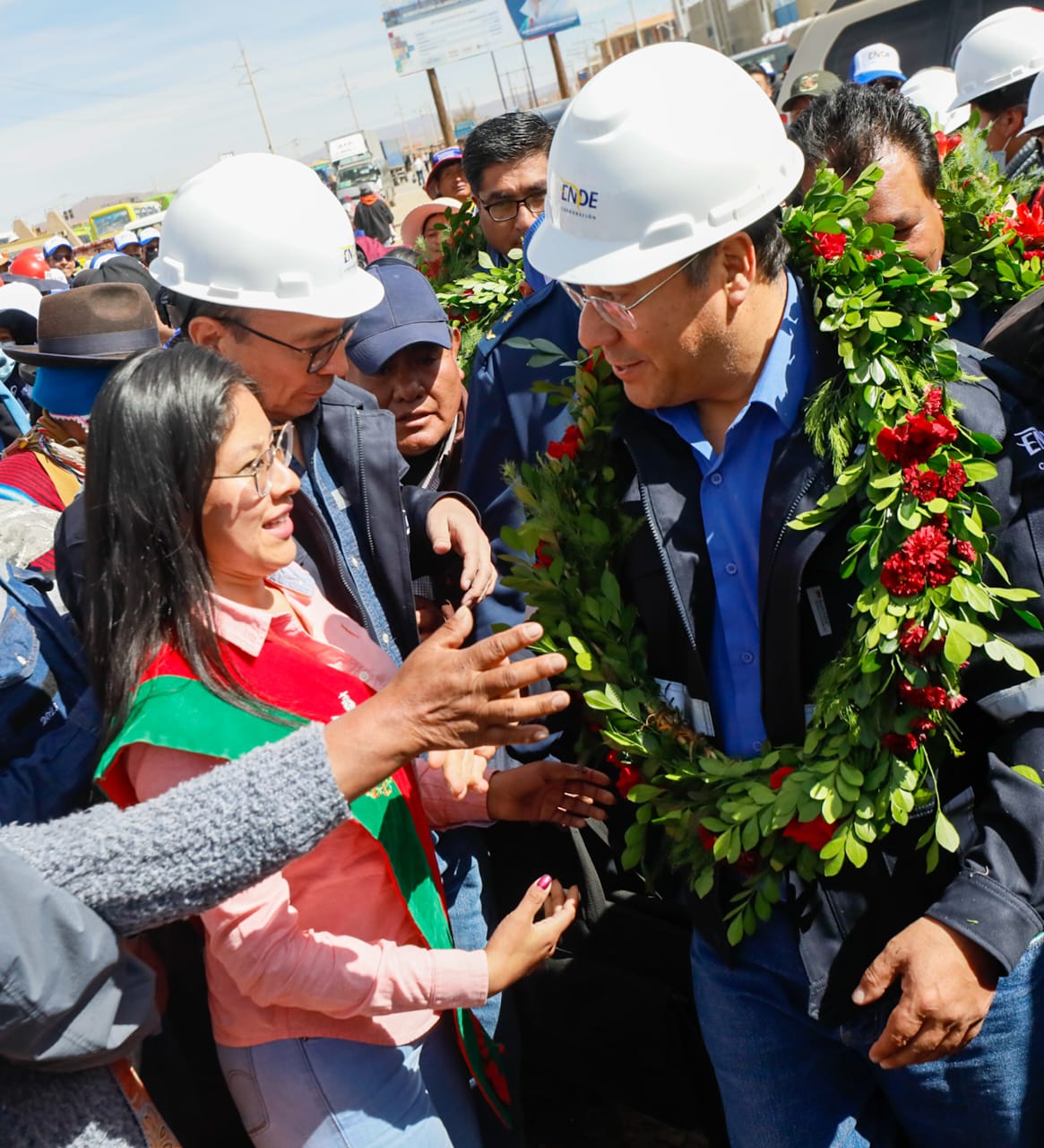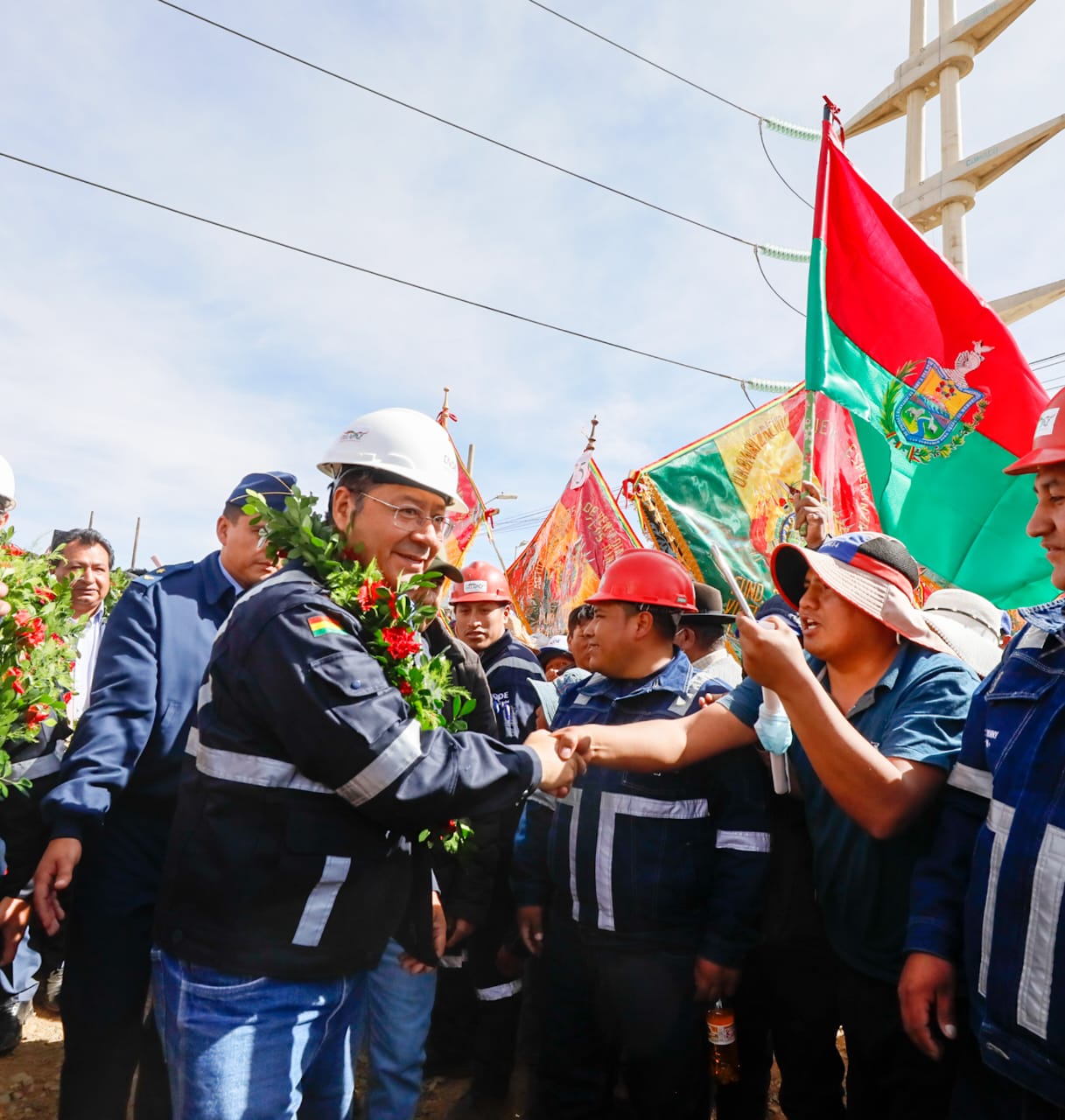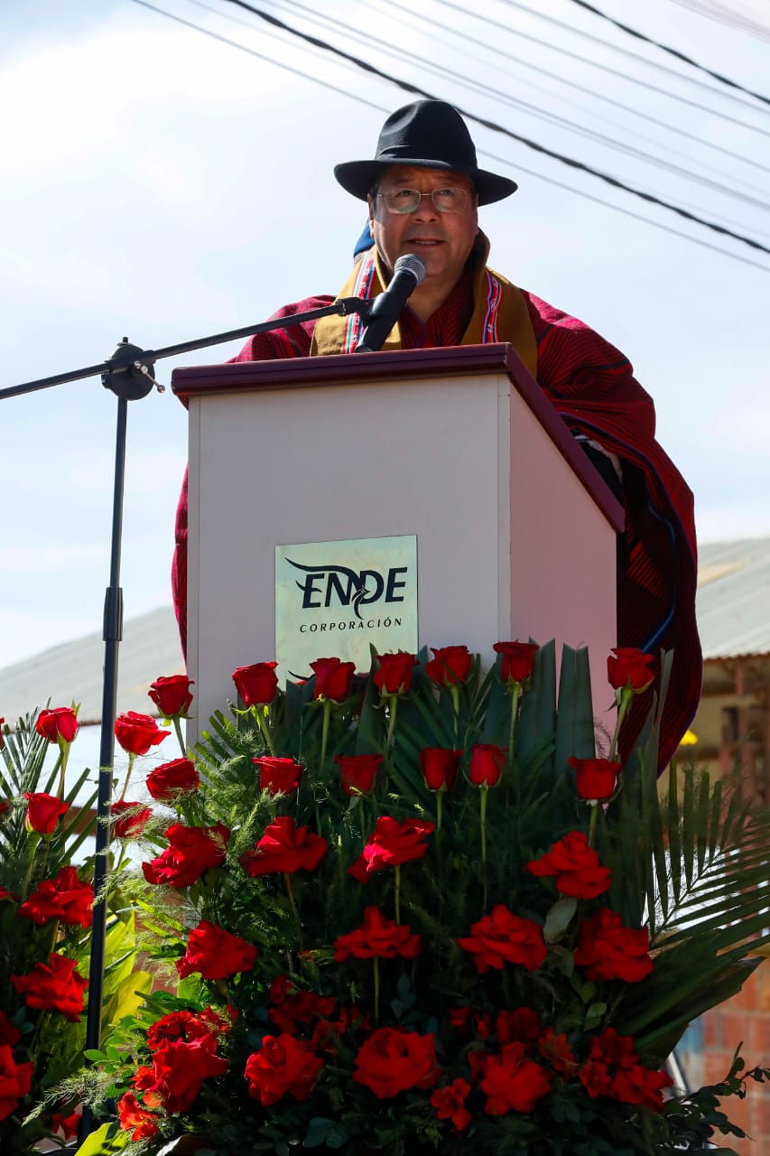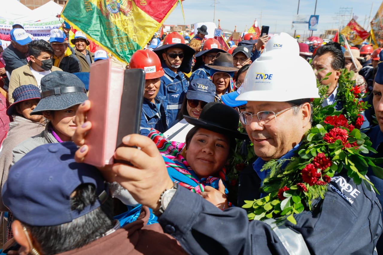 Presidente del Estado Luis Arce, inaugura la Subestación Viliroco 115/12,6 KV en el municipio de Viacha, La Paz. Fuente: Comunicación Presidencial