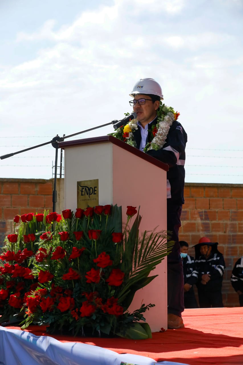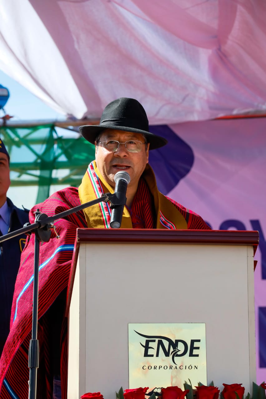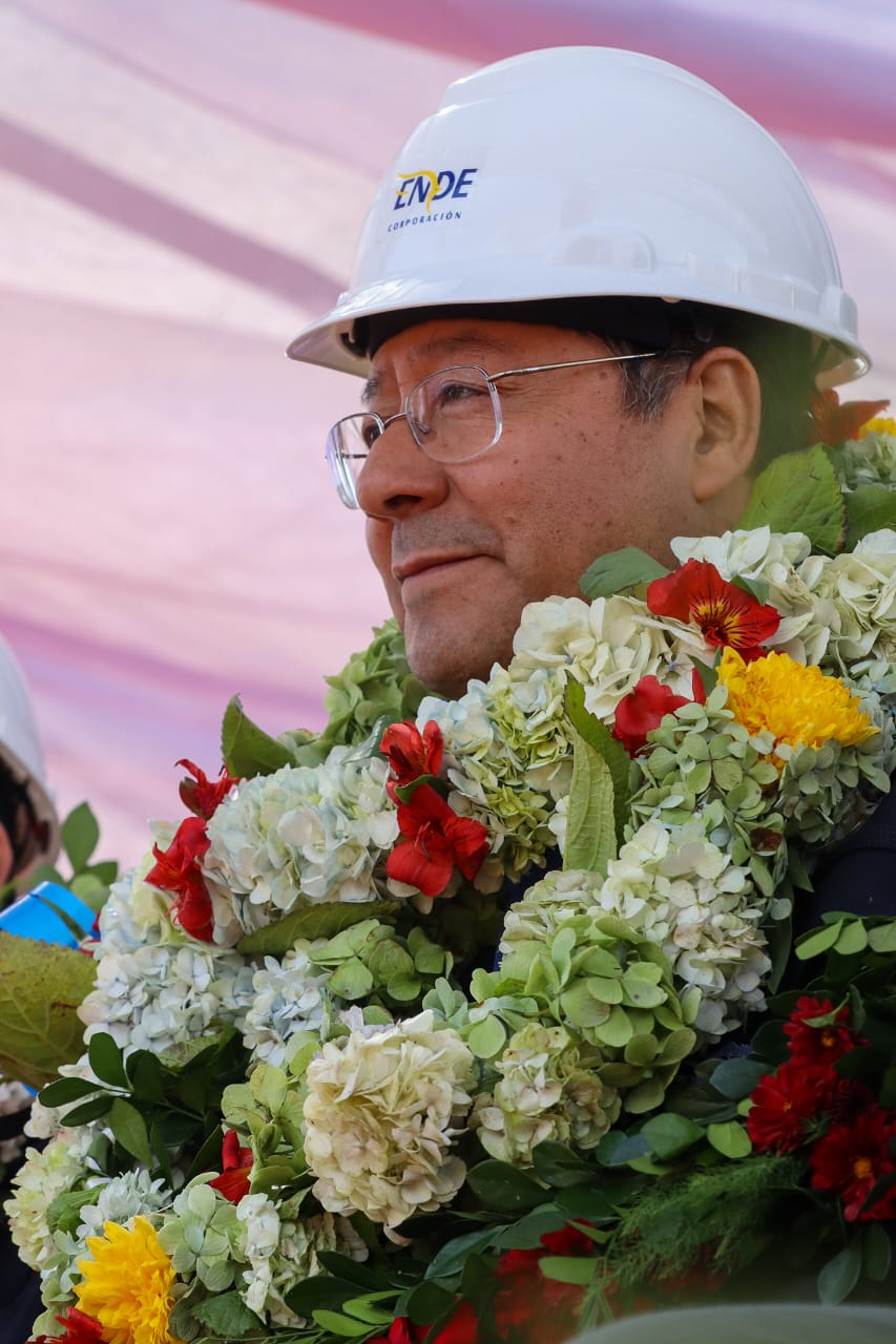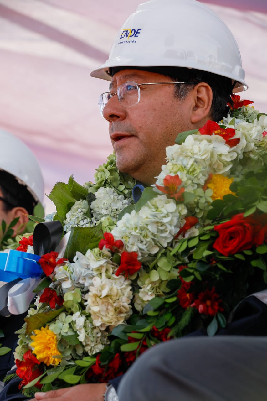 Presidente del Estado Luis Arce, inaugura la Subestación Viliroco 115/12,6 KV en el municipio de Viacha, La Paz. Fuente: Comunicación Presidencial