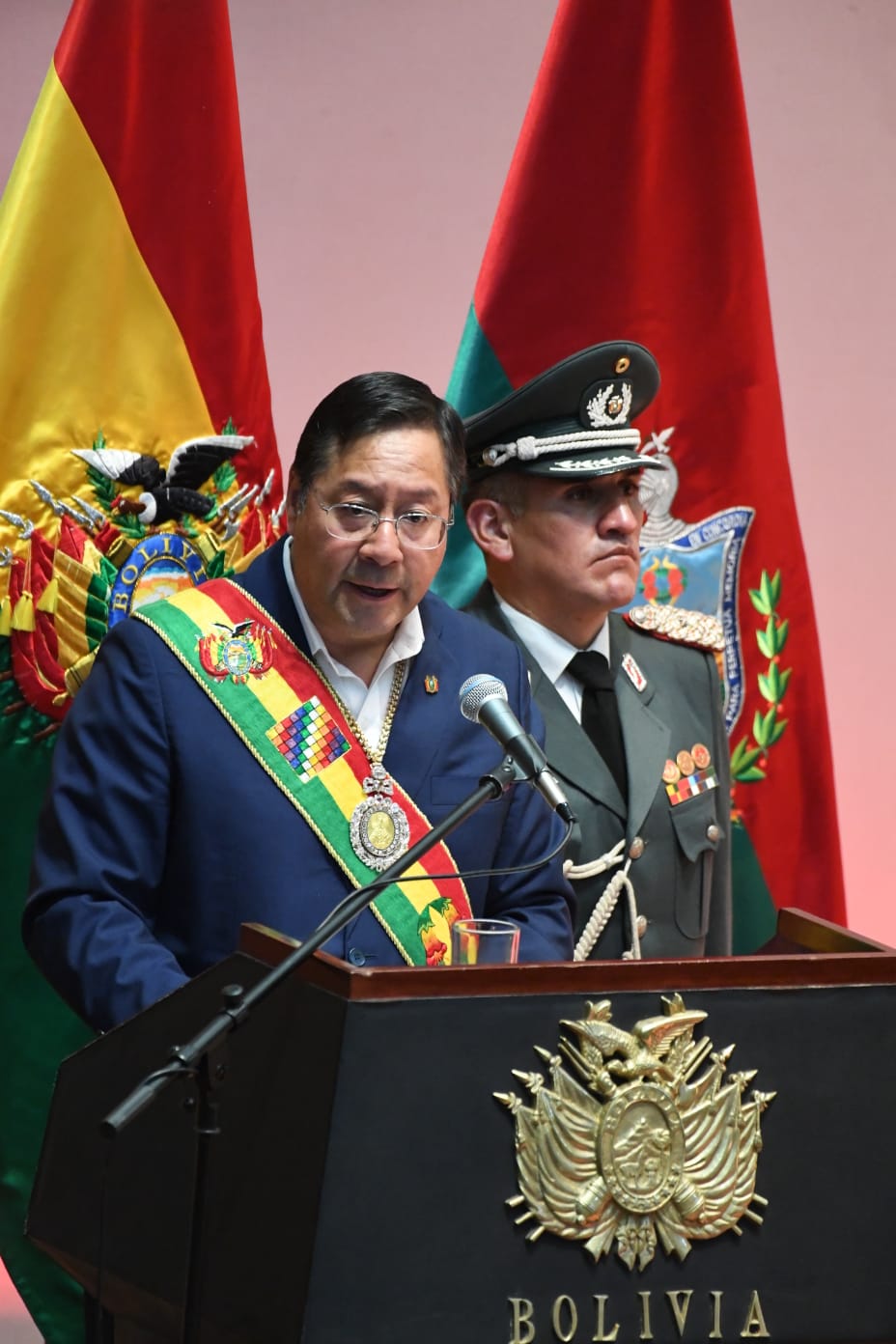 El Presidente del Estado Plurinacional de Bolivia Luis Arce Catacora, participa de la Sesión de Honor por los 214 años de gesta libertaria de La Paz. Fotos: Josué Cortéz