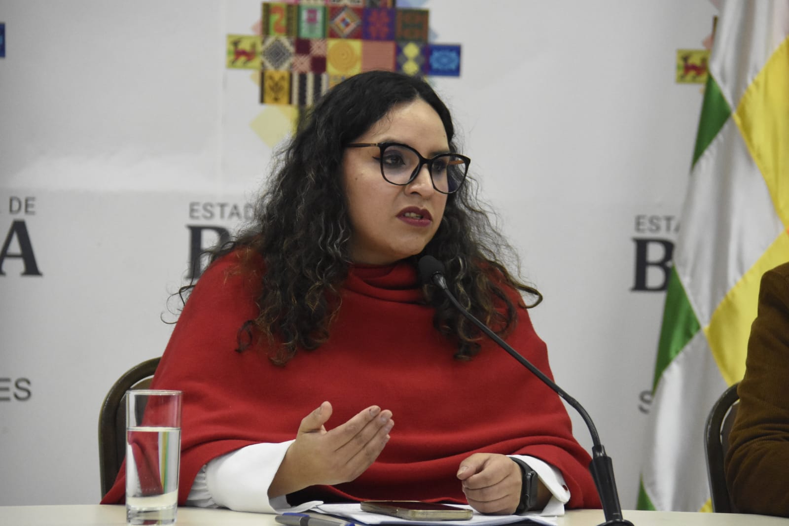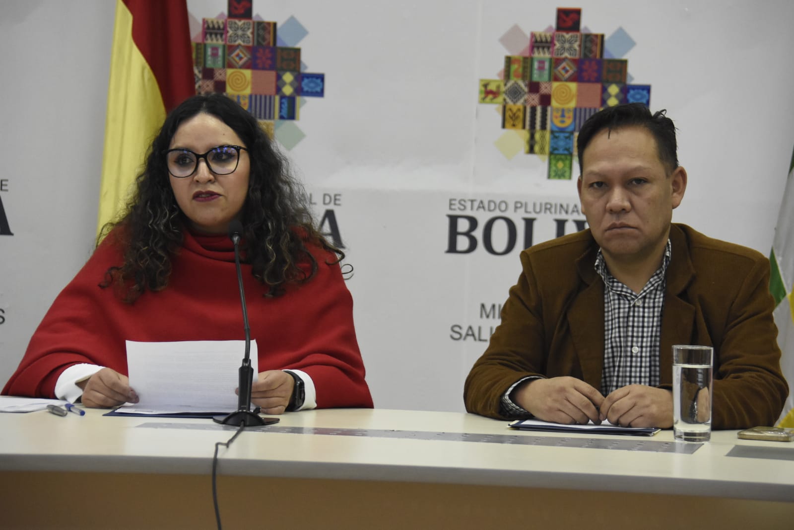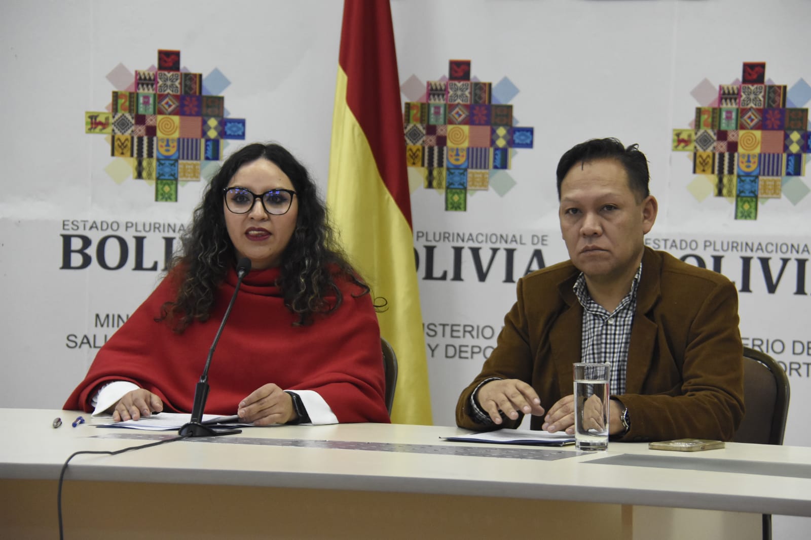 Ministra de Salud y Deportes, María Renée Castro brinda conferencia de prensa en referencia a denuncia de corrupción en la CNS de la ciudad de Santa Cruz