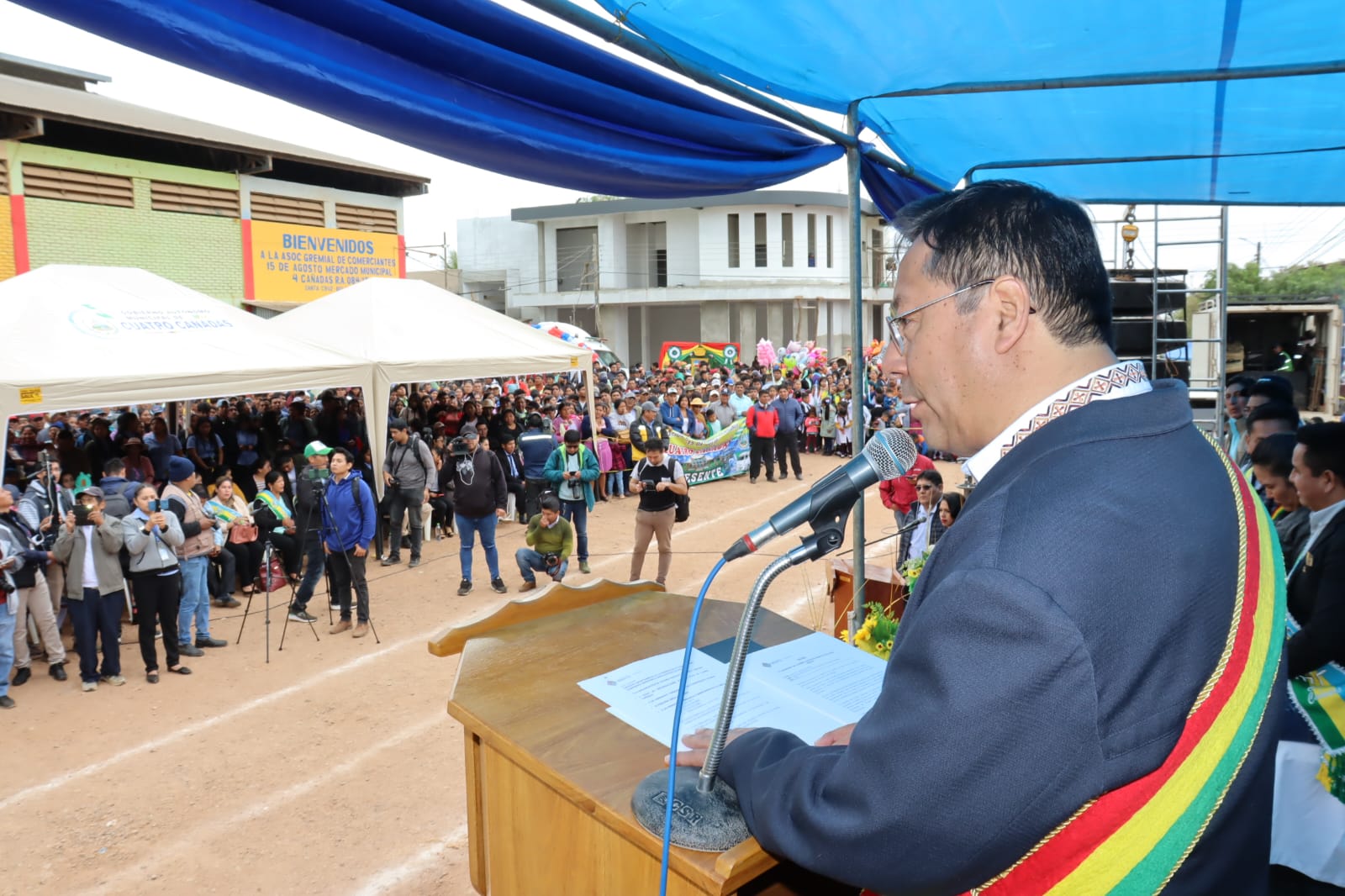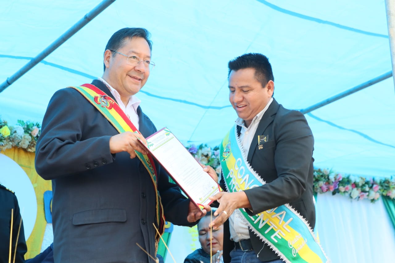 Presidente del Estado Luis Arce, participa del 37 aniversario del municipio de Cuatro Cañadas, Santa Cruz. Fuente: Comunicación Presidencial