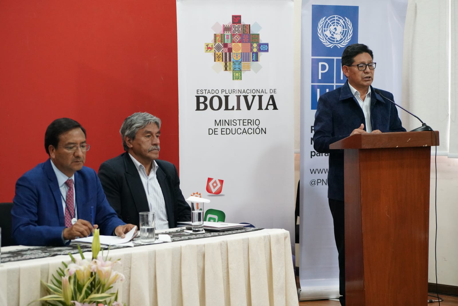 Acto de firma del “Memorándum de Entendimiento” entre el Ministerio de Educación y el Programa de las Naciones Unidas para el Desarrollo (PNUD). Fotos: Jorge Mamani