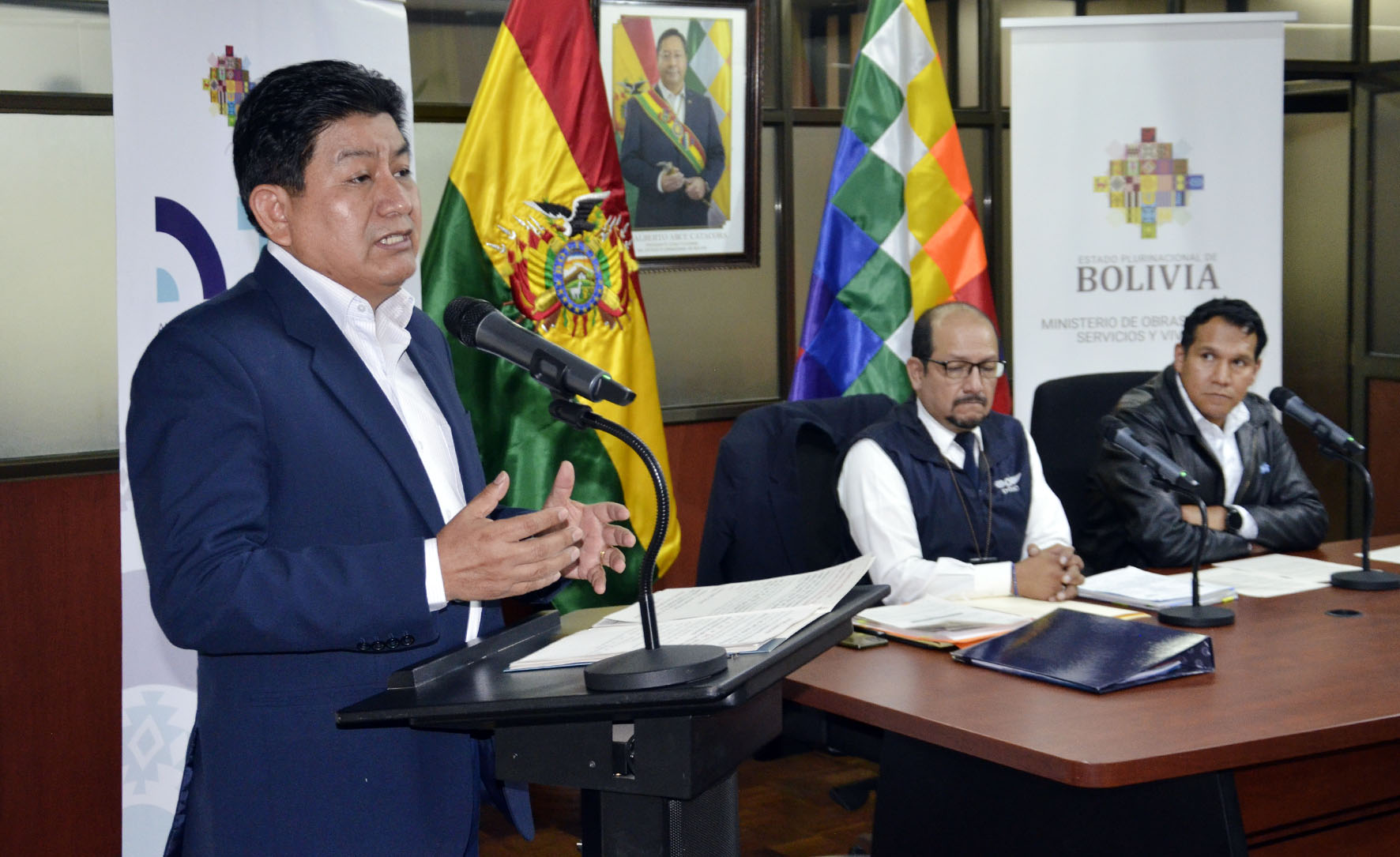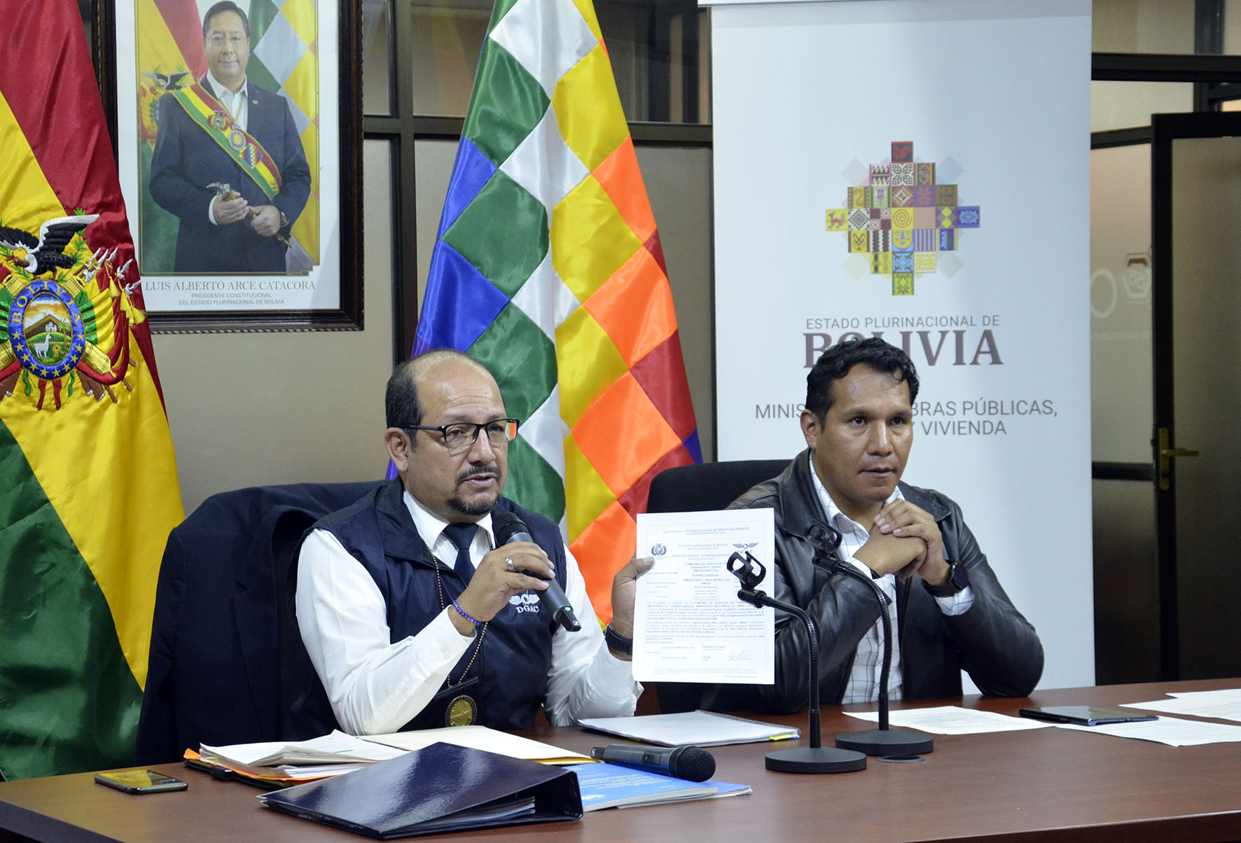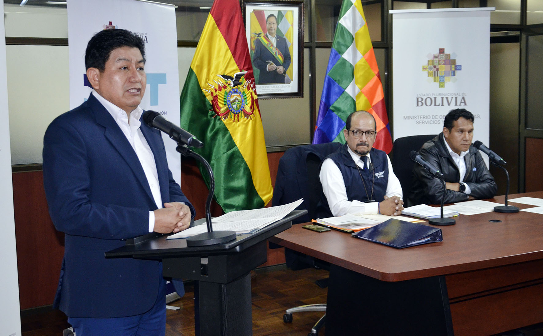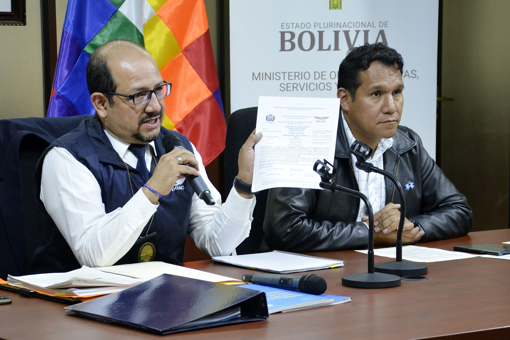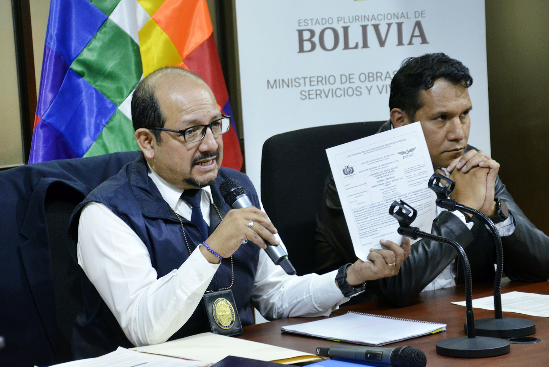 Ministro de Obras Públicas, Servicios y Vivienda, Edgar Montaño en conferencia de prensa se refiere a la aerolínea Amaszonas