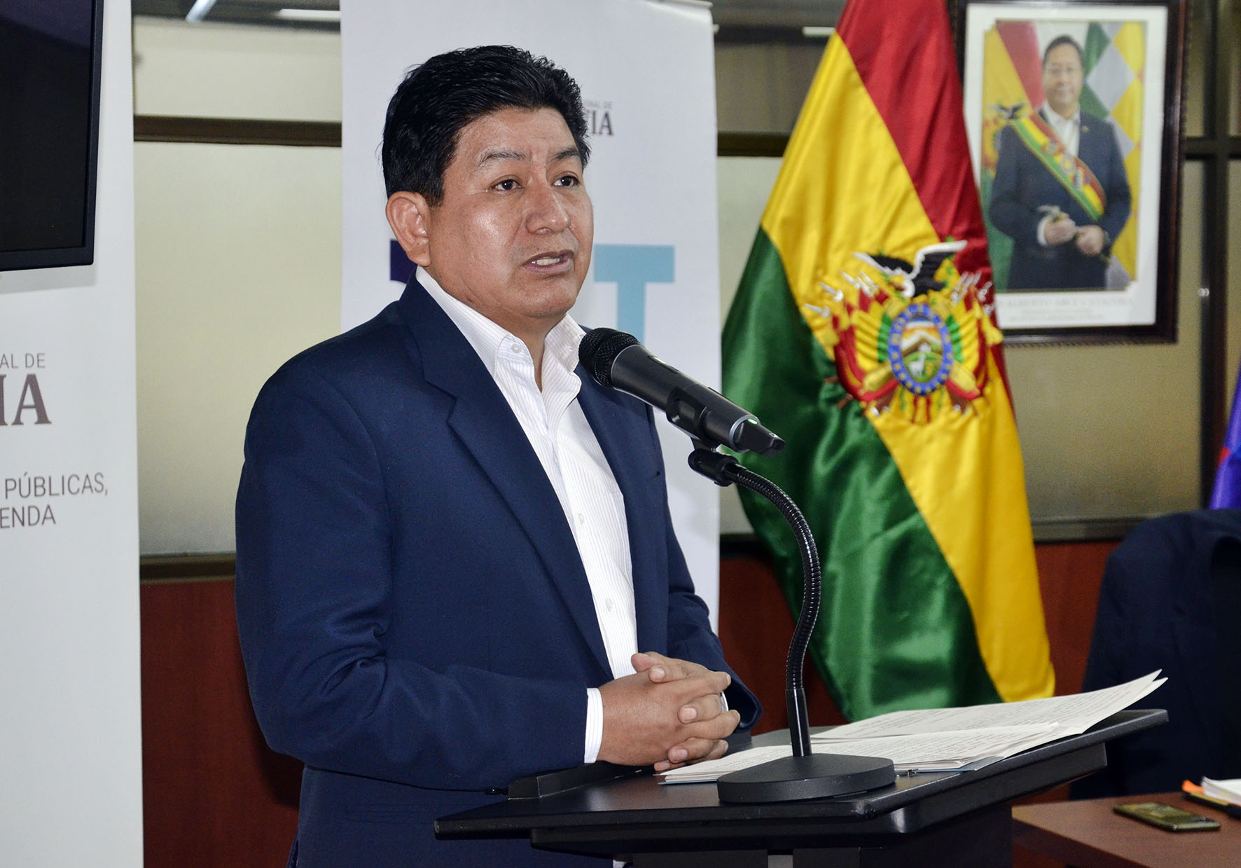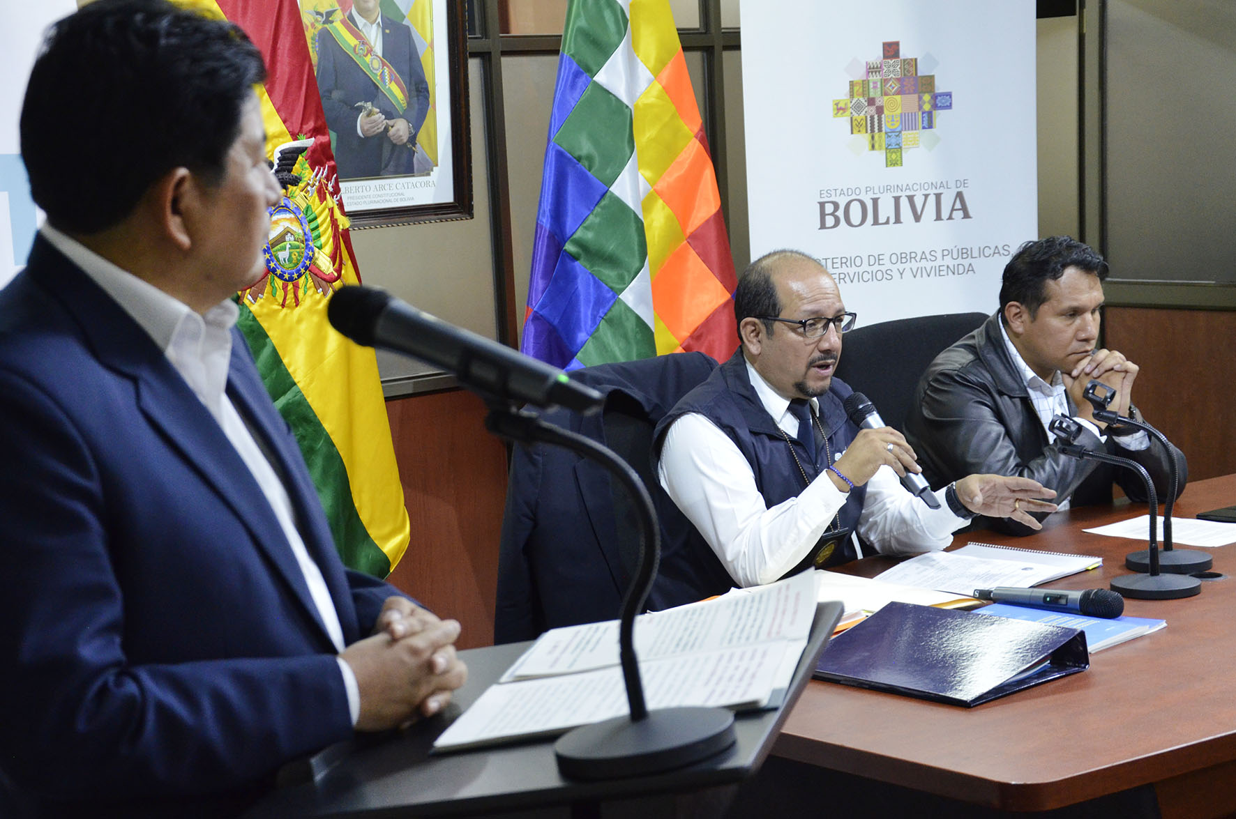 Ministro de Obras Públicas, Servicios y Vivienda, Edgar Montaño en conferencia de prensa se refiere a la aerolínea Amaszonas. Fotos: Freddy Barragán