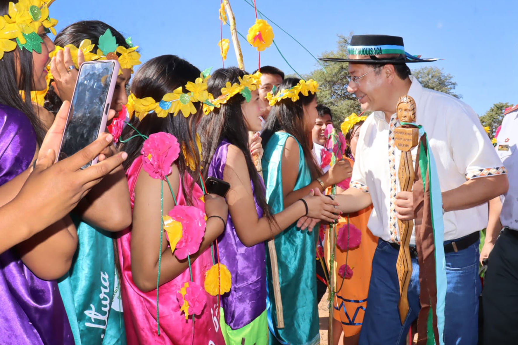 Presidente del Estado Luis Arce, participa en el acto de aniversario de la Asamblea del Pueblo Guaraní. Fuente: Comunicación Presidencial