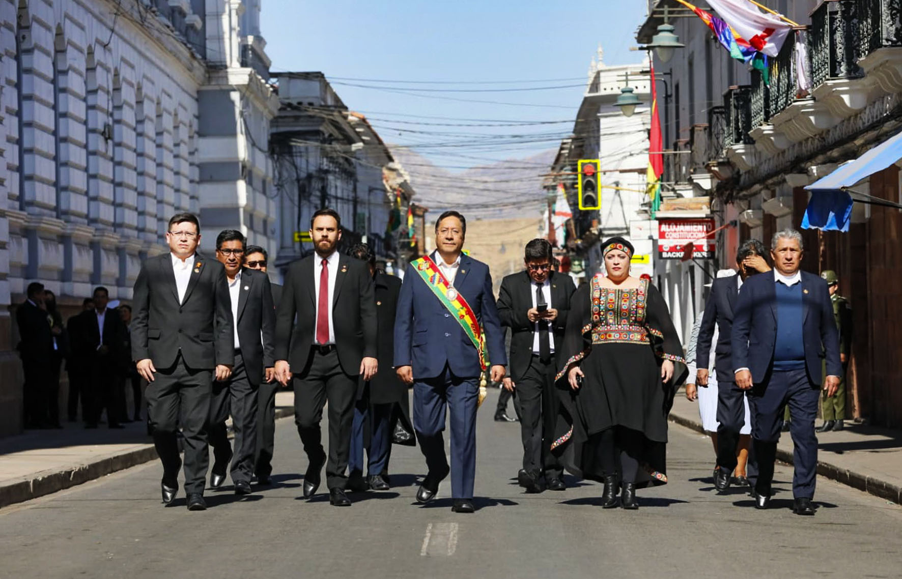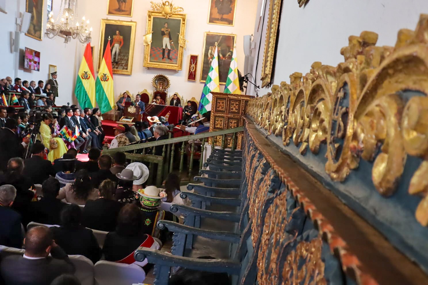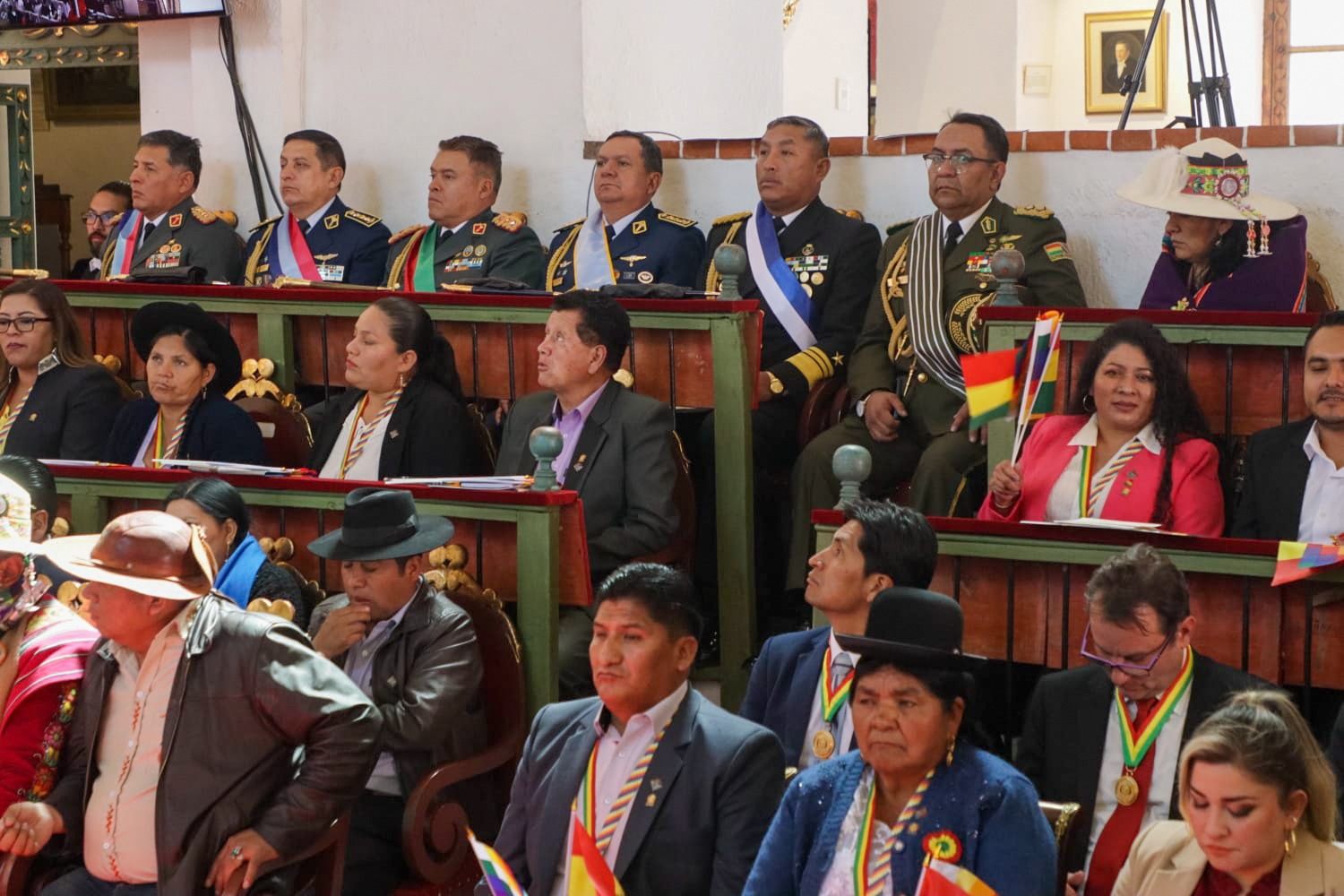 Presidente del Estado Luis Arce participa en la Sesión de Honor por el 198 aniversario de Bolivia, en Sucre. Fuente: Comunicación Presidencial