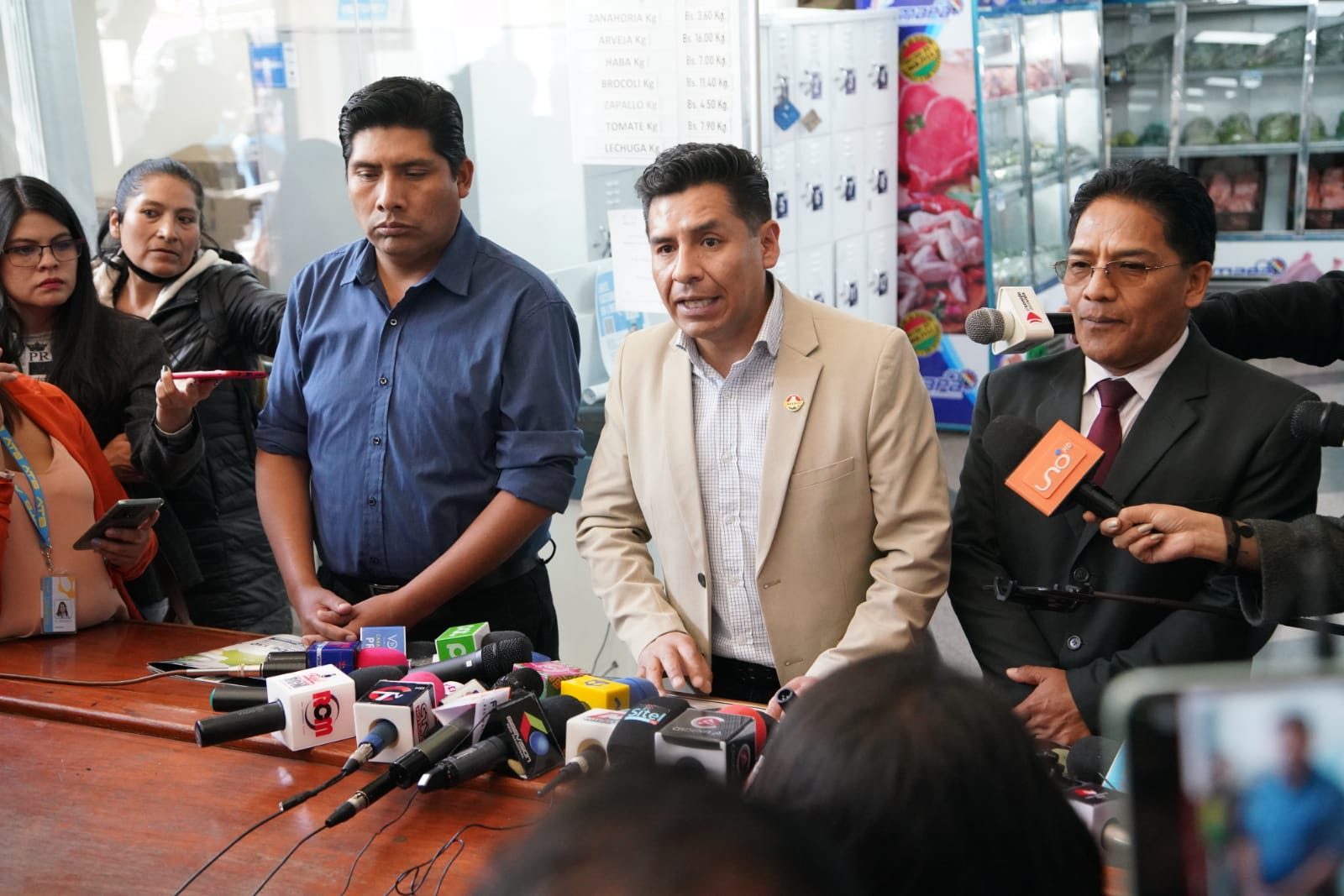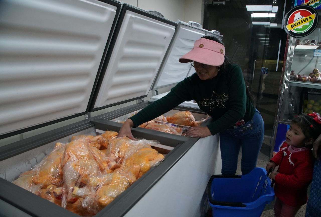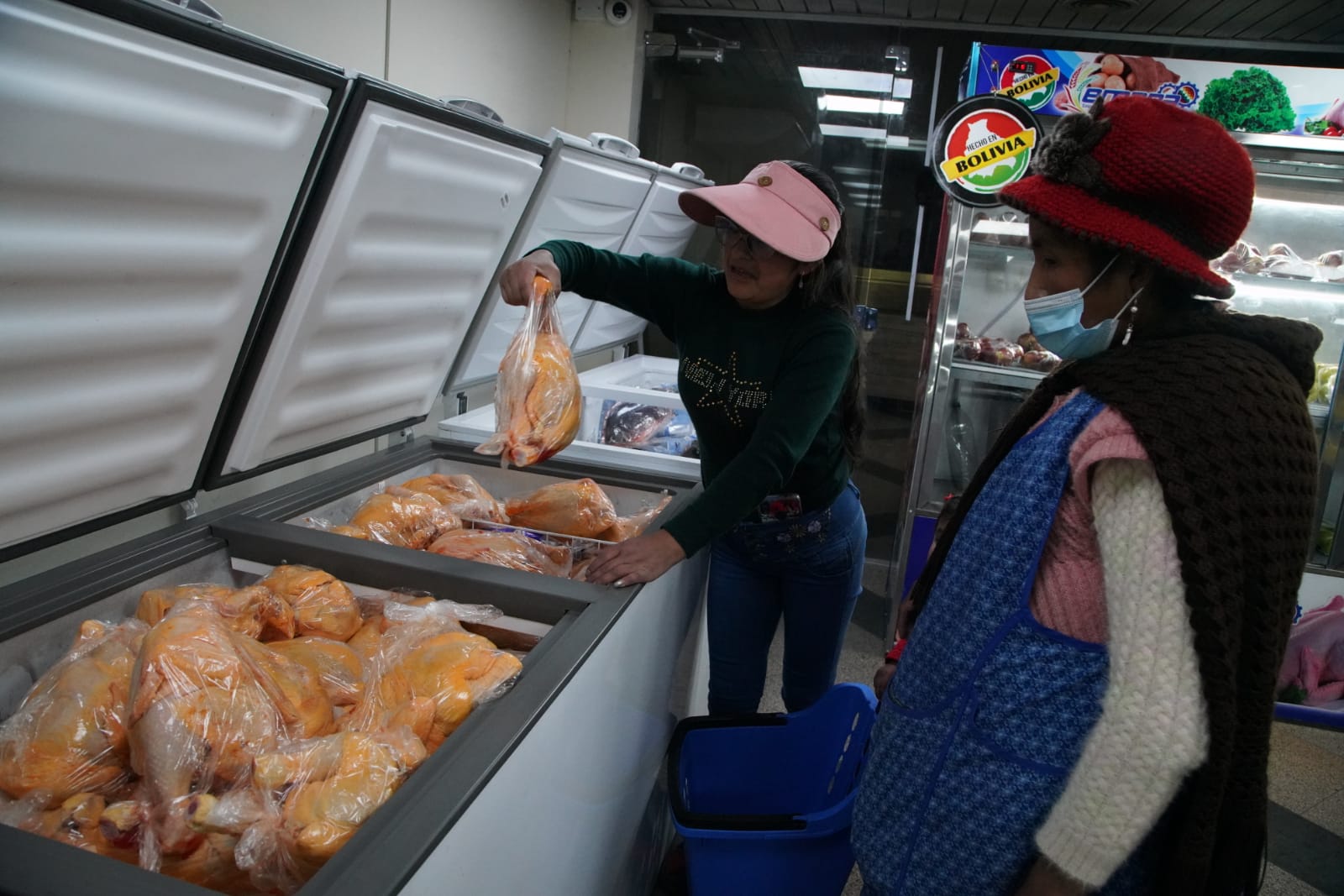 El Ministerio de Desarrollo Productivo y Economía Plural, el Ministerio de Justicia y Emapa , informan sobre la verificación de precios y abastecimiento de carne de pollo a precio justo. Fotos: Jorge Mamani