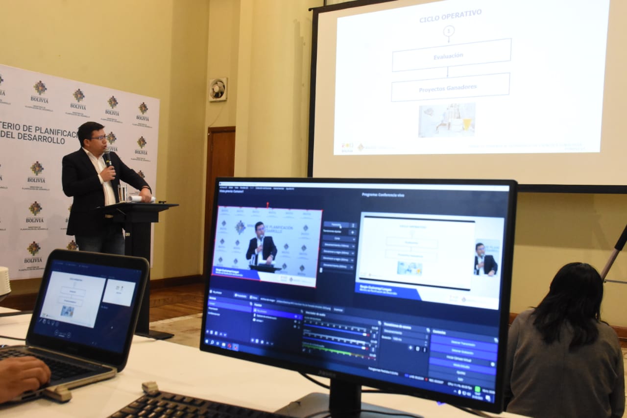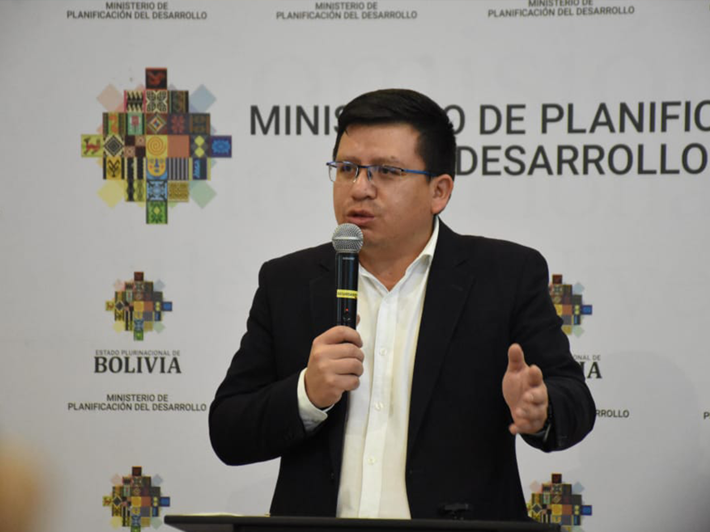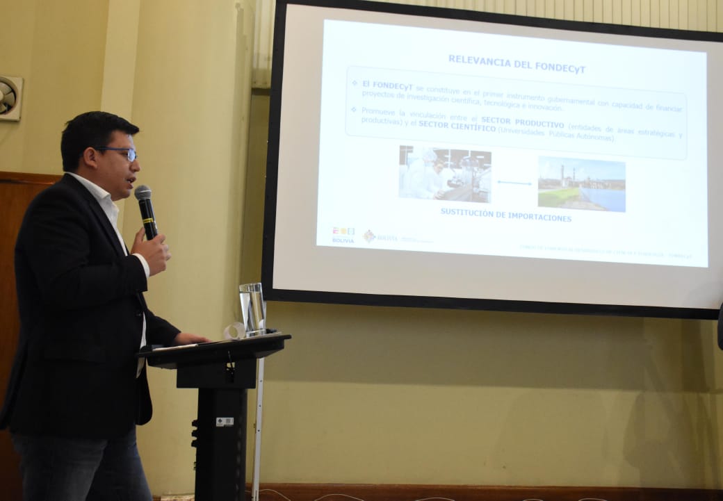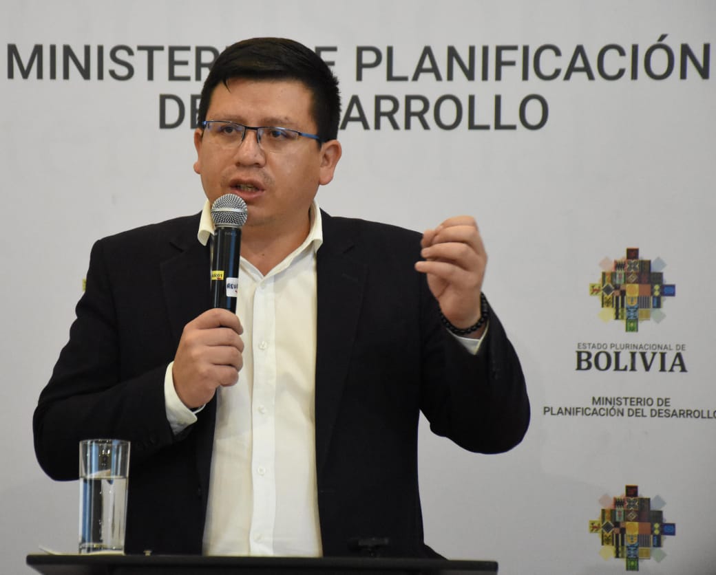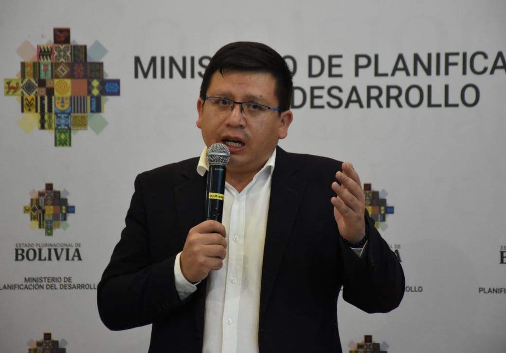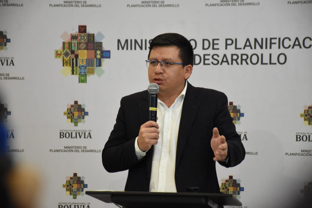 El Ministro de Planificación Sergio Cusicanqui en conferencia de prensa informa sobre la creación del Fondo de Fomento al Desarrollo de Ciencia y Tecnología para las universidades públicas autónomas.