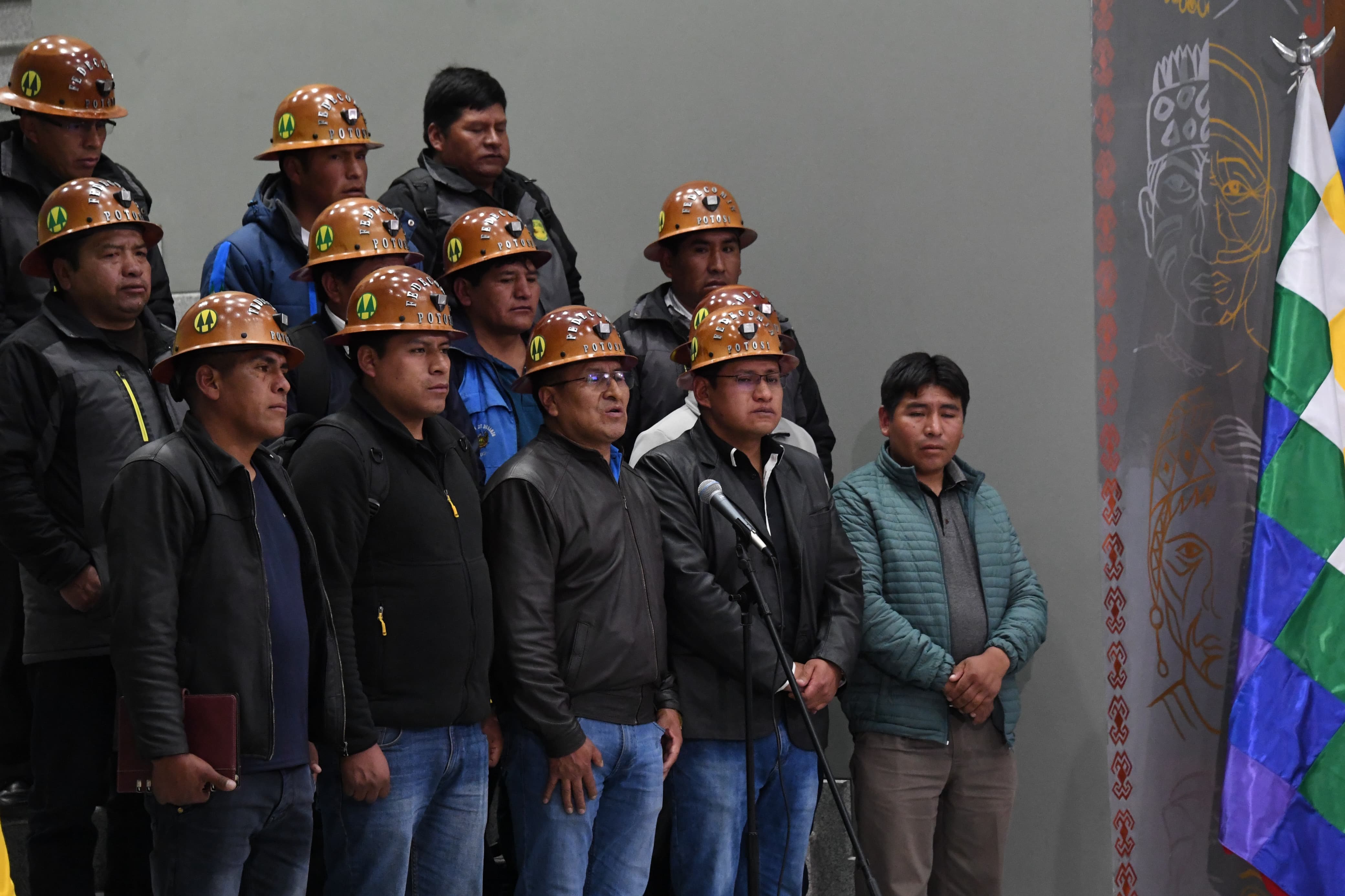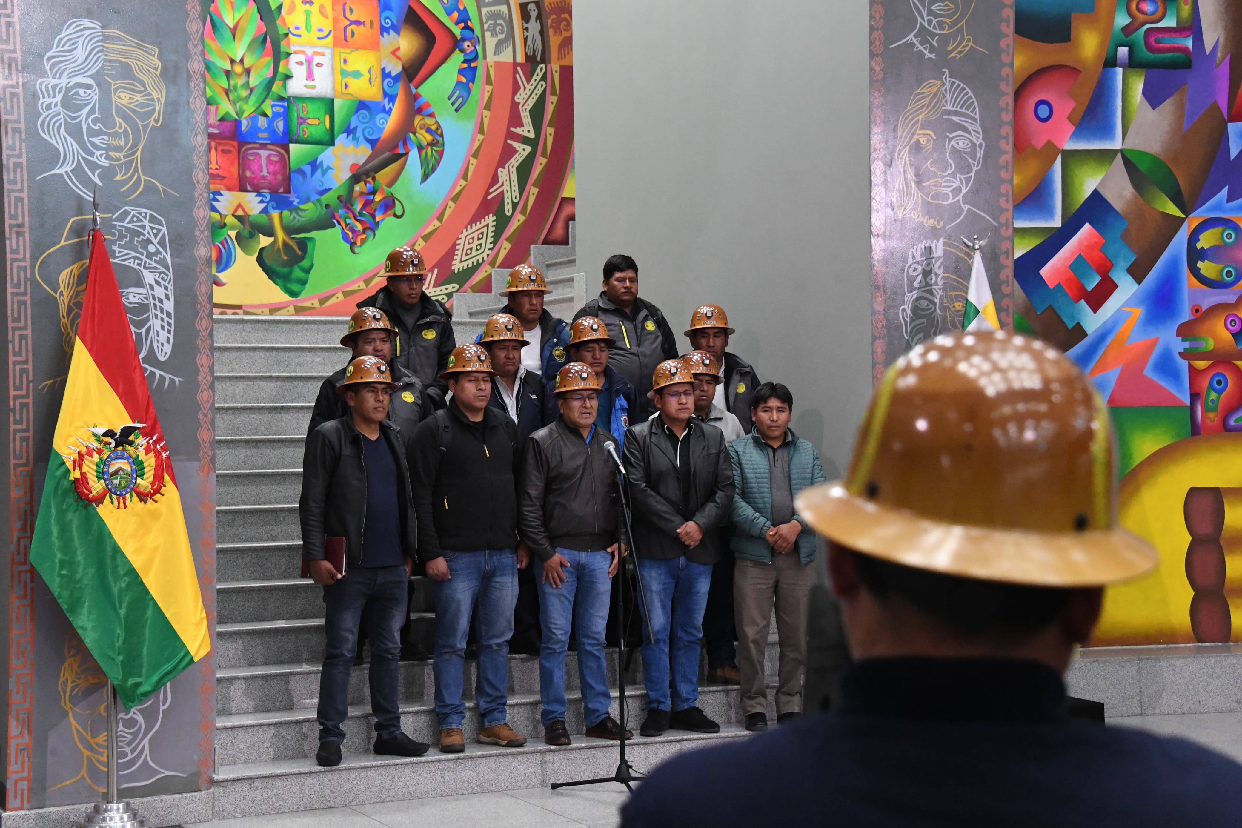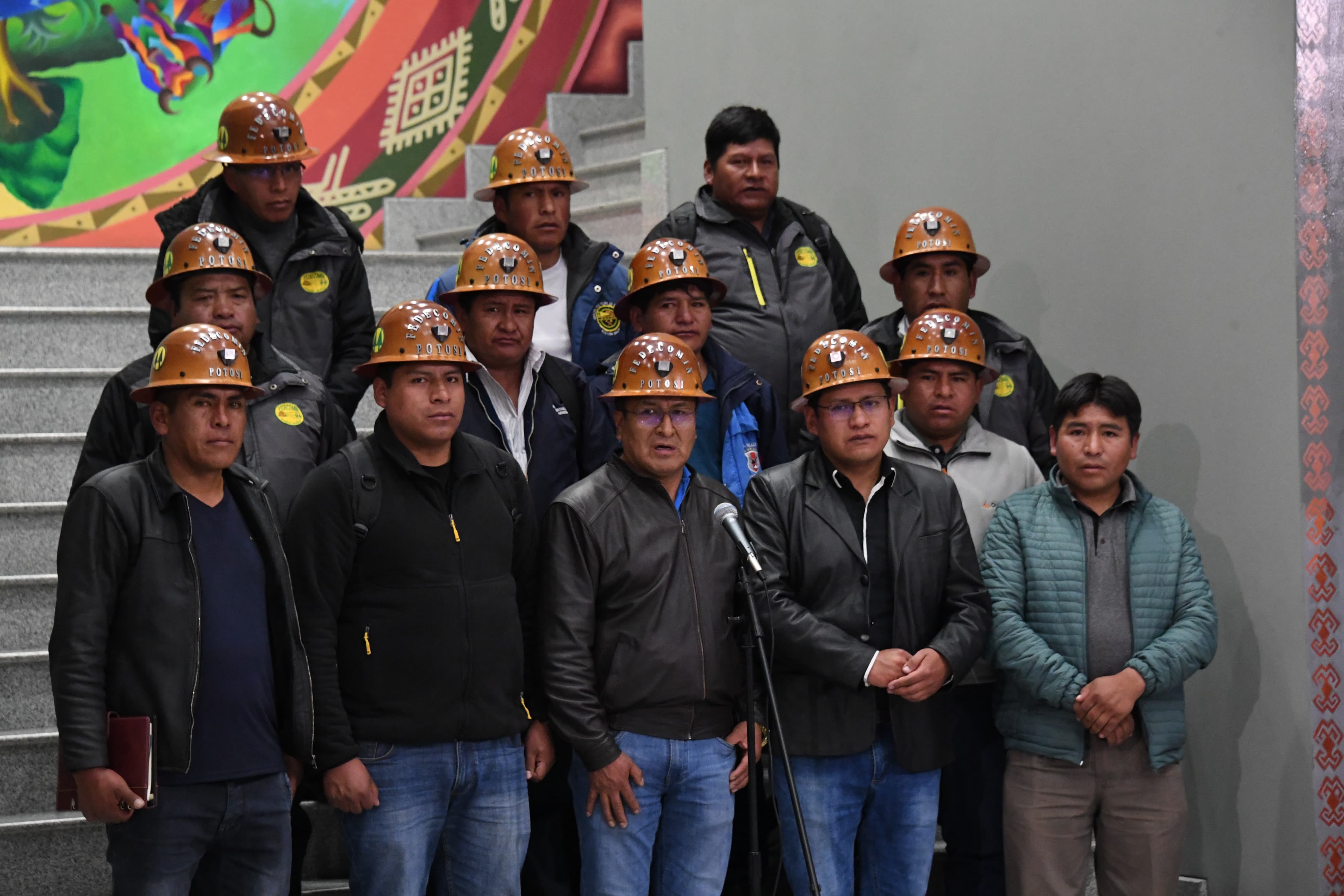 La Federación Departamental de Cooperativas Mineras de Bolivia (FEDECOMIN) brinda declaraciones a la prensa en el Hall de la Casa Grande del Pueblo.Estefanny Bolivar ArancibiaGalería Fotográfica 31 Agosto 2023 Visto: 5579ShareTwittearshare with Whatsappshare with Telegram Fuente: Viceministerio de Comunicación.AnteriorSiguiente