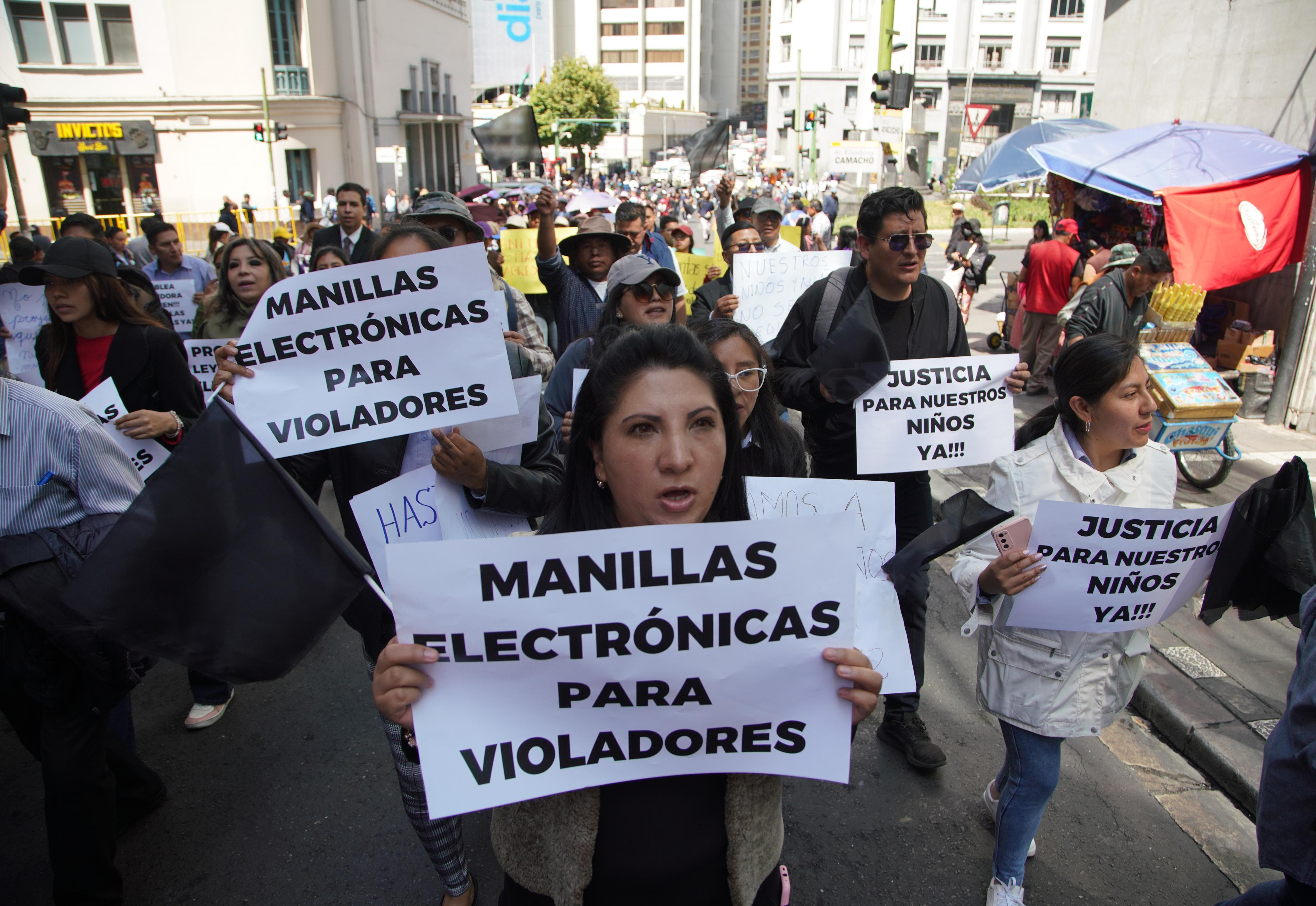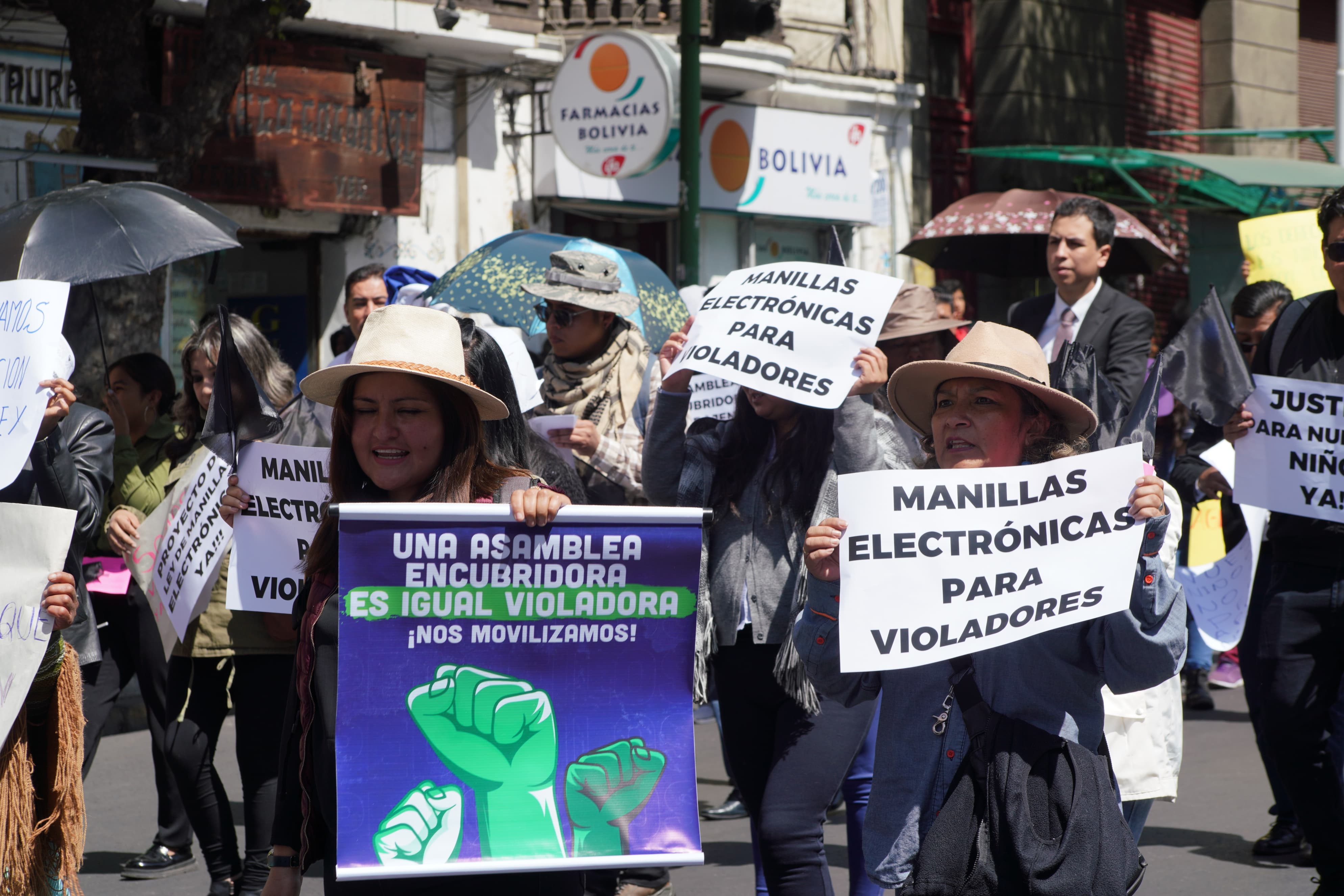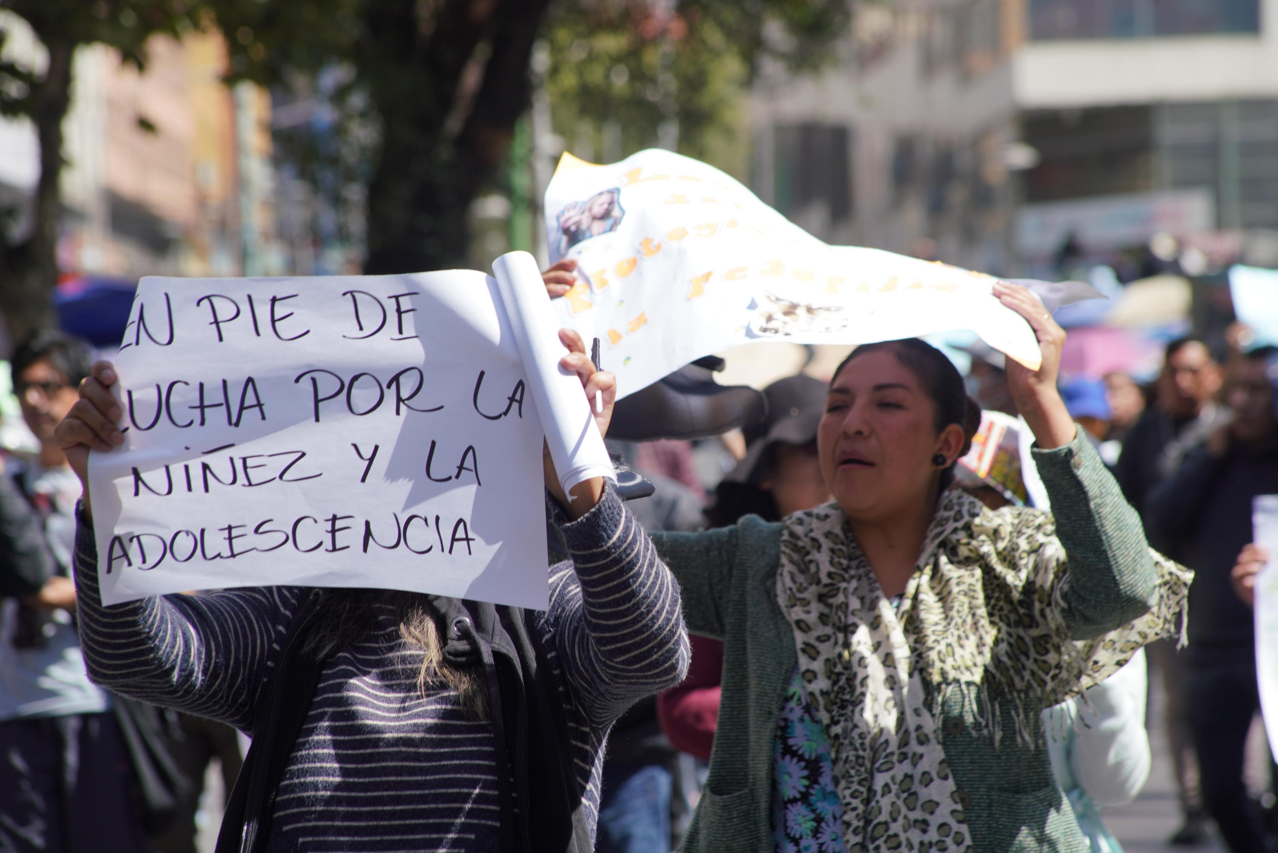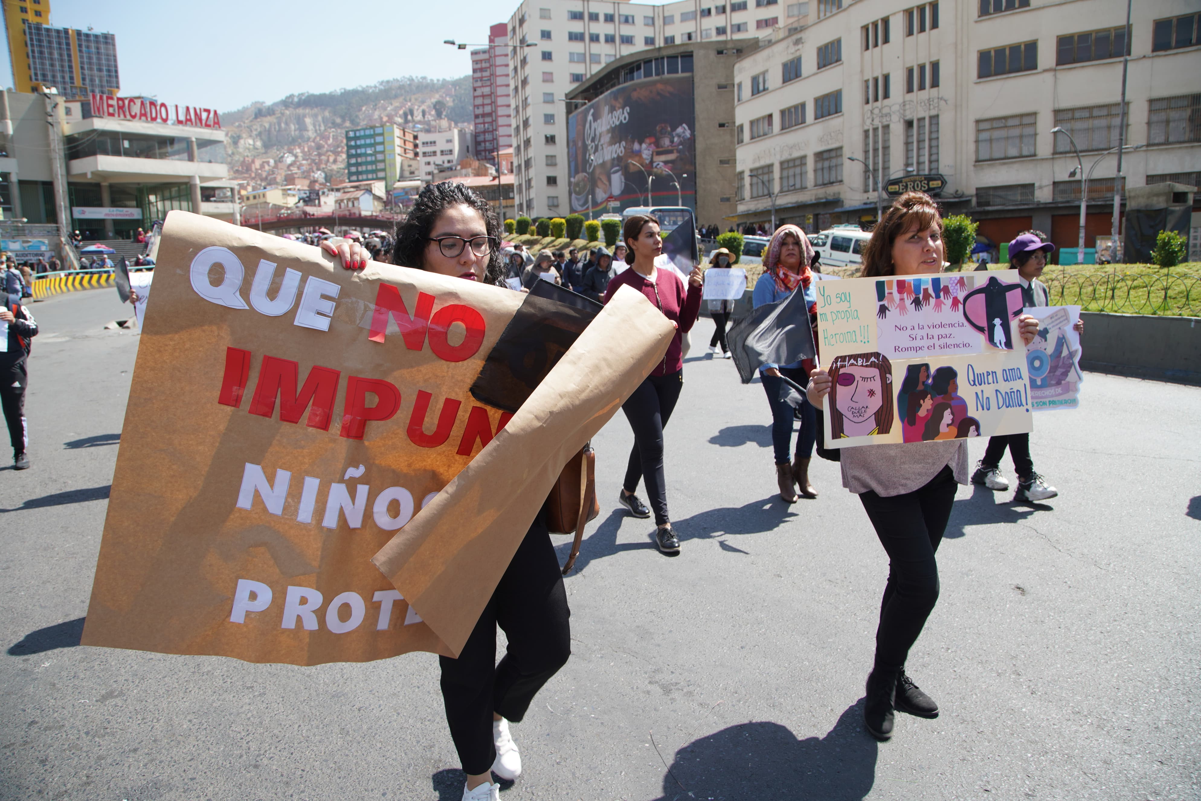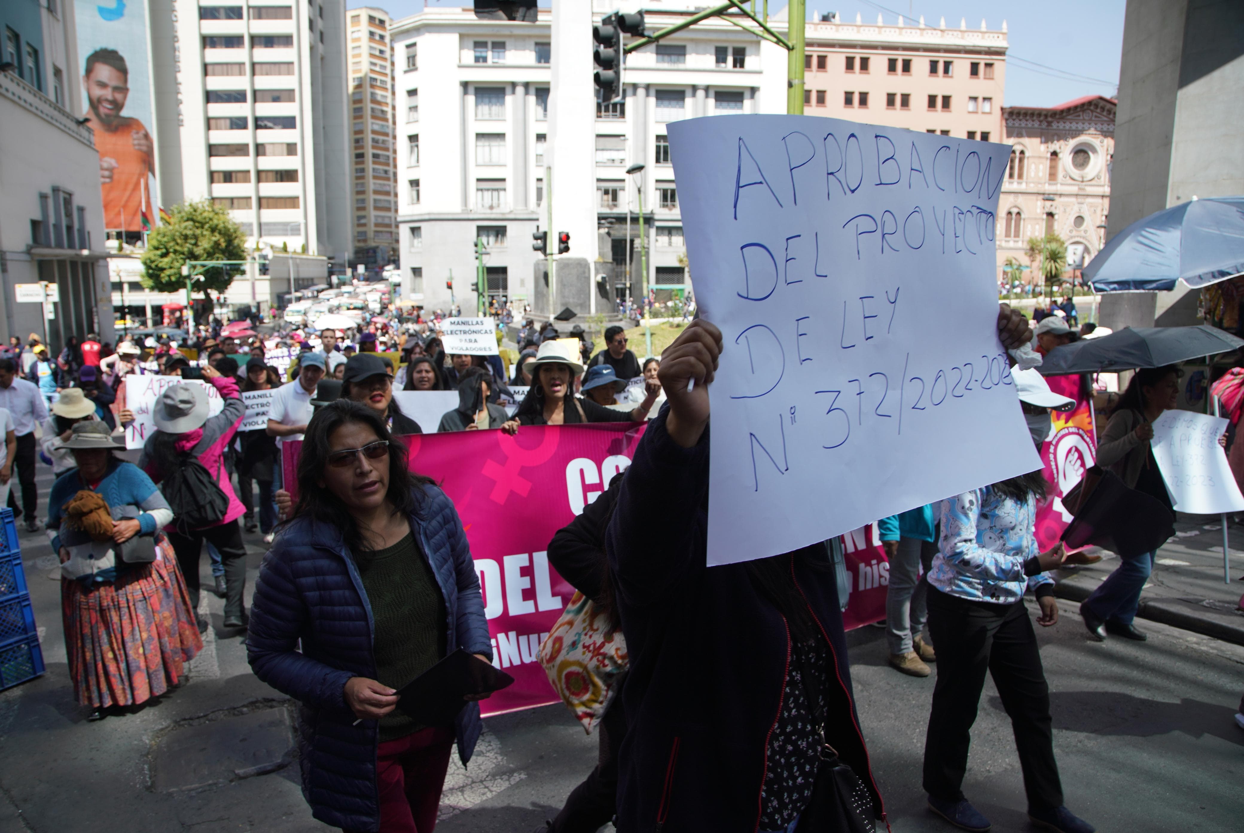 El Consejo de Mujeres del Departamento de La Paz y diferentes organizaciones sociales marchan, este lunes, en el centro paceño, en demanda del debate y aprobación del proyecto de “Ley 372 de Lucha contra la Impunidad en Delitos Sexuales contra Infantes, Niñas, Niños y Adolescentes”, en la Asamblea Legislativa Plurinacional (ALP).