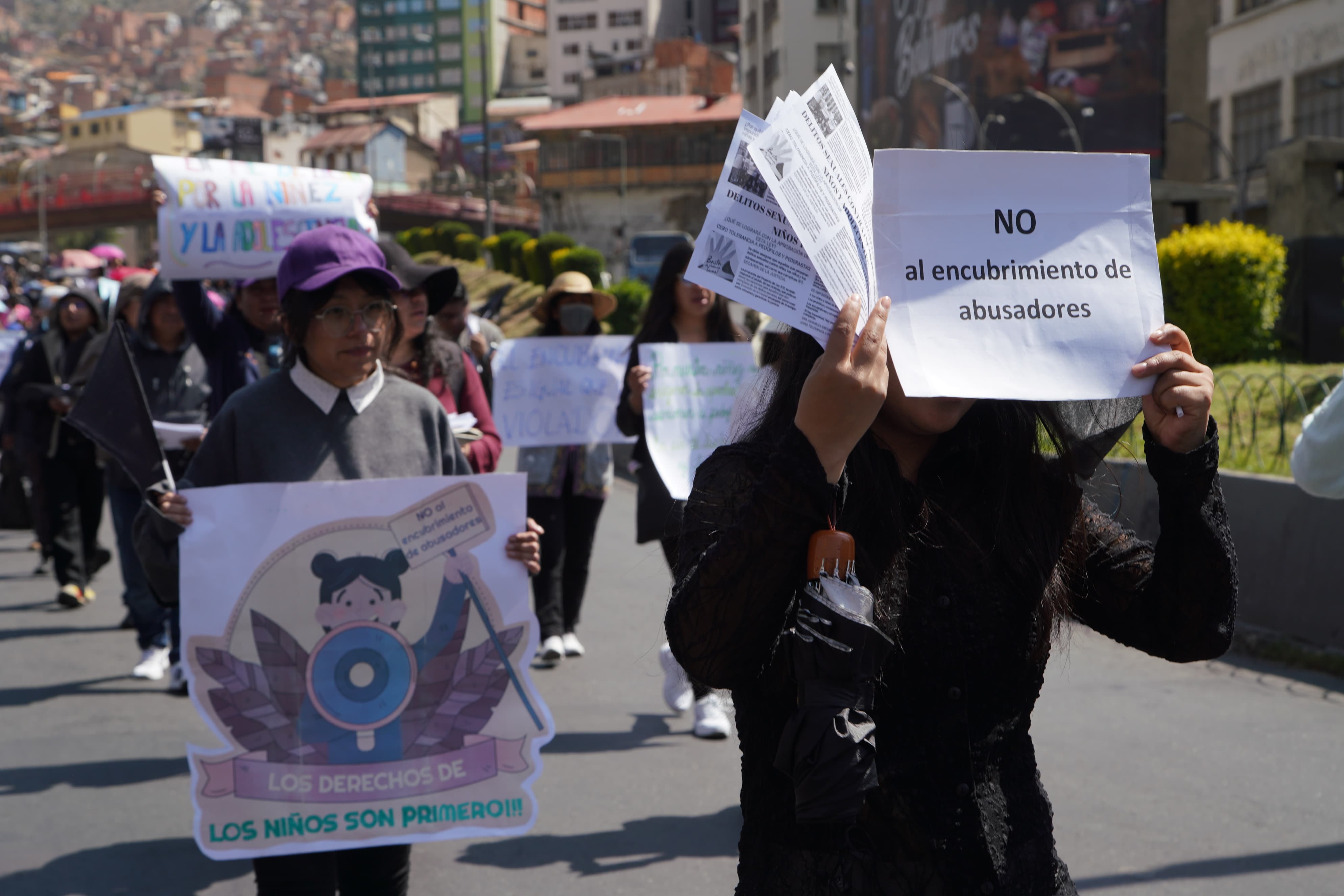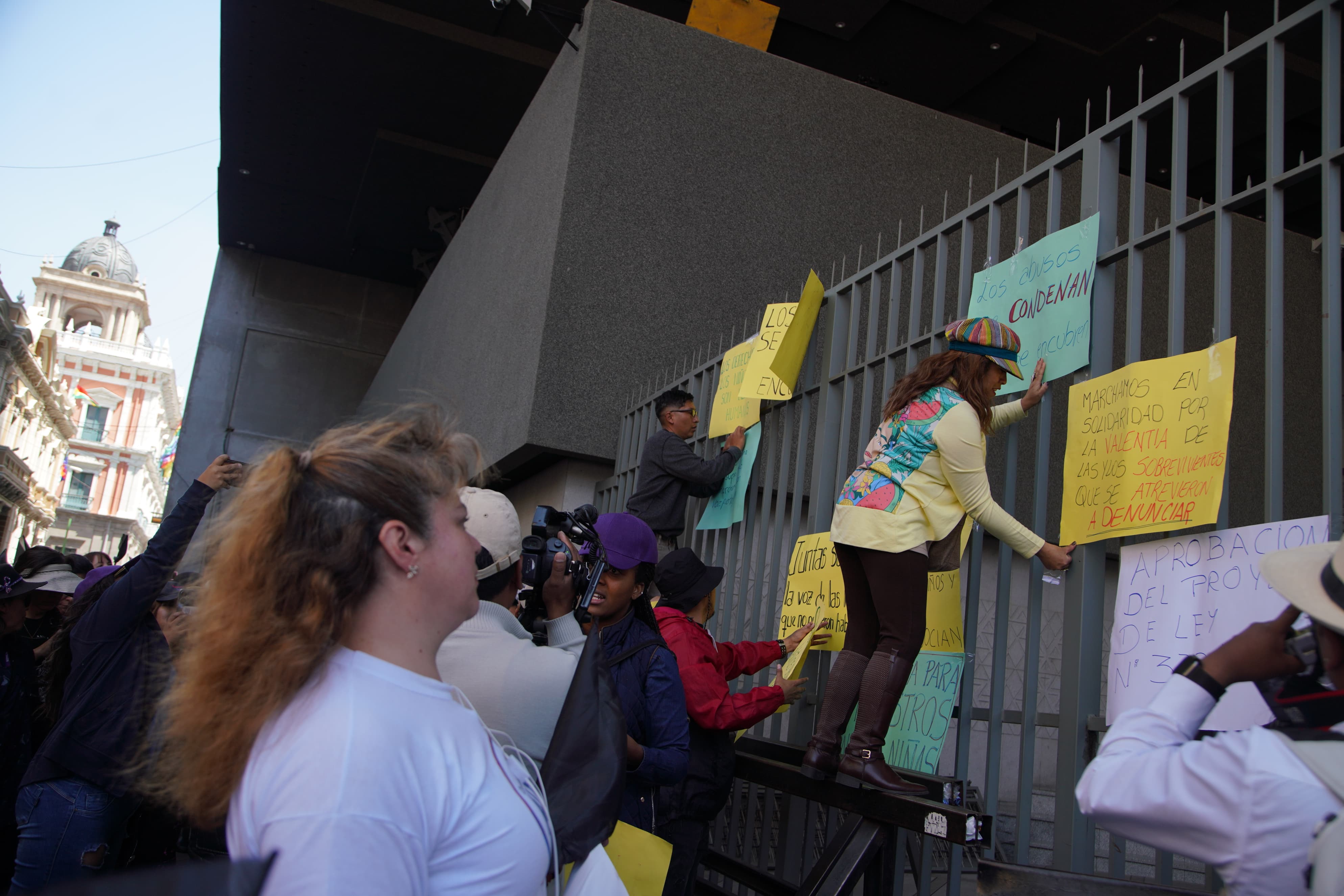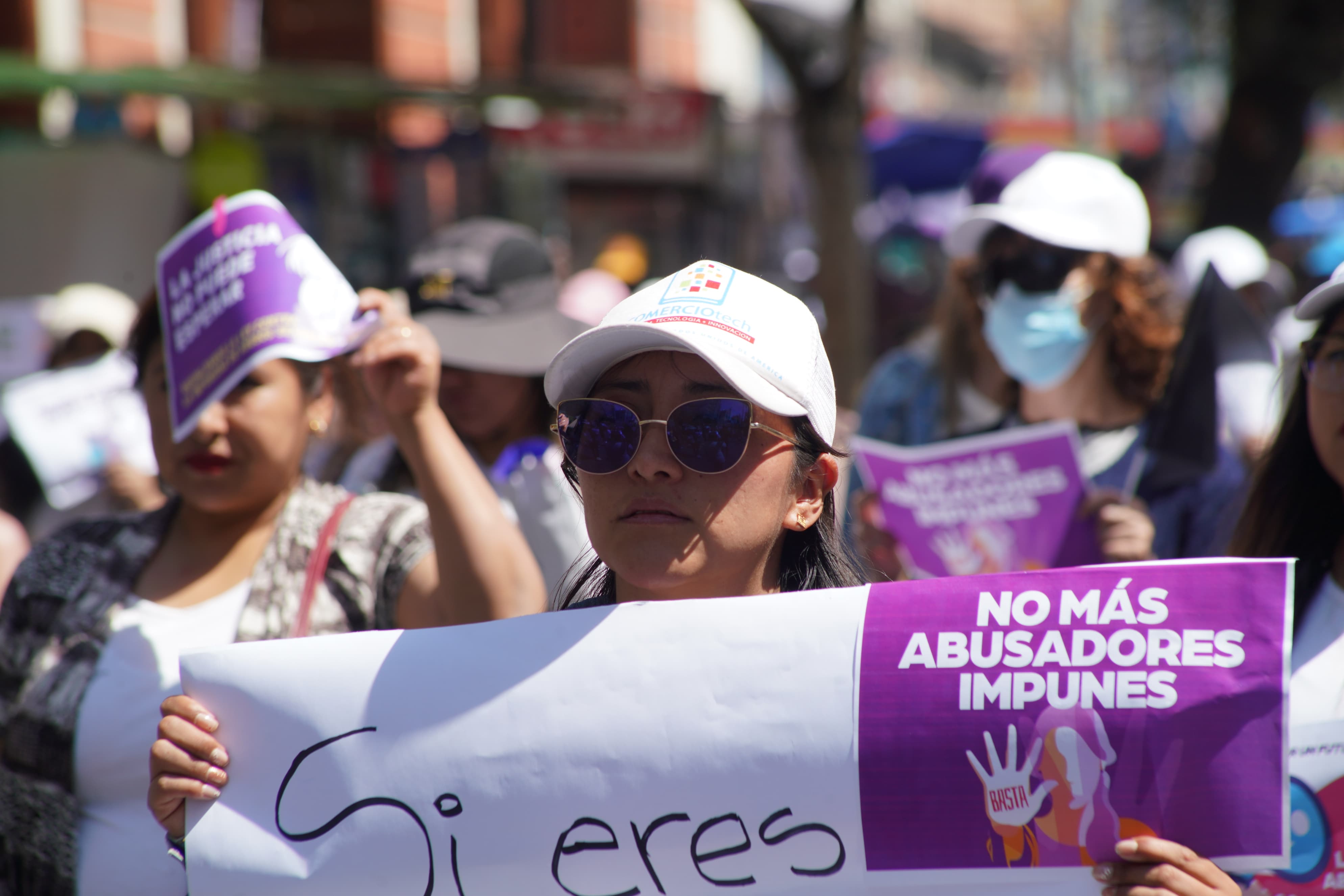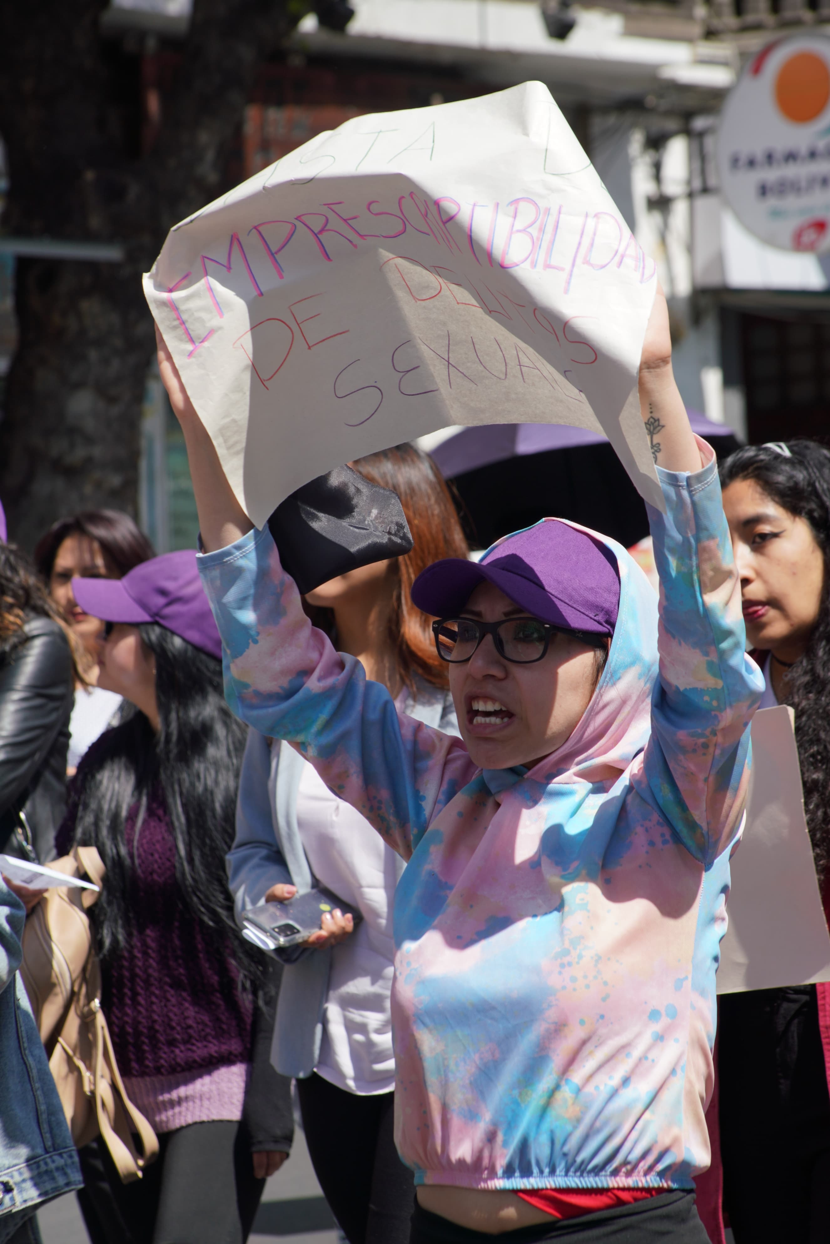 El Consejo de Mujeres del Departamento de La Paz y diferentes organizaciones sociales marchan, este lunes, en el centro paceño, en demanda del debate y aprobación del proyecto de “Ley 372 de Lucha contra la Impunidad en Delitos Sexuales contra Infantes, Niñas, Niños y Adolescentes”, en la Asamblea Legislativa Plurinacional (ALP).