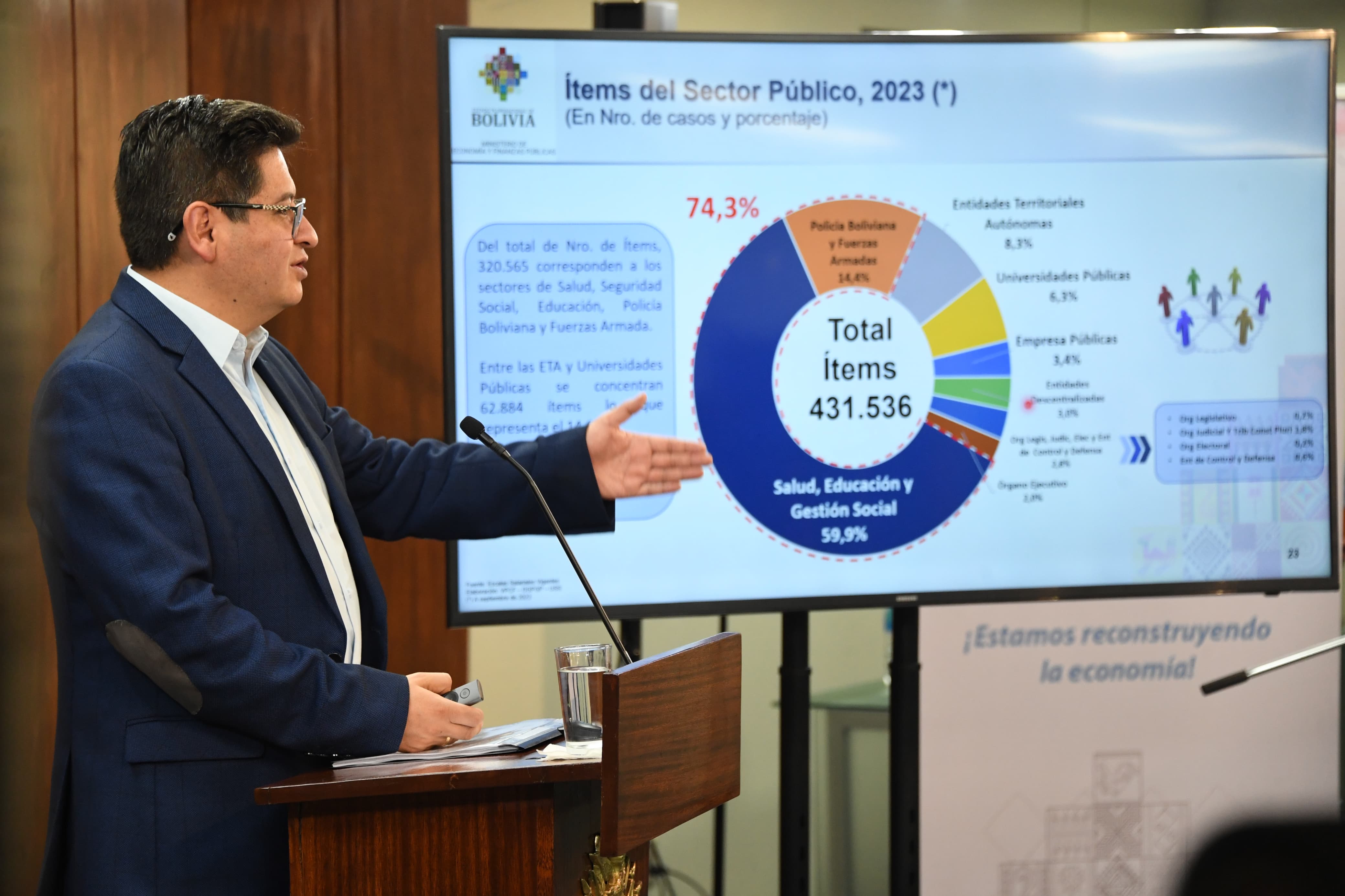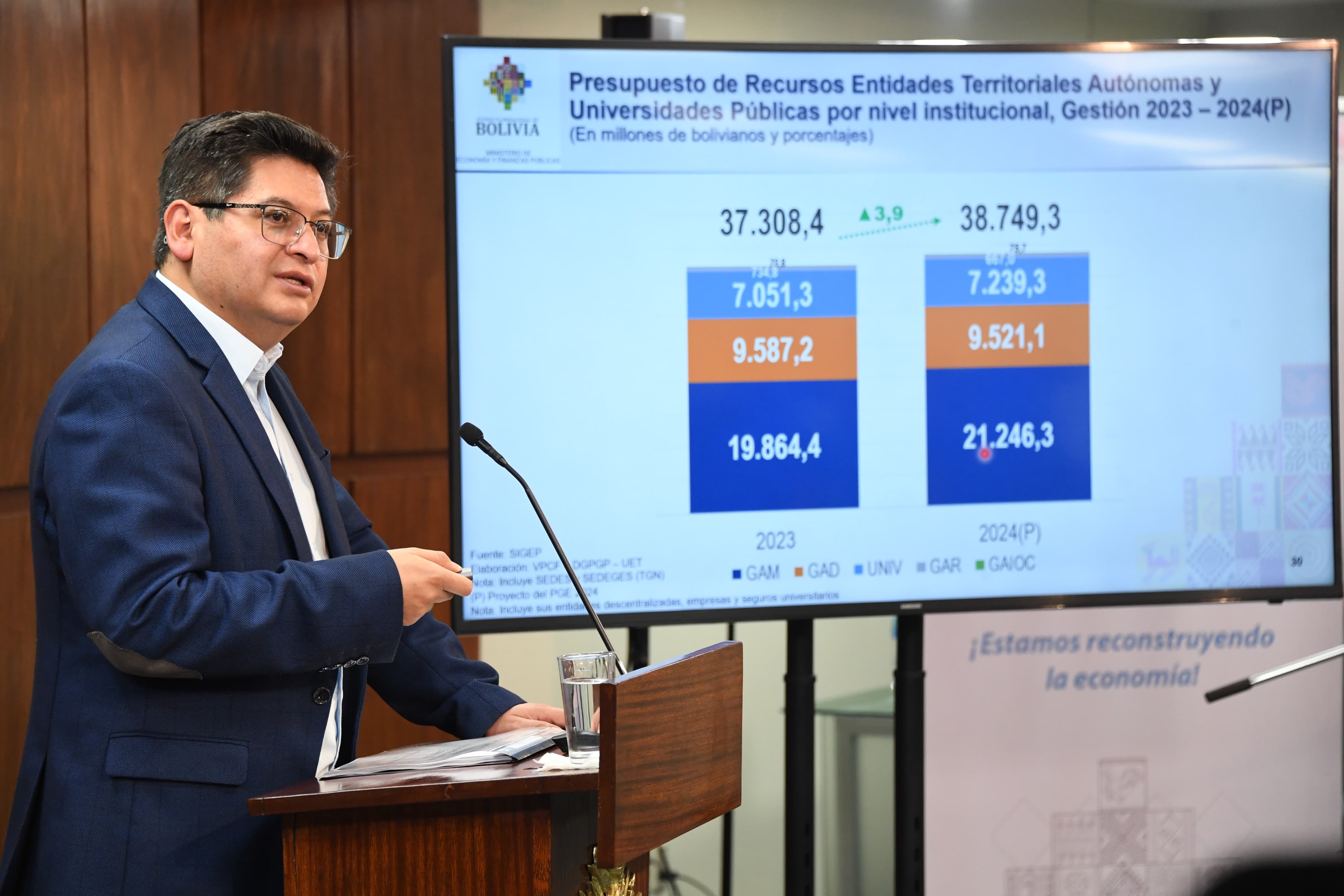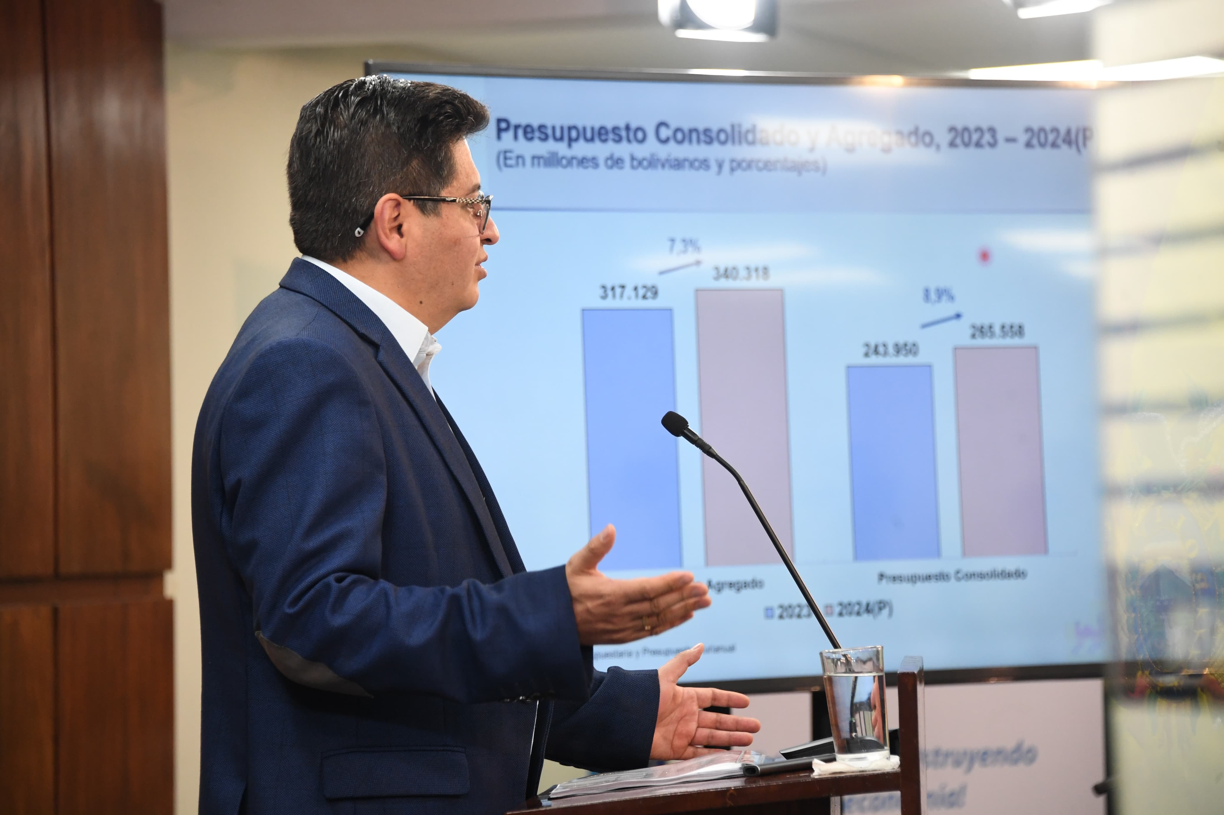 El ministro de Economía y Finanzas Públicas Marcelo Montenegro informó sobre el Proyecto de Ley del Presupuesto General del Estado 2024Usuario ABIGalería Fotográfica 01 Diciembre 2023 Visto: 6083ShareTwittearshare with Whatsappshare with Telegram Fotografia: ABI - Agencia Boliviana de InformaciónAnteriorSiguiente