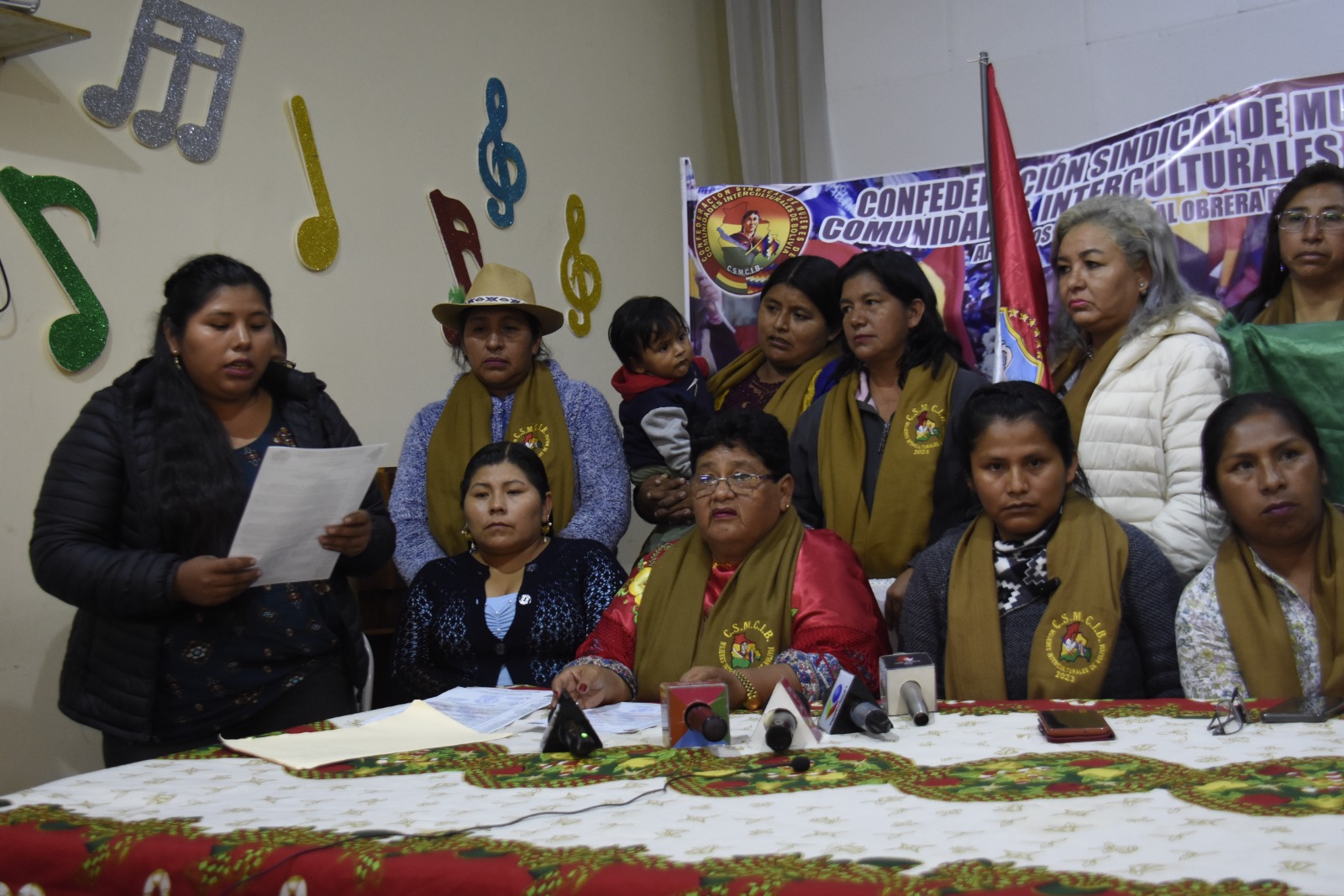 La secretaria de la Confederación Sindical de Mujeres de Comunidades Interculturales de Bolivia, Janeth Pizarro en conferencia de prensa Usuario ABIGalería Fotográfica 19 Diciembre 2023 Visto: 5928ShareTwittearshare with Whatsappshare with Telegram Fotografia: Gonzalo Jallasi AnteriorSiguiente