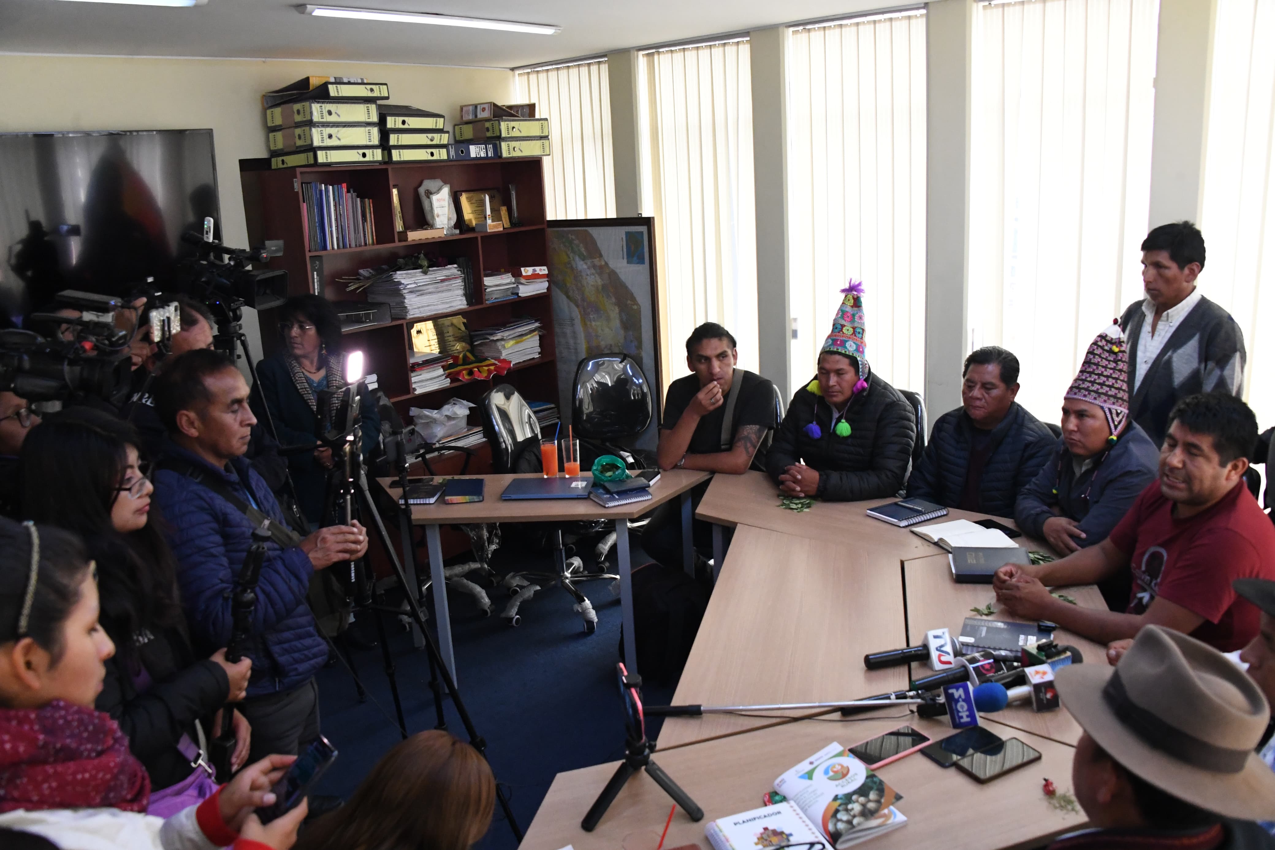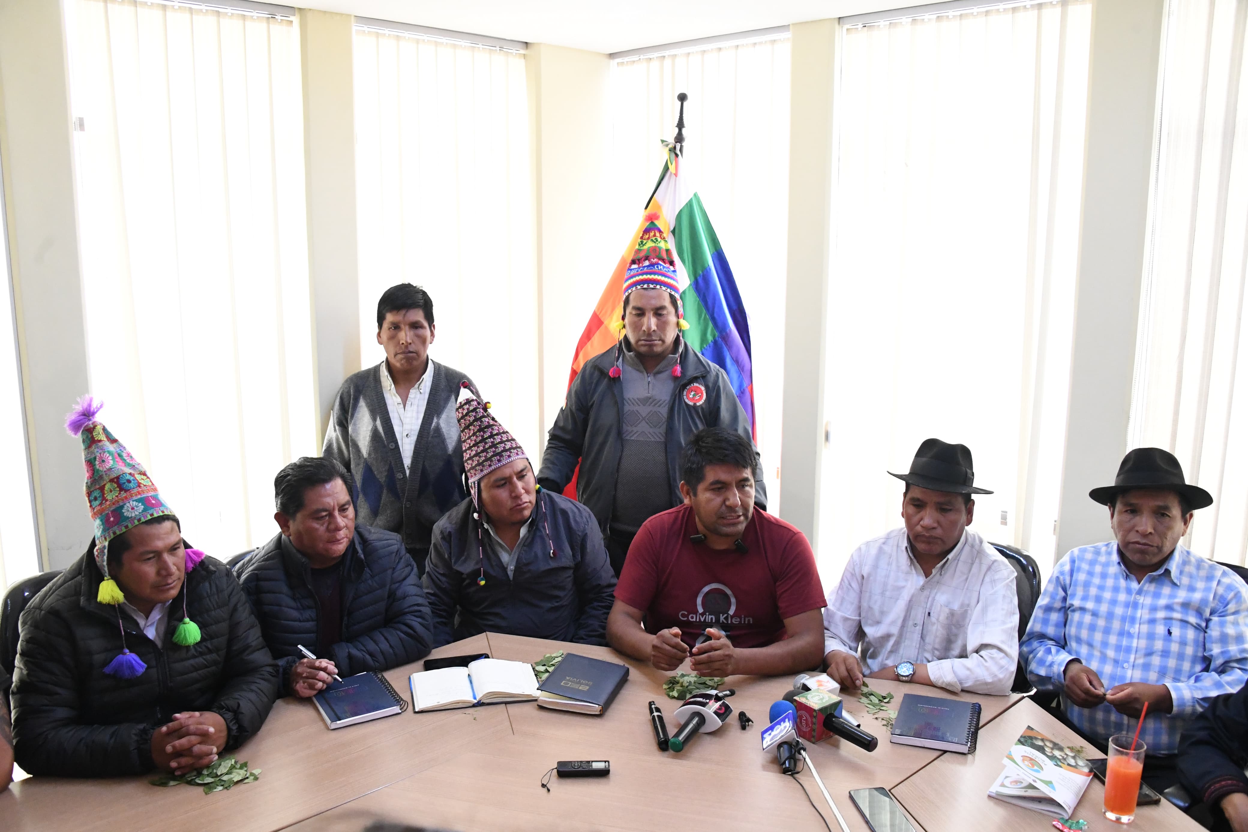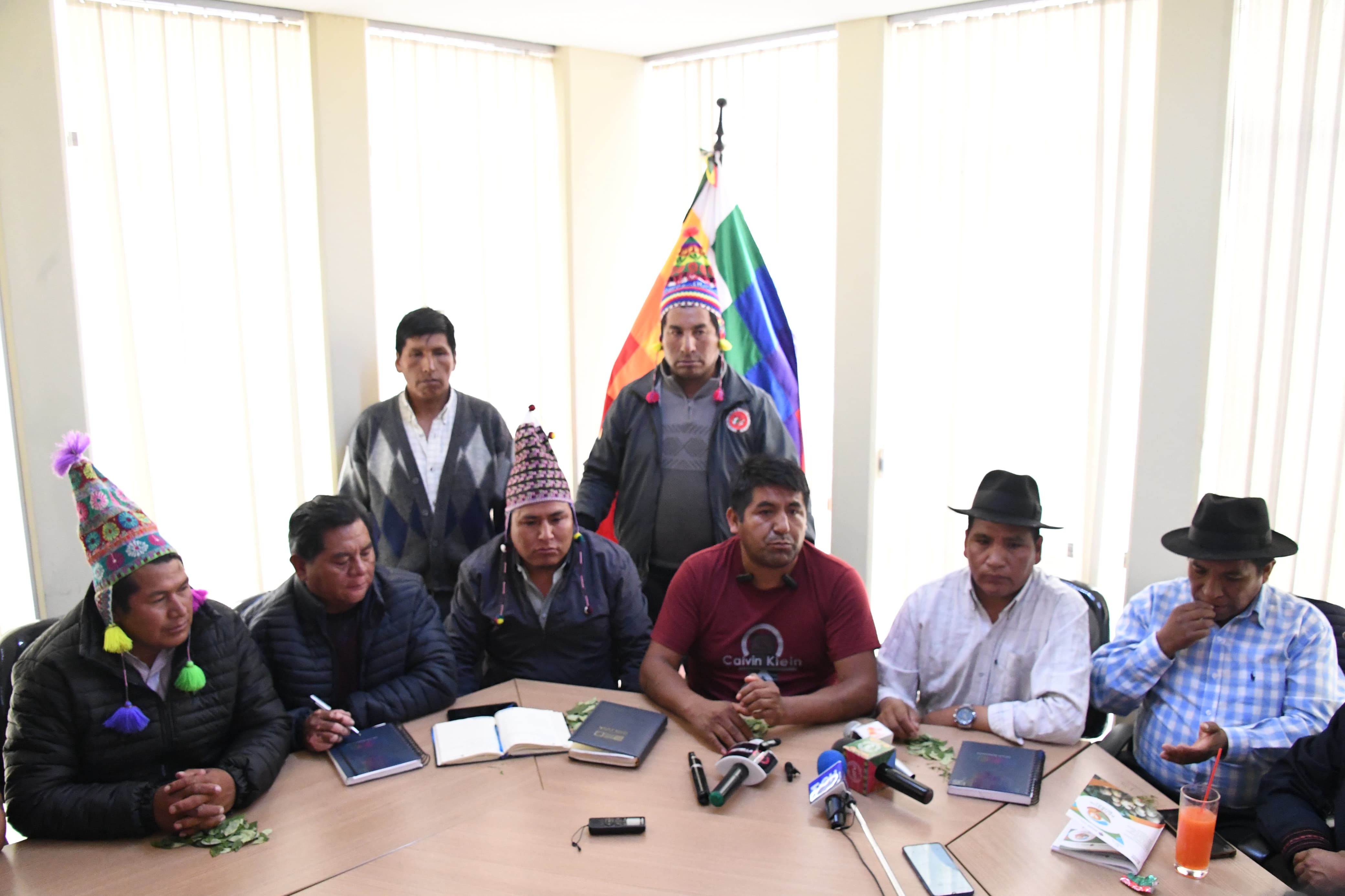 El secretario general de la Confederación Sindical Única de Trabajadores Campesinos de Bolivia CSUTCB, Mario Seña, convoca a conferencia de prensa