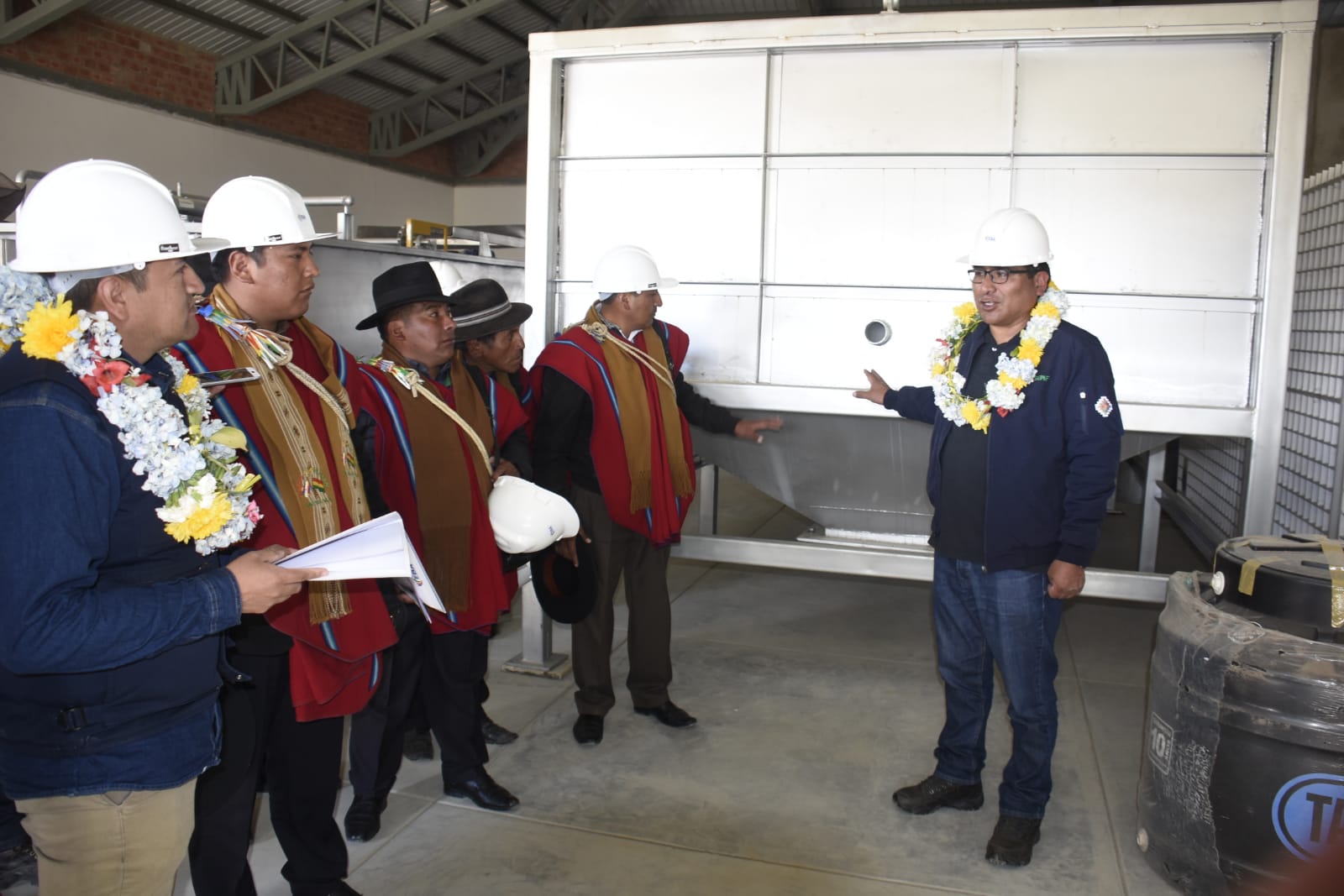 Ministro de Desarrollo Productivo y Economía Plural, Néstor Huanca inspeccionó el avance de la Planta Procesadora de Lácteos en el municipio de AchacachiUsuario ABIGalería Fotográfica 28 Diciembre 2023 Visto: 7456ShareTwittearshare with Whatsappshare with Telegram Fotos: Gonzalo JallasiAnteriorSiguiente