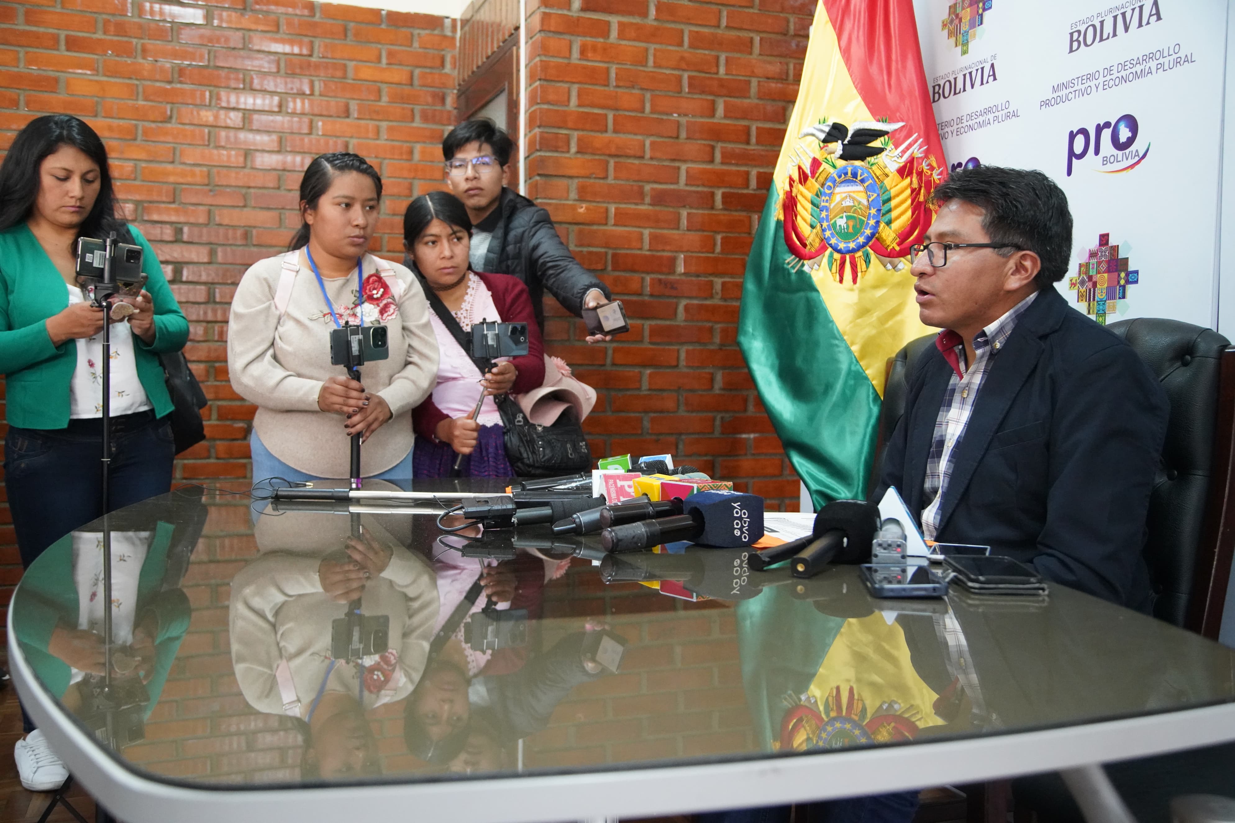 PRO BOLIVIA, entidad desconcentrada del Ministerio de Desarrollo Productivo y Economía Plural, brindo informe de los resultados de gestión de los diferentes programas que conforma esta instituciónUsuario ABIGalería Fotográfica 29 Diciembre 2023 Visto: 6884ShareTwittearshare with Whatsappshare with Telegram Fotos Jorge MamaniAnteriorSiguiente
