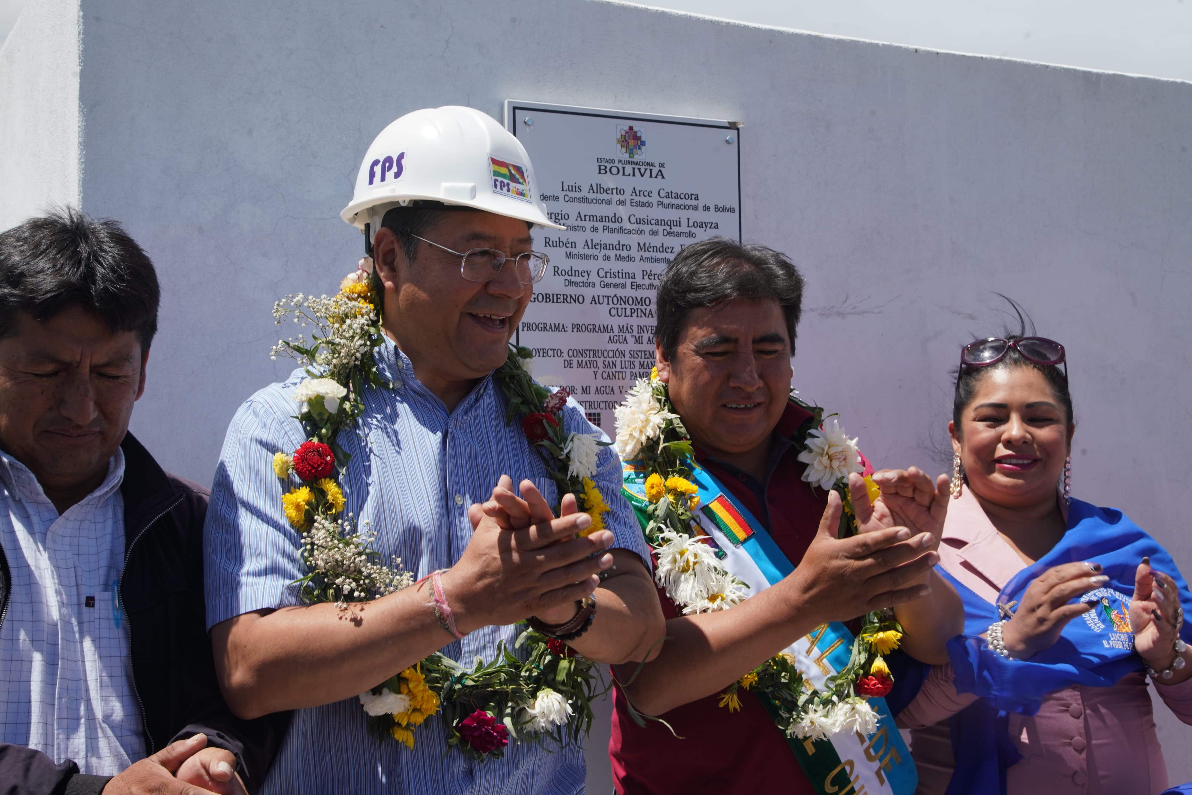 El presidente del Estado, Luis Arce, entrega sistemas de agua potable en Culpina, Chuquisaca Usuario ABIGalería Fotográfica 04 Enero 2024 Visto: 5309ShareTwittearshare with Whatsappshare with Telegram Fuente: Comunicación PresidencialAnteriorSiguiente