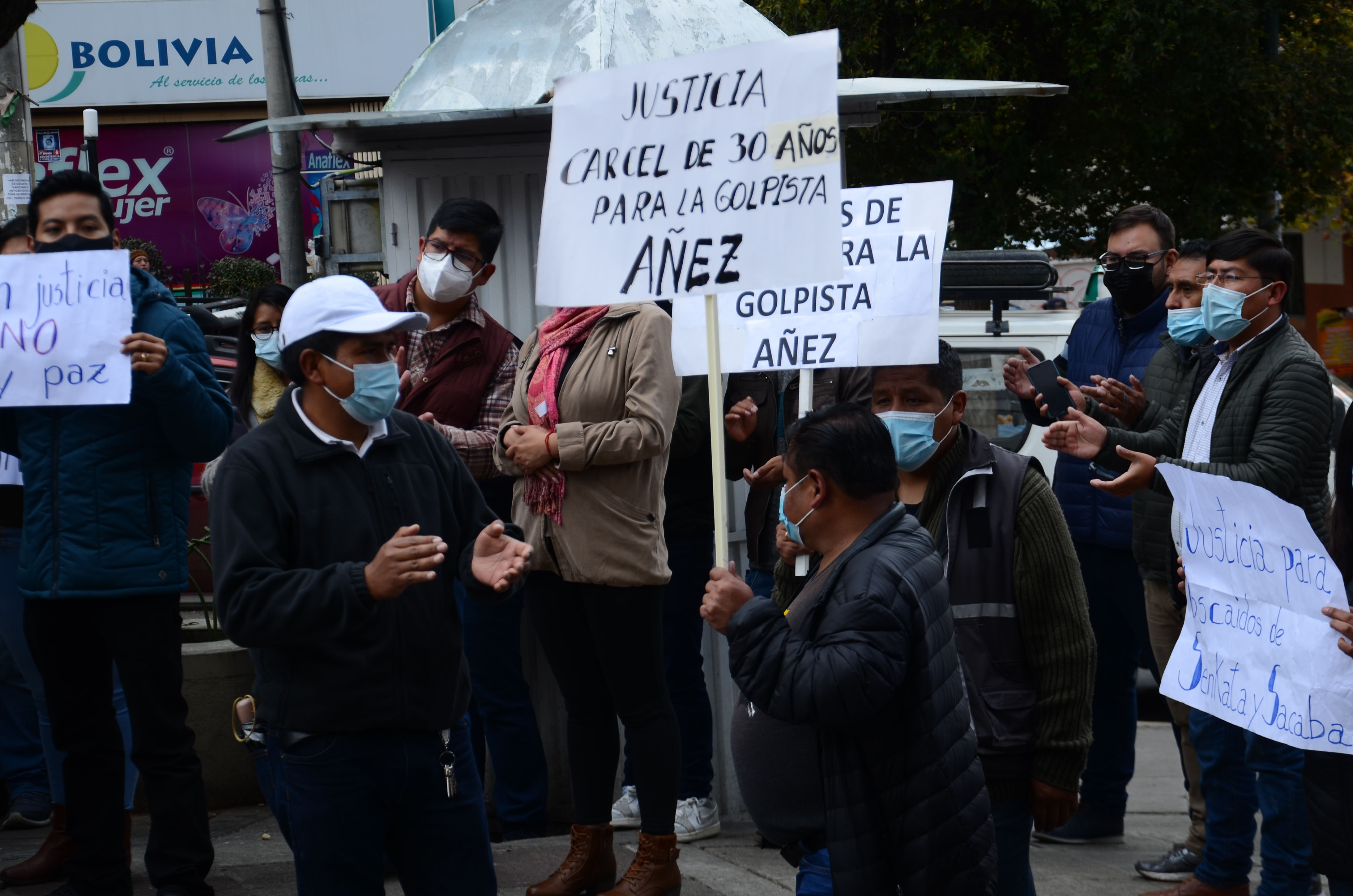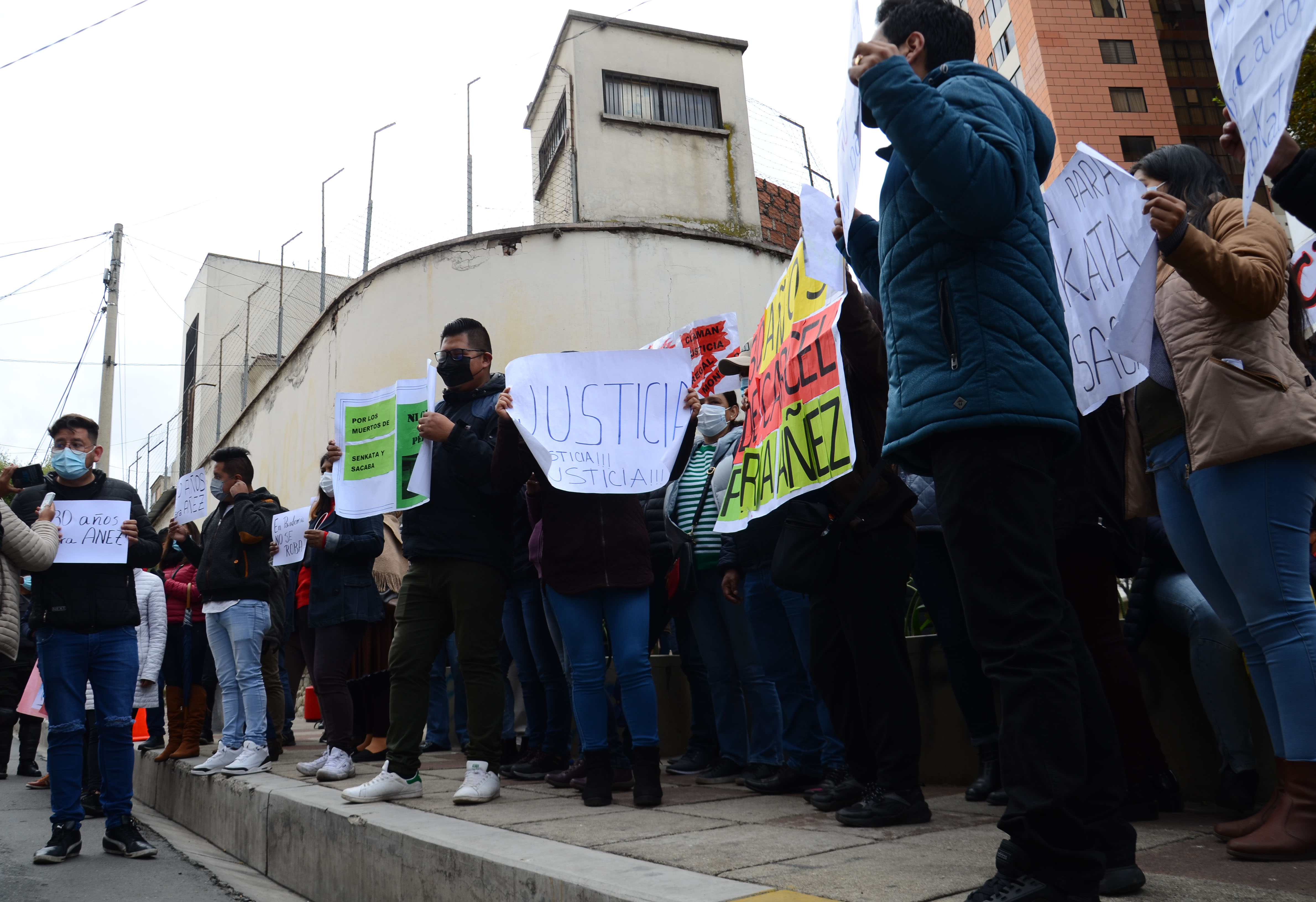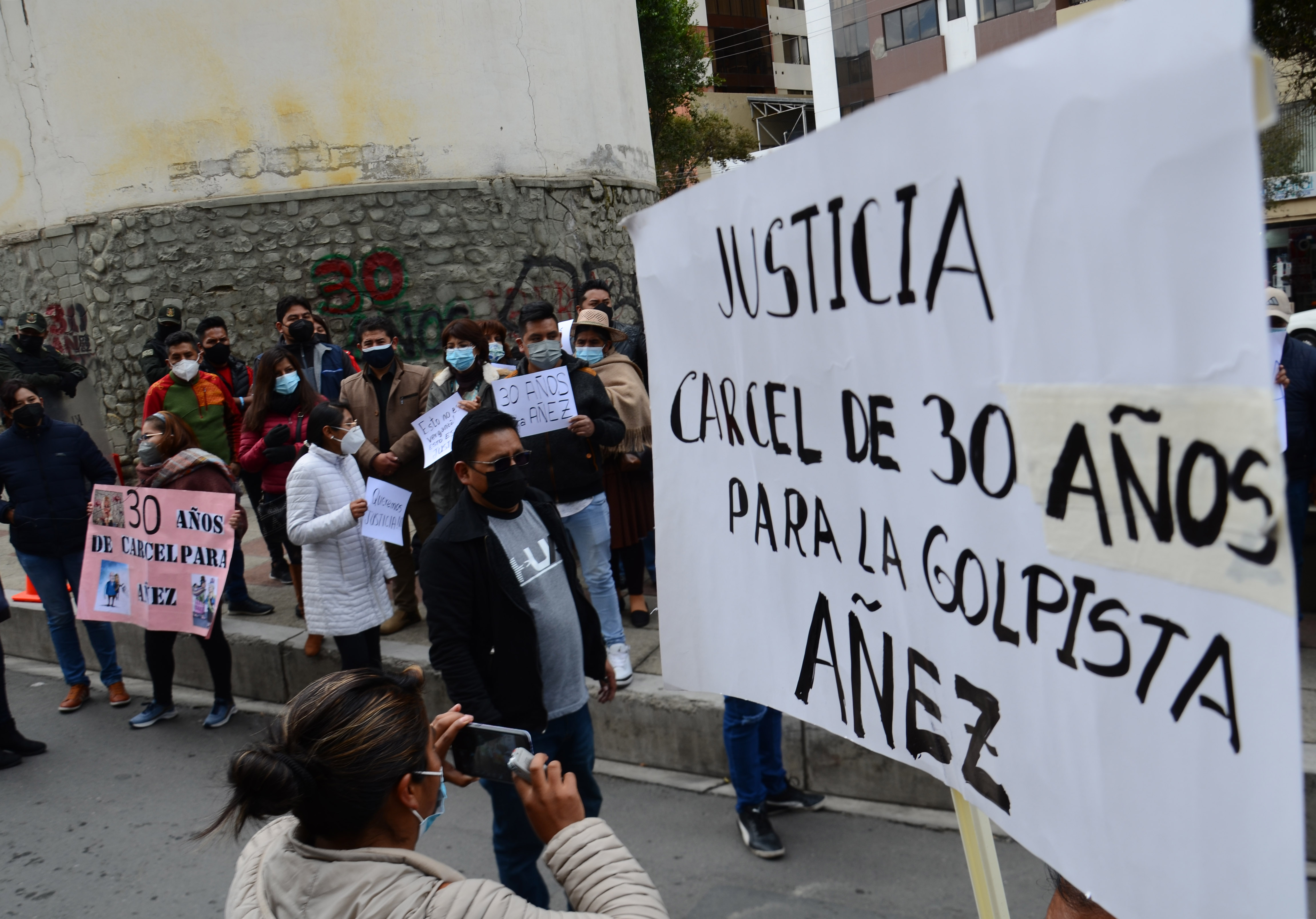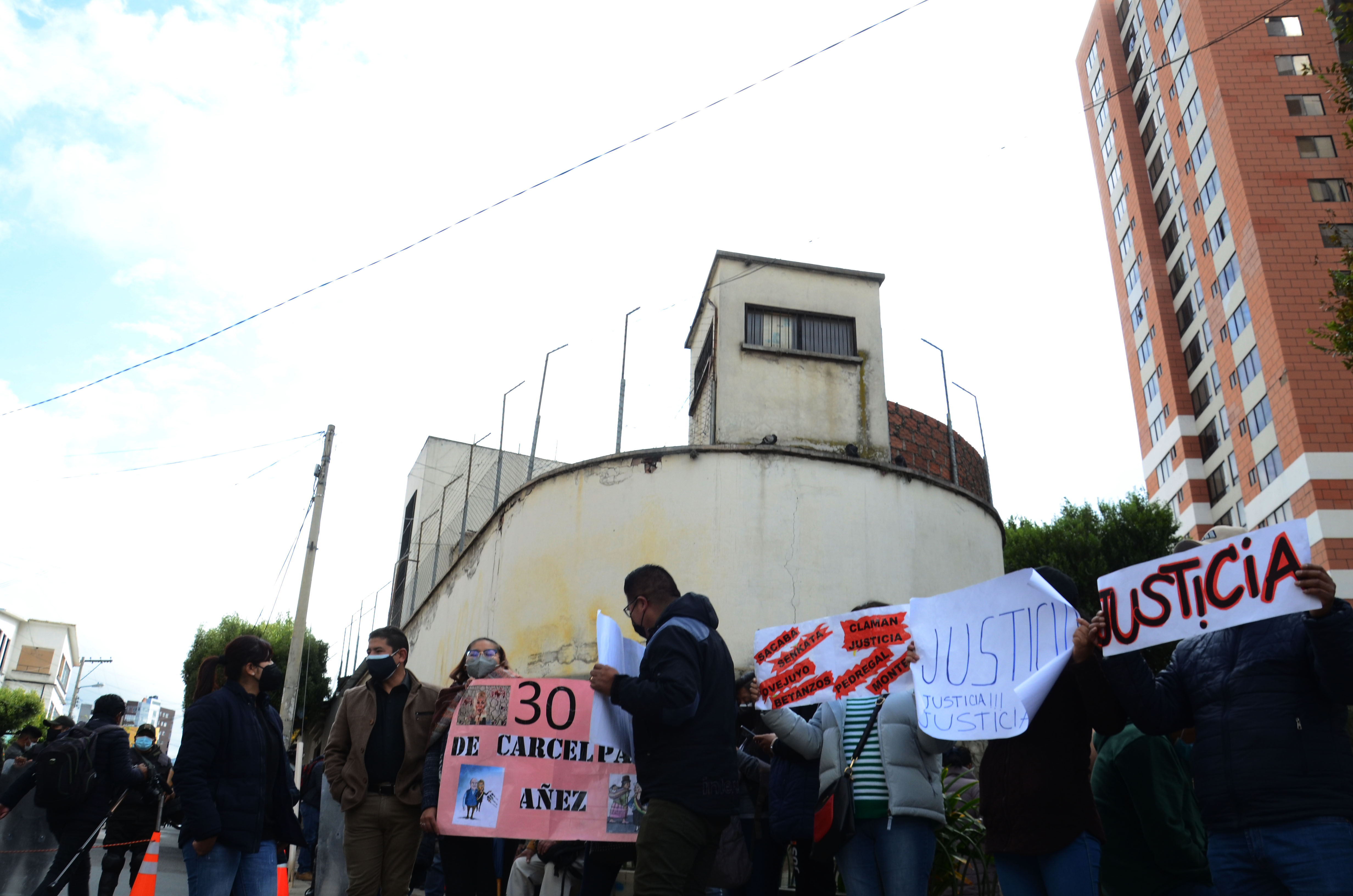 Personas protestan y piden sentencia de 30 años para Jeanine Áñez en afueras del centro penitenciario de Miraflores, mientras se realiza la audiencia a la exsenadora Jeanine Áñez.Usuario ABIGalería Fotográfica 08 Abril 2022 Visto: 18126ShareTwittearshare with Whatsappshare with TelegramFotos: Josué Cortéz / ABI AnteriorSiguiente