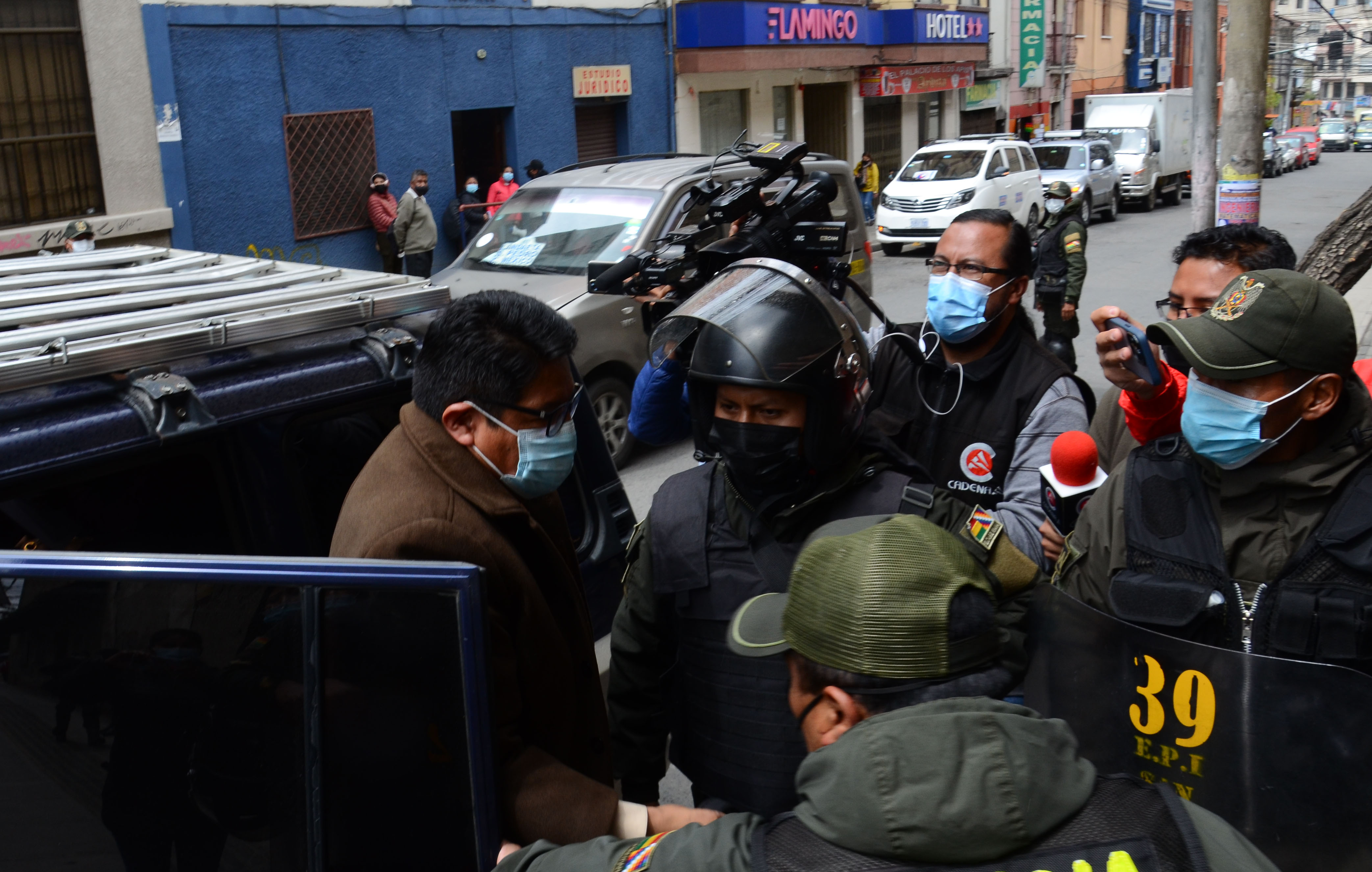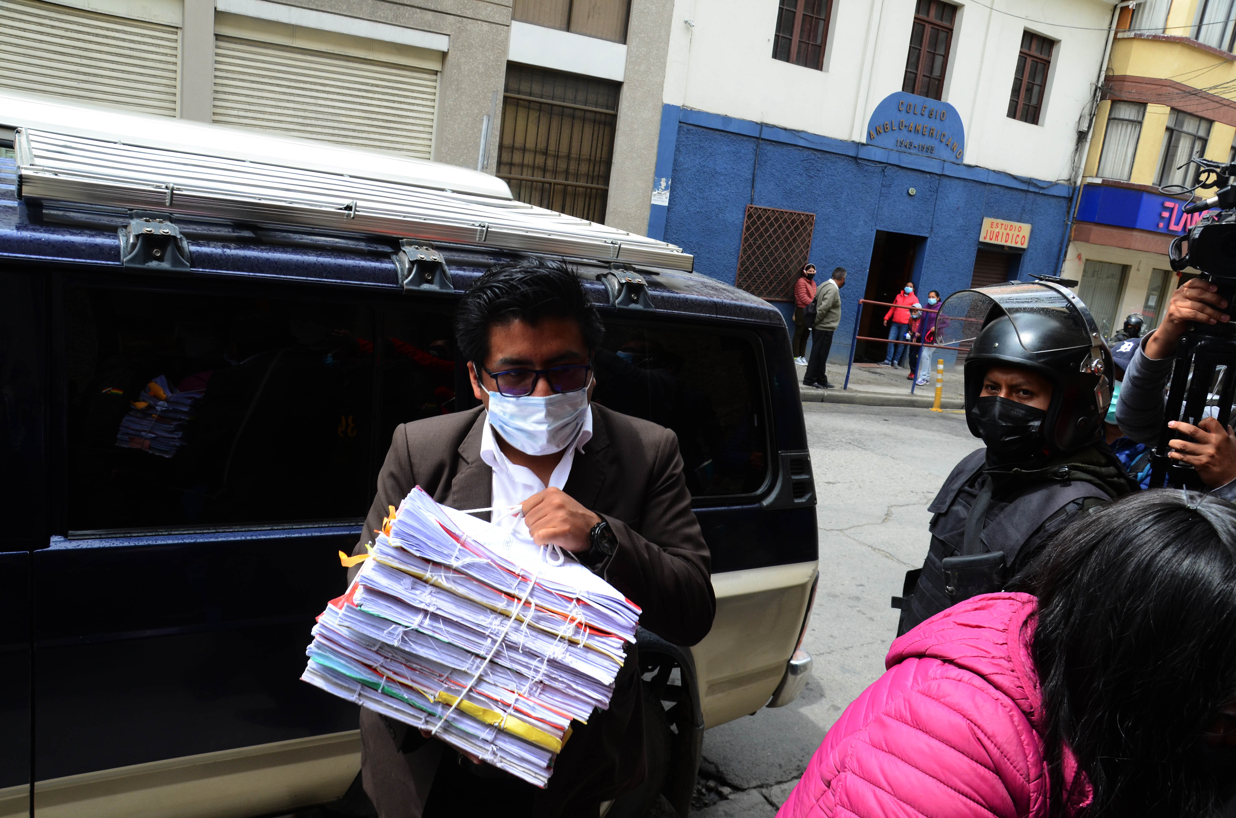 Miembros del Tribunal Primero de Sentencia Anticorrupción se trasladan hasta el penal de San Pedro para la toma de la declaración de los militares en el juicio oral por el caso golpe de Estado II