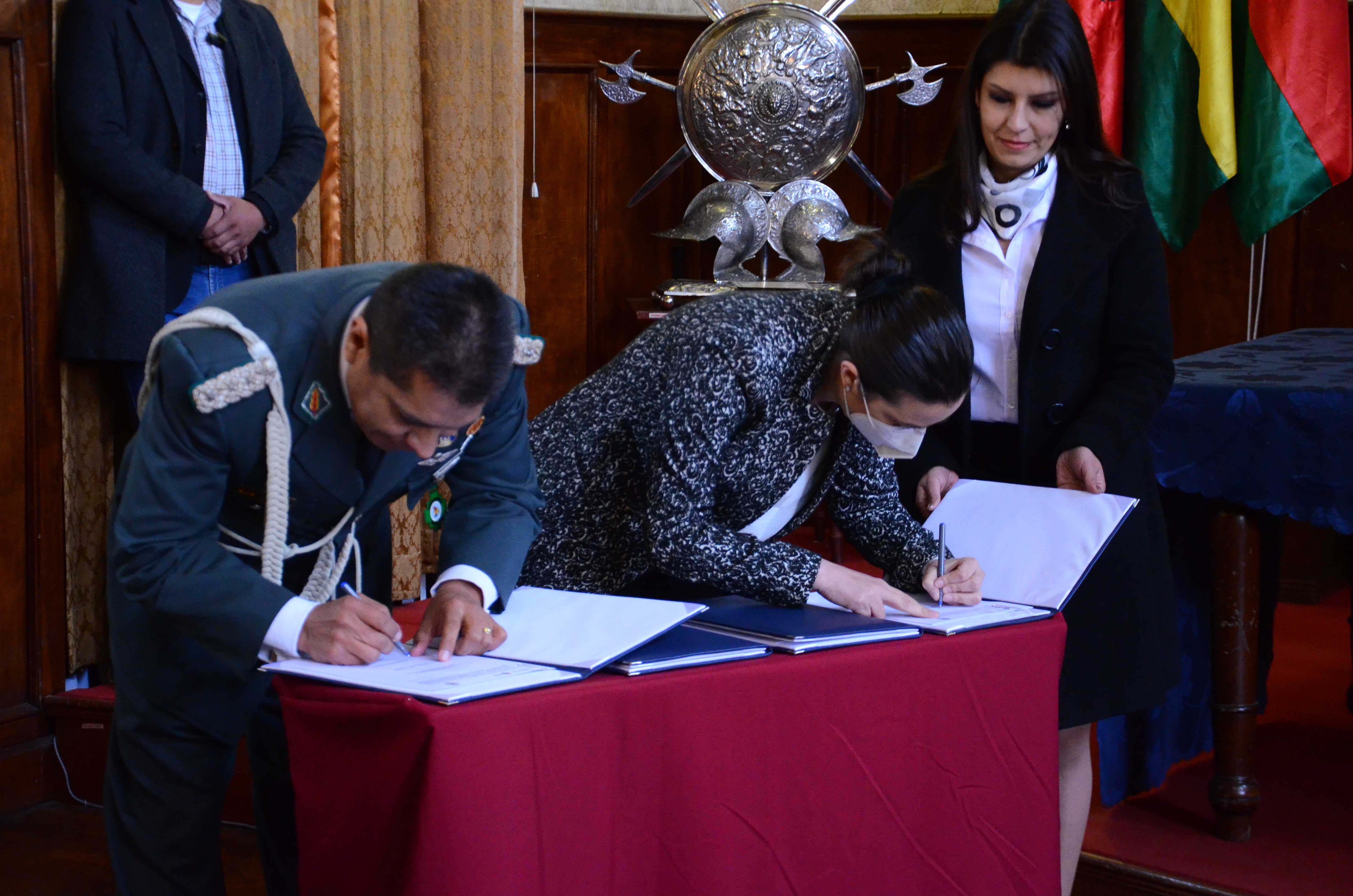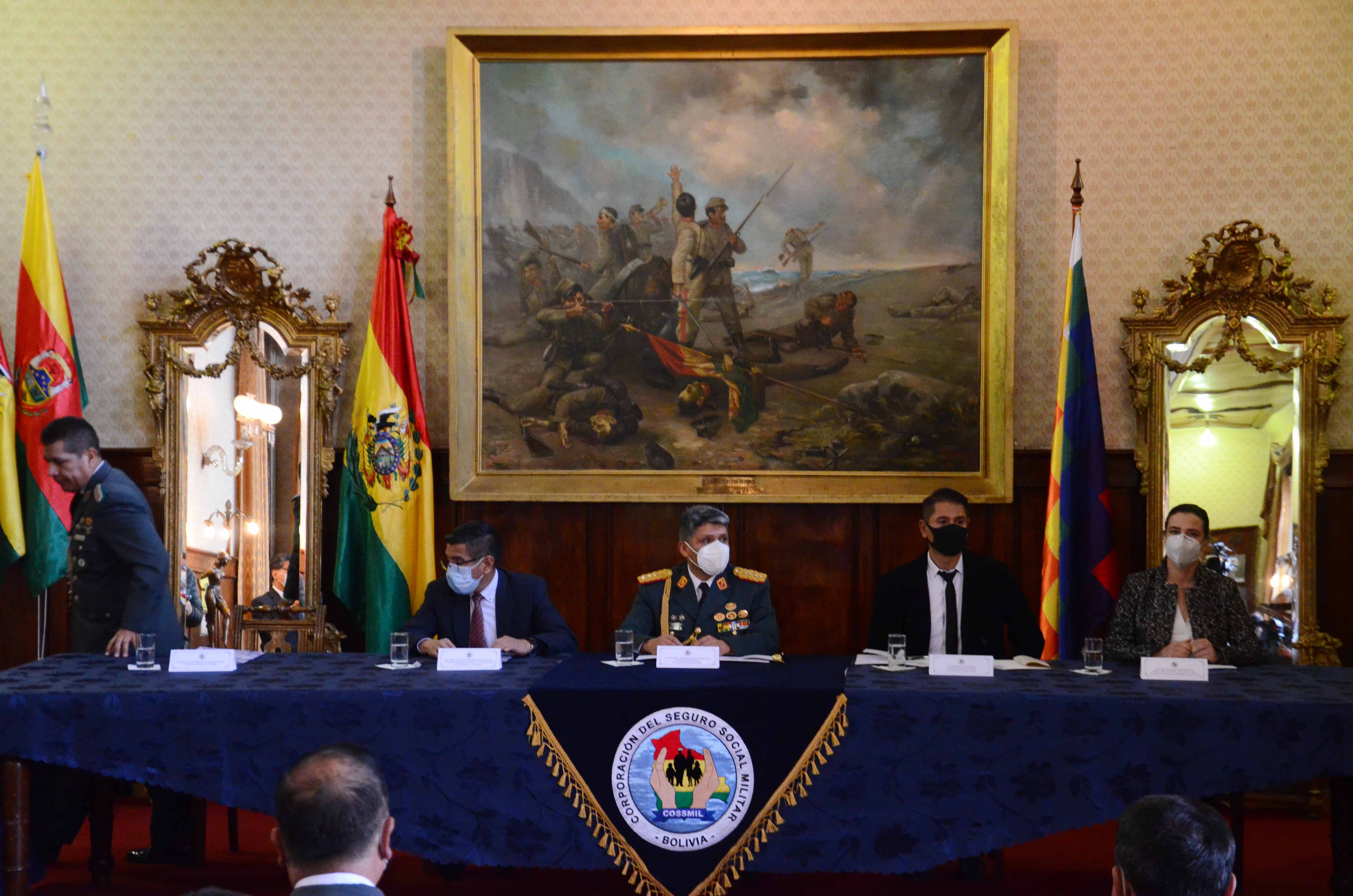 Firma de convenio entre la ABEN y COSSMIL para que pacientes oncológicos del seguro militar reciban atención en el Centro de Medicina Nuclear y Radioterapia (CMNyR) de El Alto.Usuario ABIGalería Fotográfica 02 Junio 2022 Visto: 10030ShareTwittearshare with Whatsappshare with Telegram FOTOS: ABI / JOSUE CORTEZAnteriorSiguiente
