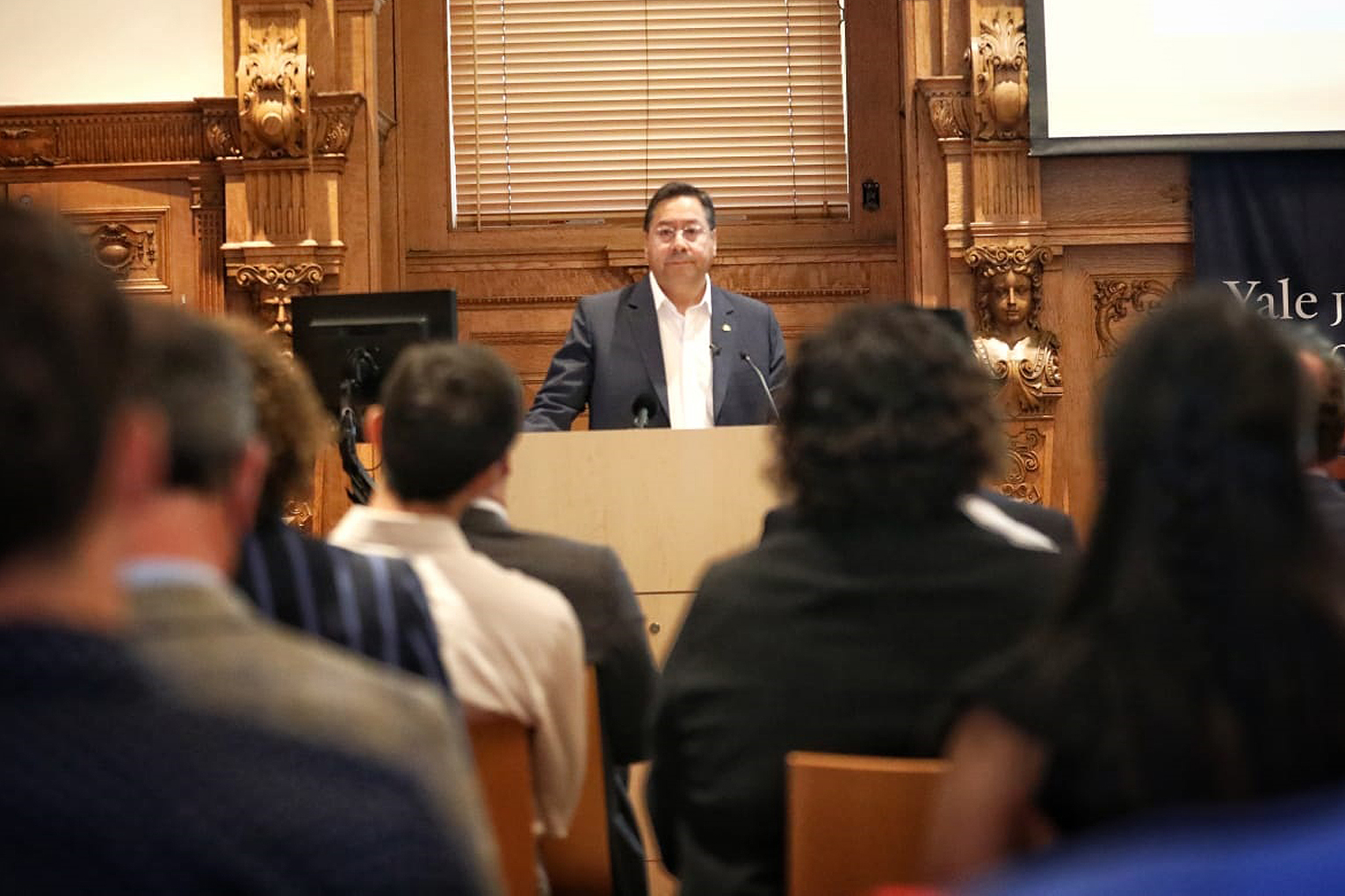 El presidente, Luis Arce Catacora, dicta la conferencia magistral "Economías Emergentes en América Latina: Modelo Económico Boliviano", en la Universidad de Yale, New Haven, EUAEnzo De LucaGalería Fotográfica 21 Septiembre 2022 Visto: 5161ShareTwittearshare with Whatsappshare with Telegram Fotos: Comunicación PresidencialAnteriorSiguiente