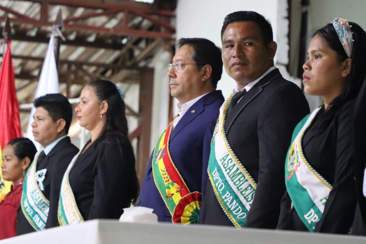 El Presidente del Estado, Luis Arce Catacora, participa de la sesión honor en homenaje a los 120 años de la Batalla de Bahía, CobijaEnzo De LucaGalería Fotográfica 11 Octubre 2022 Visto: 4742ShareTwittearshare with Whatsappshare with Telegram Fotos: Comunicación PresidencialAnteriorSiguiente