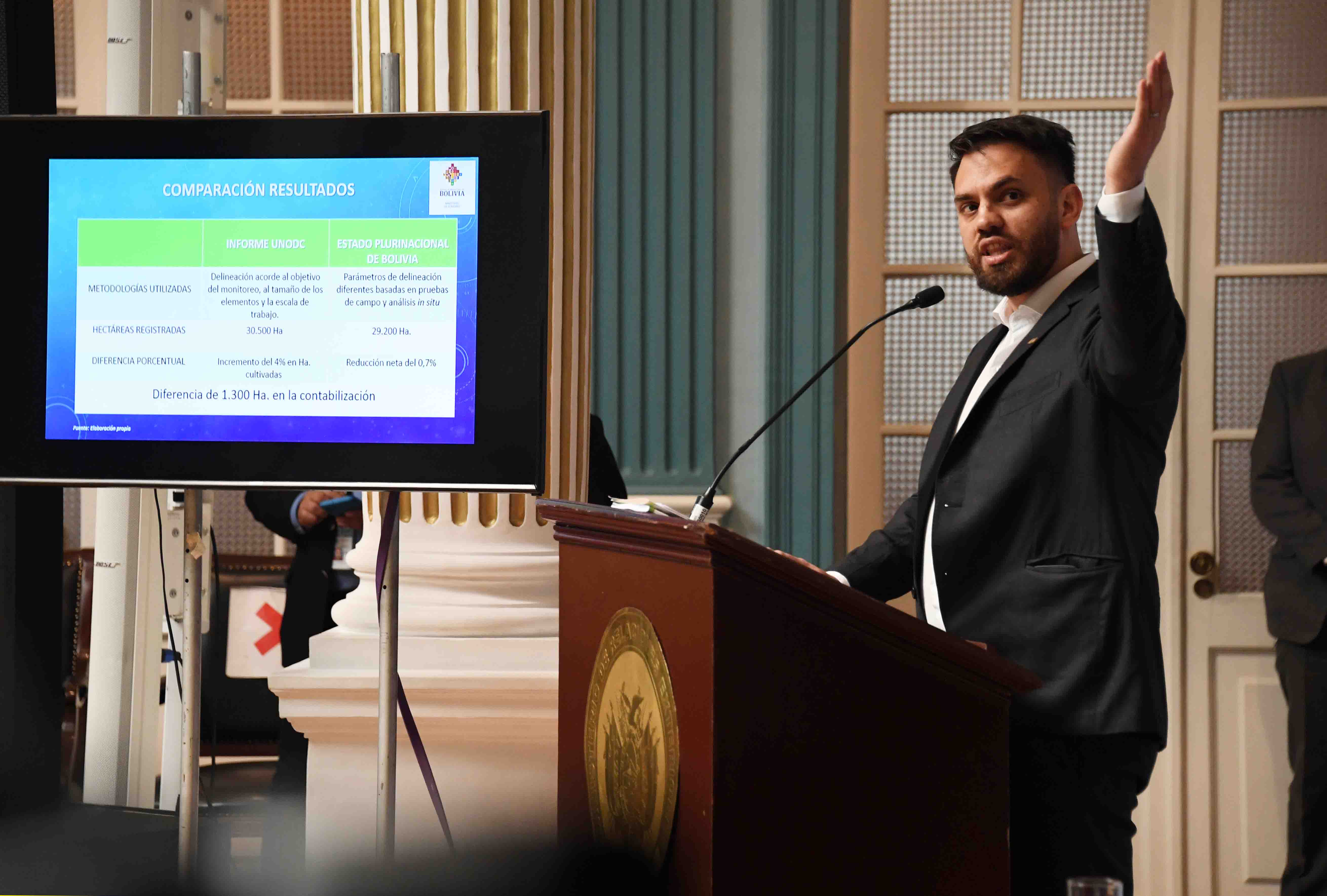 Presentación del Informe de Monitoreo de Cultivos de Coca 2021 por el ministro de Gobierno Eduardo Del CastilloUsuario ABIGalería Fotográfica 29 Noviembre 2022 Visto: 11476ShareTwittearshare with Whatsappshare with Telegram FOTOS: VICECOM/Josue Cortez AnteriorSiguiente