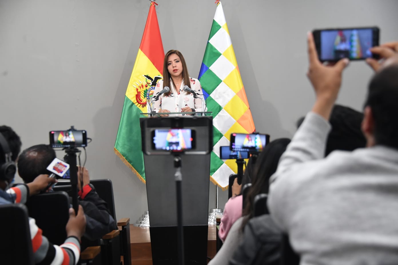 La viceministra de Comunicación Gabriela Alcón Merubia en conferencia de prensa en Casa del PuebloUsuario ABIGalería Fotográfica 02 Marzo 2023 Visto: 16294ShareTwittearshare with Whatsappshare with Telegram Foto: Josue Cortez / Viceministerio de ComunicaciónAnteriorSiguiente