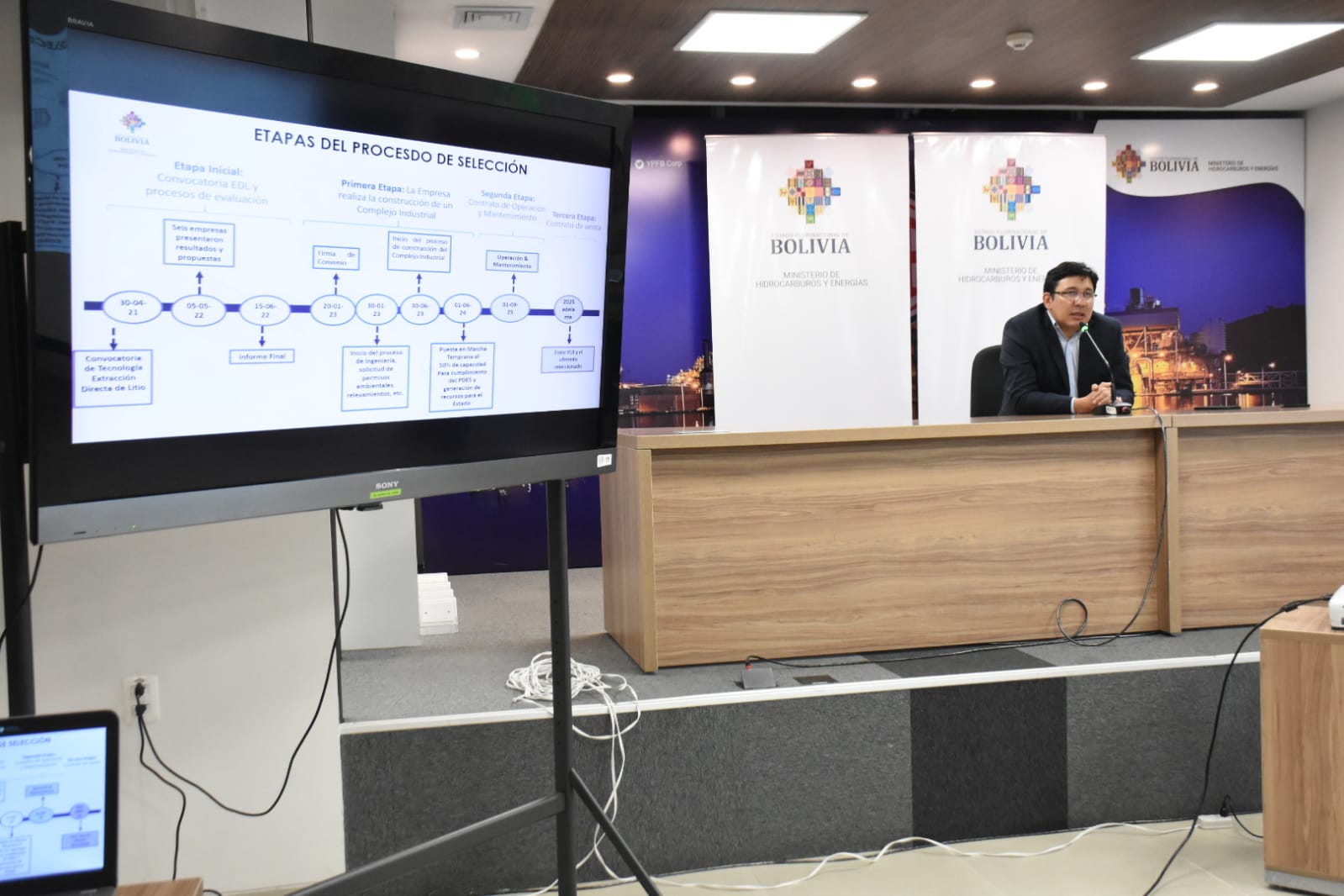 El Ministerio de Hidrocarburos y Energías Franklin Molina, anunció sobre el proceso de selección de la tecnología EDL para la industrialización del LitioUsuario ABIGalería Fotográfica 08 Marzo 2023 Visto: 18224ShareTwittearshare with Whatsappshare with Telegram FOTOS: Jorge Mamani / AEPAnteriorSiguiente