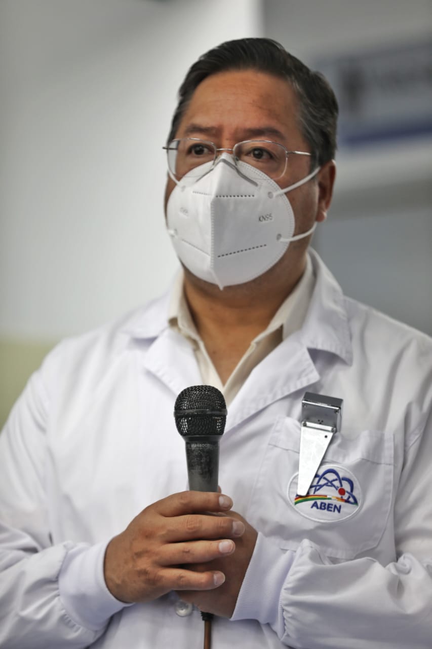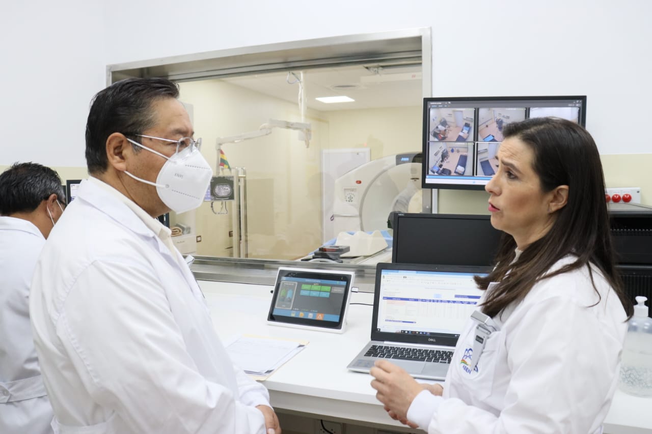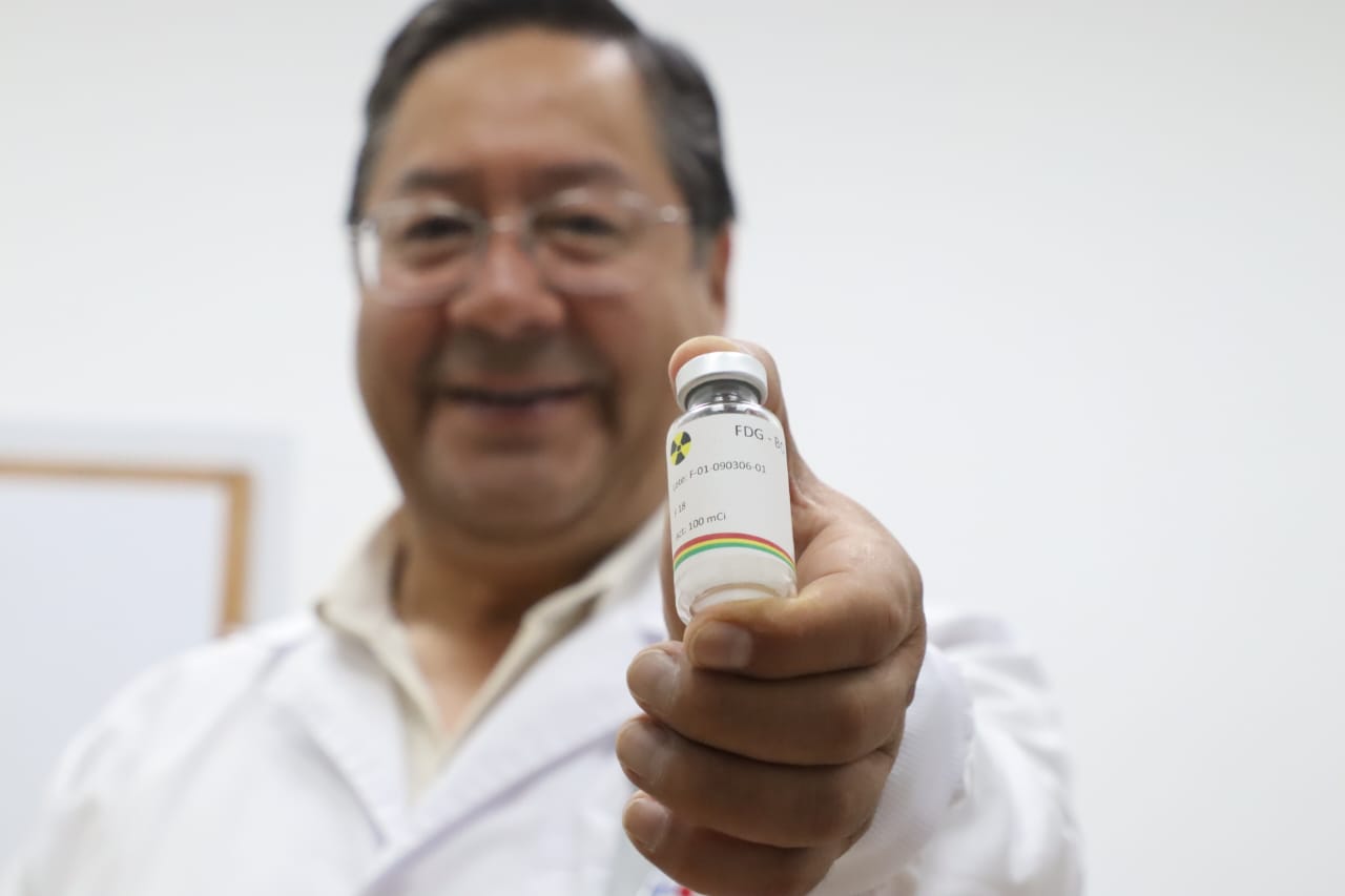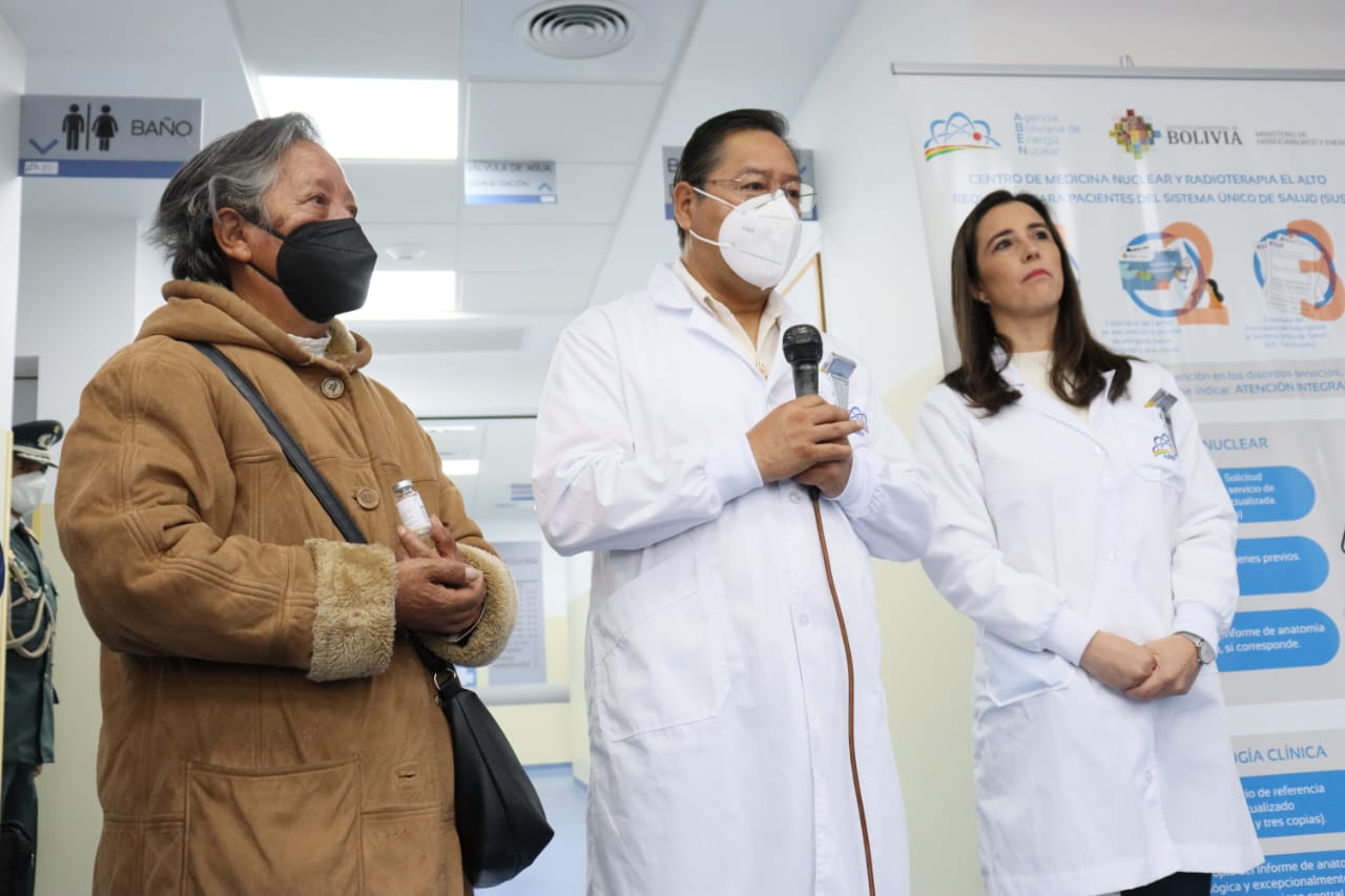 El Presidente del Estado Luis Arce participa en la primera entrega de producción del radiofármaco FDG para la detección del cáncer, en el Centro de Medicina Nuclear y Radioterapia de El Alto