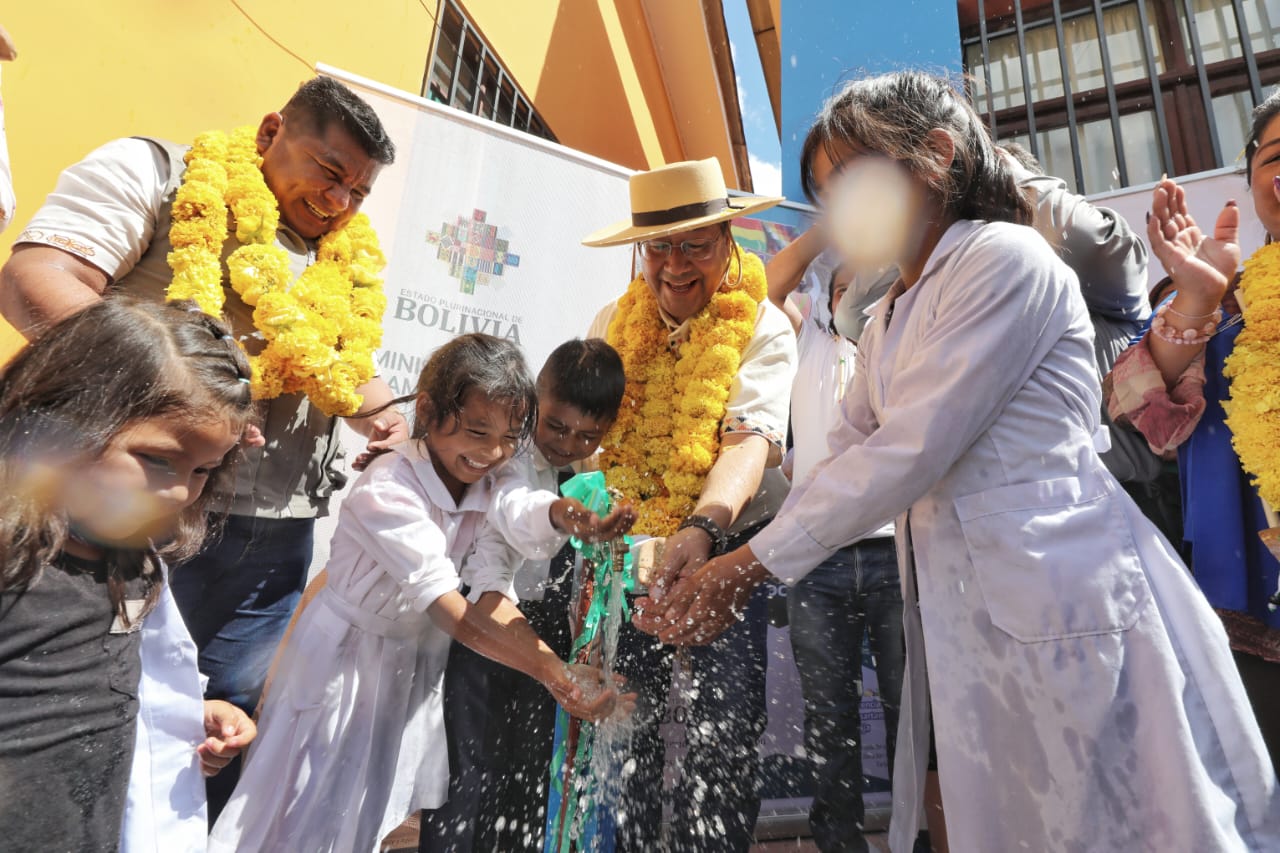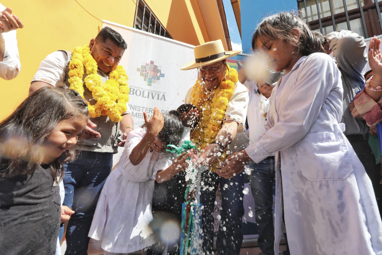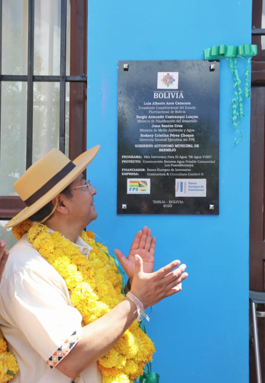 El Presidente del Estado Luis Arce entrega el sistema de agua potable en las comunidades de Los Pozos y Porcelana del municipio de Bermejo, TarijaABI USUARIO HISTORICOGalería Fotográfica 11 Abril 2023 Visto: 5878ShareTwittearshare with Whatsappshare with Telegram Fuente: Comunicación PresidencialAnteriorSiguiente