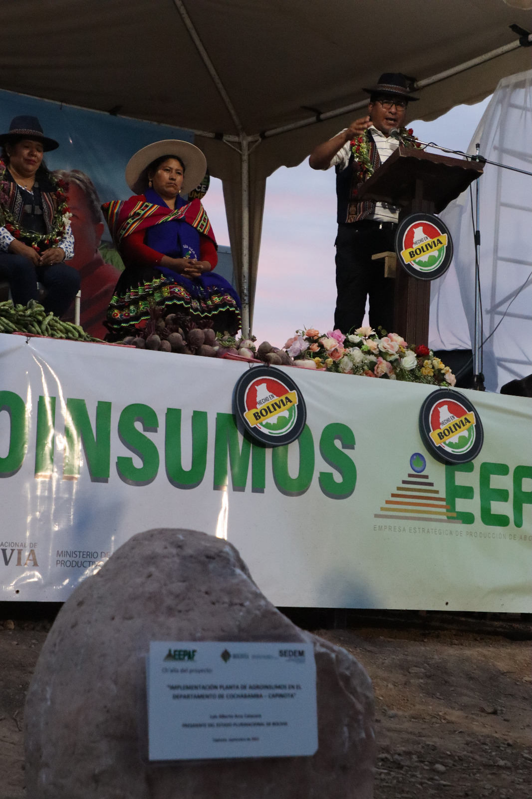 Presidente coloca la piedra fundamental para la construcción de la Planta de Agroinsumos en Capinota, Cochabamba.Estefanny Bolivar ArancibiaGalería Fotográfica 05 Septiembre 2023 Visto: 7829ShareTwittearshare with Whatsappshare with Telegram Fuente: Comunicación PresidencialAnteriorSiguiente