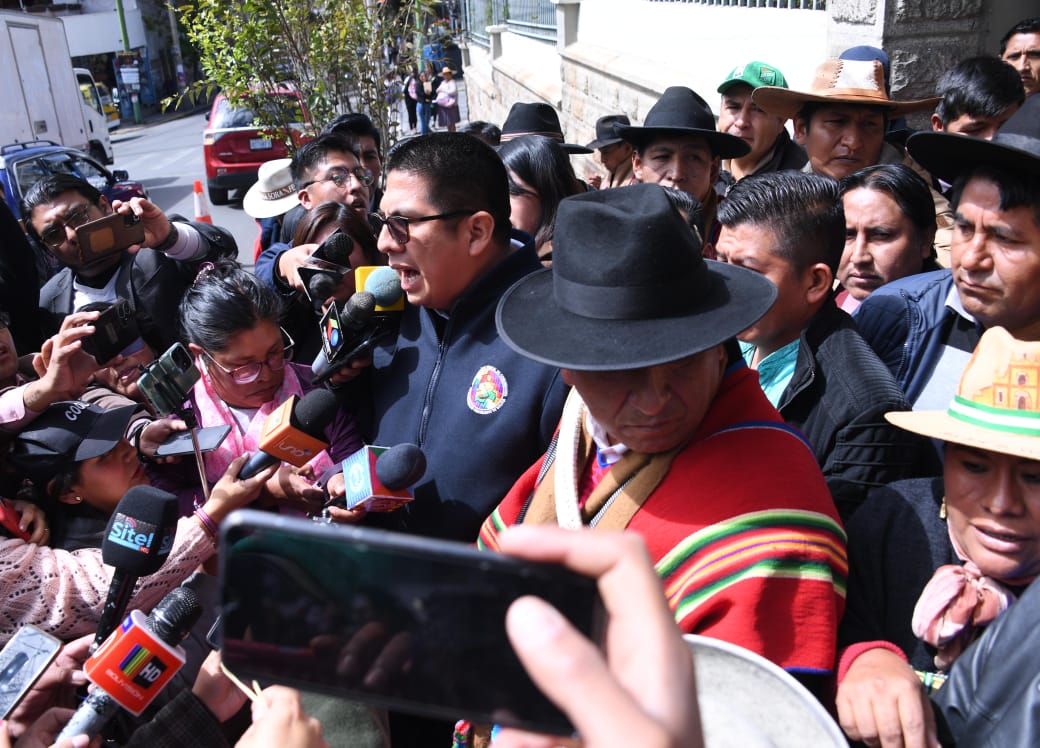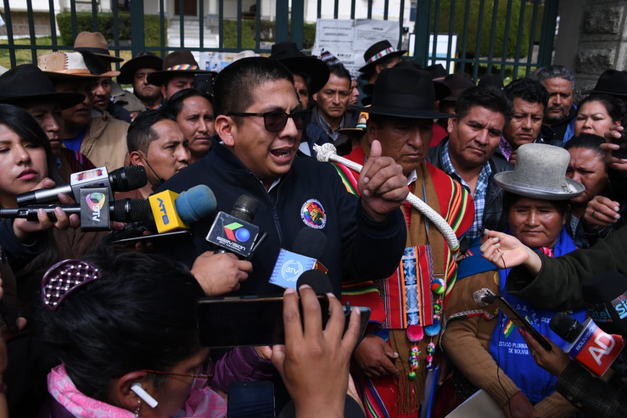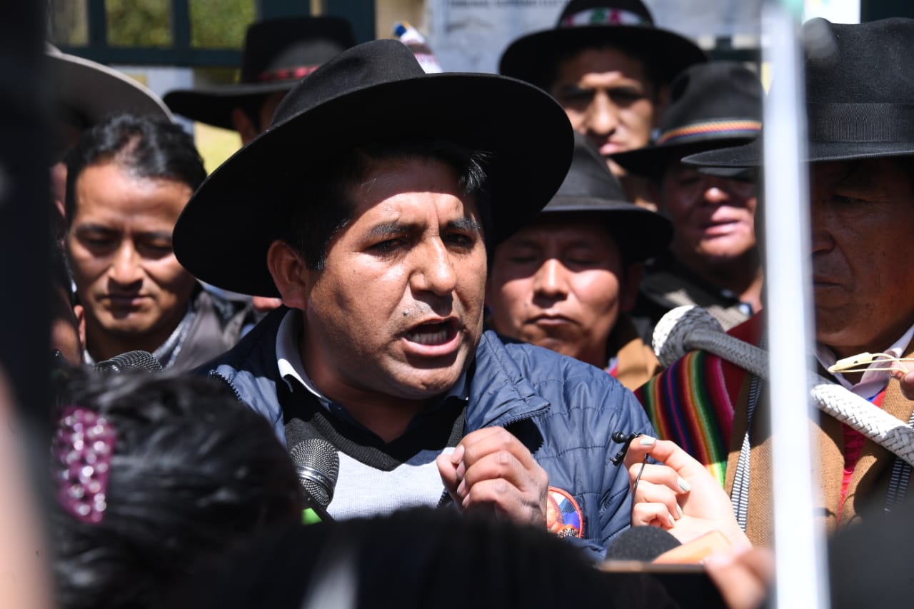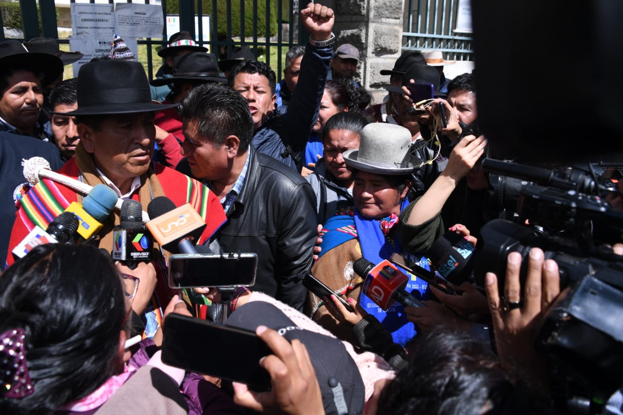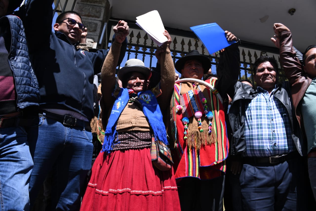 EL Pacto de Unidad conformado por la Confederación Sindical Única de Trabajadores Campesinos de Bolivia (CSUTCB), la Confederación Sindical de Comunidades Interculturales (Csciob), la Federación de Mujeres Campesinas Bartolinas Sisa y la Asociación Departamental de Productores de Coca (Adepcoca), exigen a una sola voz al Tribunal Supremo Electoral (TSE) en conferencia de prensa.