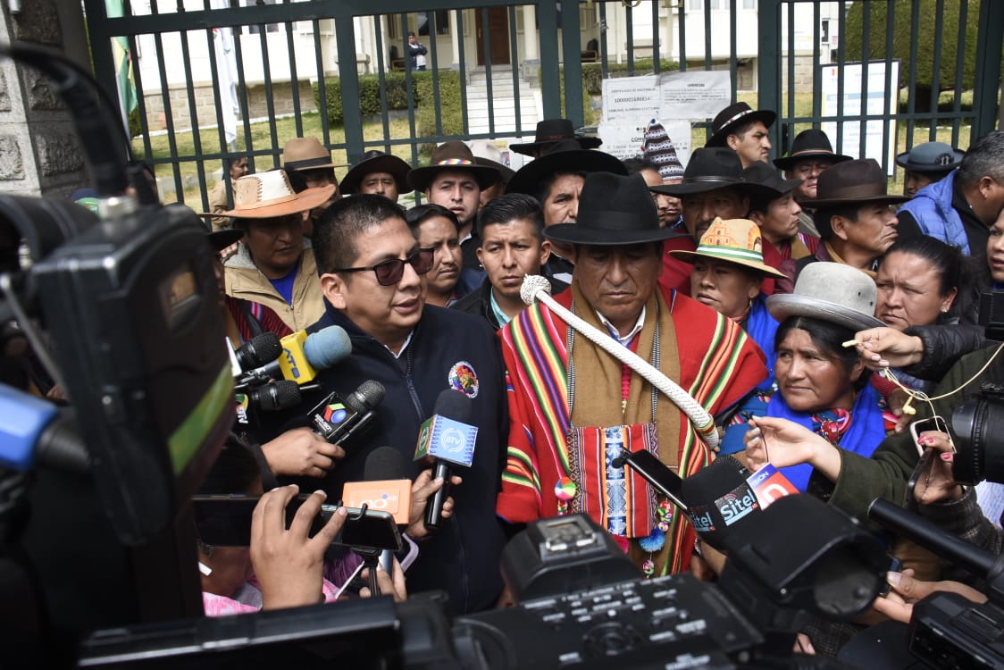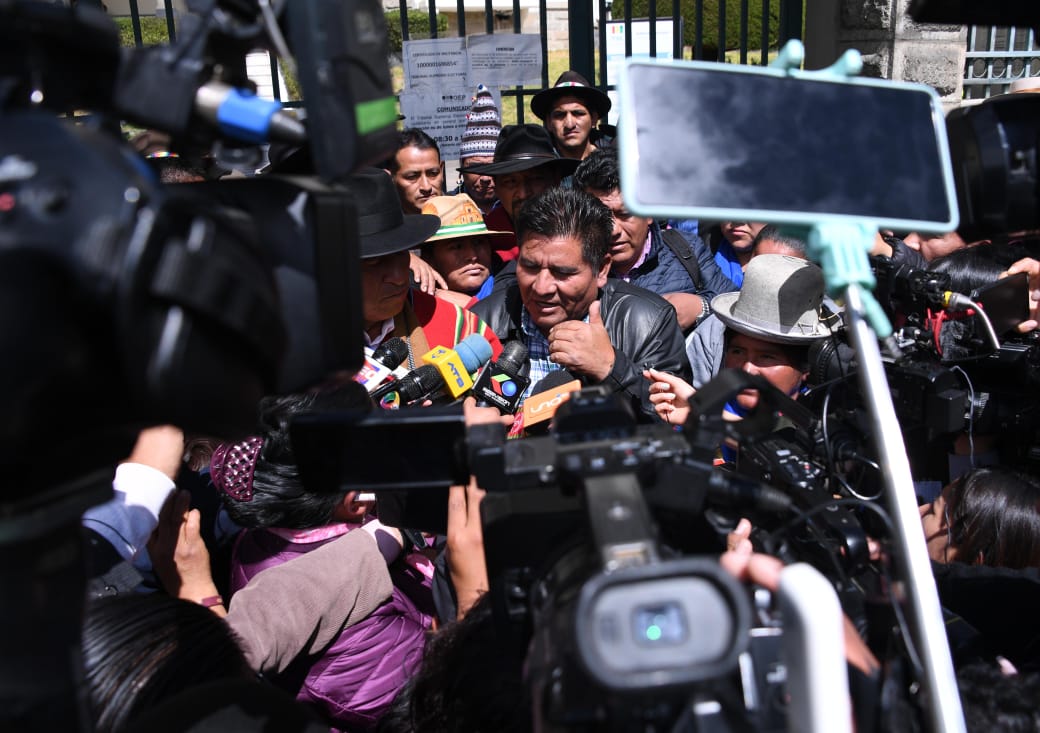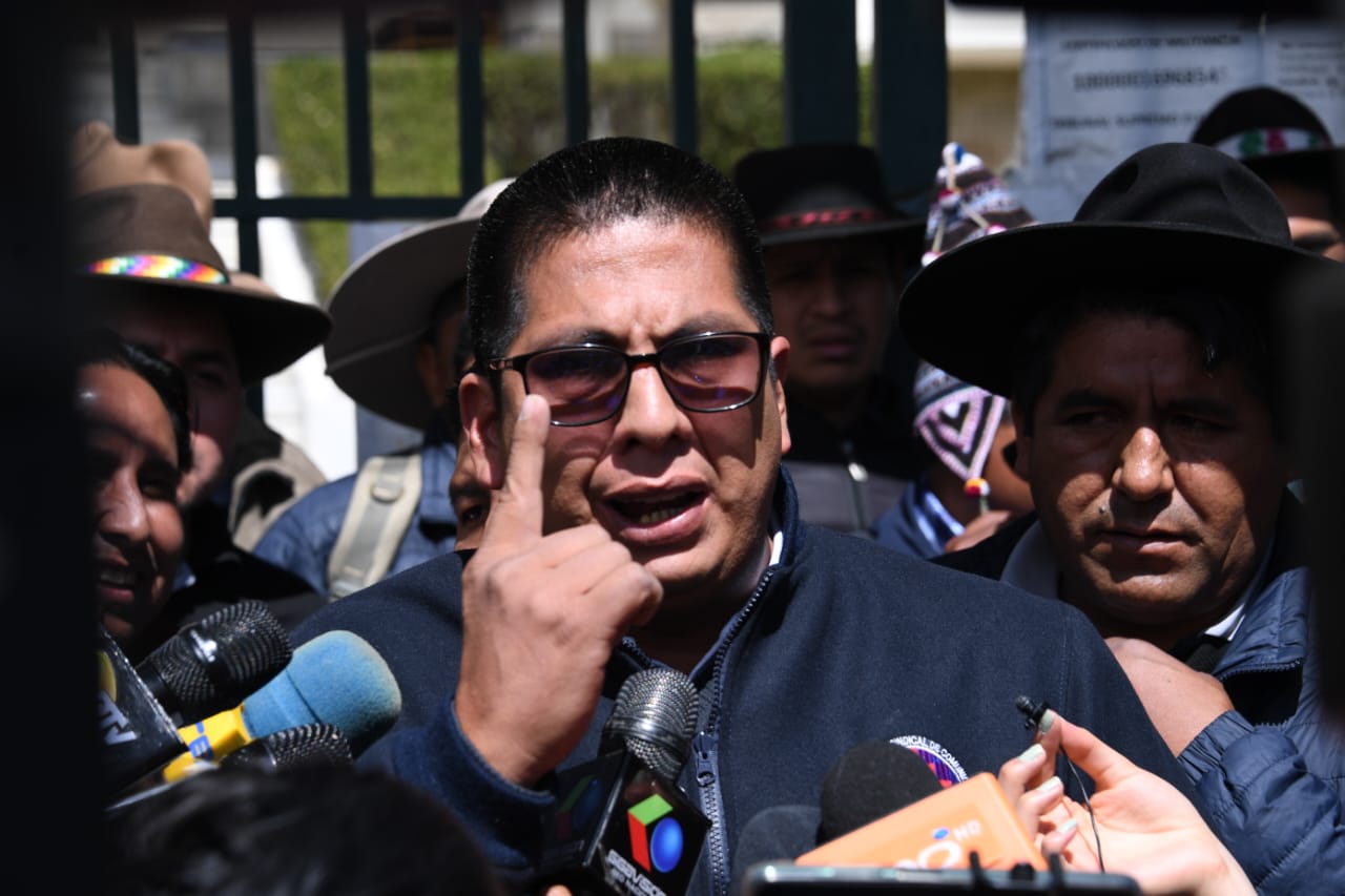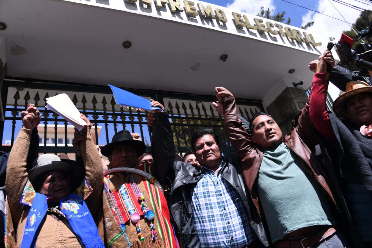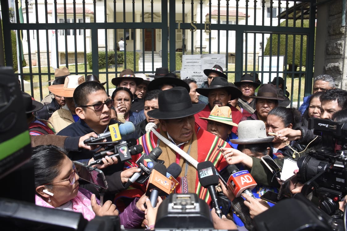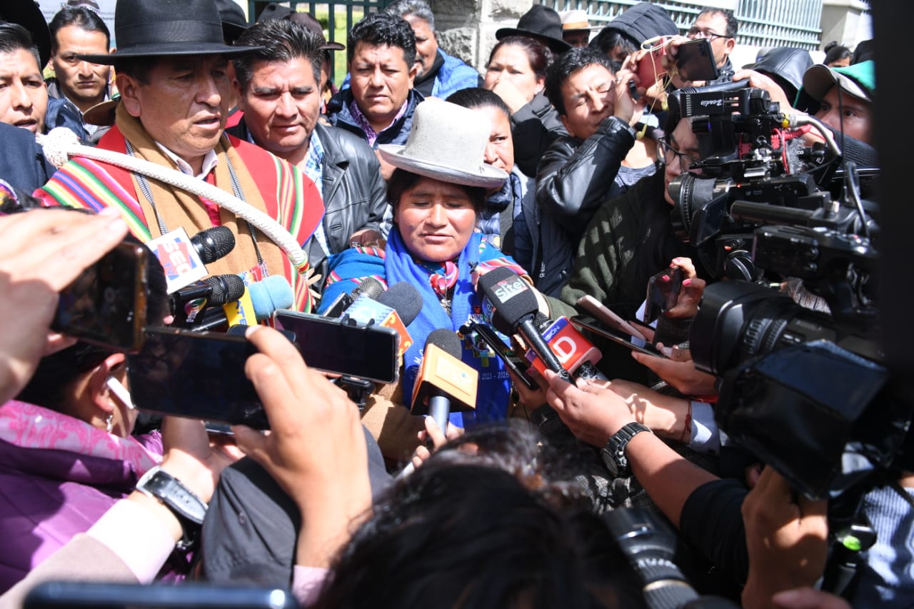 EL Pacto de Unidad conformado por la Confederación Sindical Única de Trabajadores Campesinos de Bolivia (CSUTCB), la Confederación Sindical de Comunidades Interculturales (Csciob), la Federación de Mujeres Campesinas Bartolinas Sisa y la Asociación Departamental de Productores de Coca (Adepcoca), exigen a una sola voz al Tribunal Supremo Electoral (TSE) en conferencia de prensa.