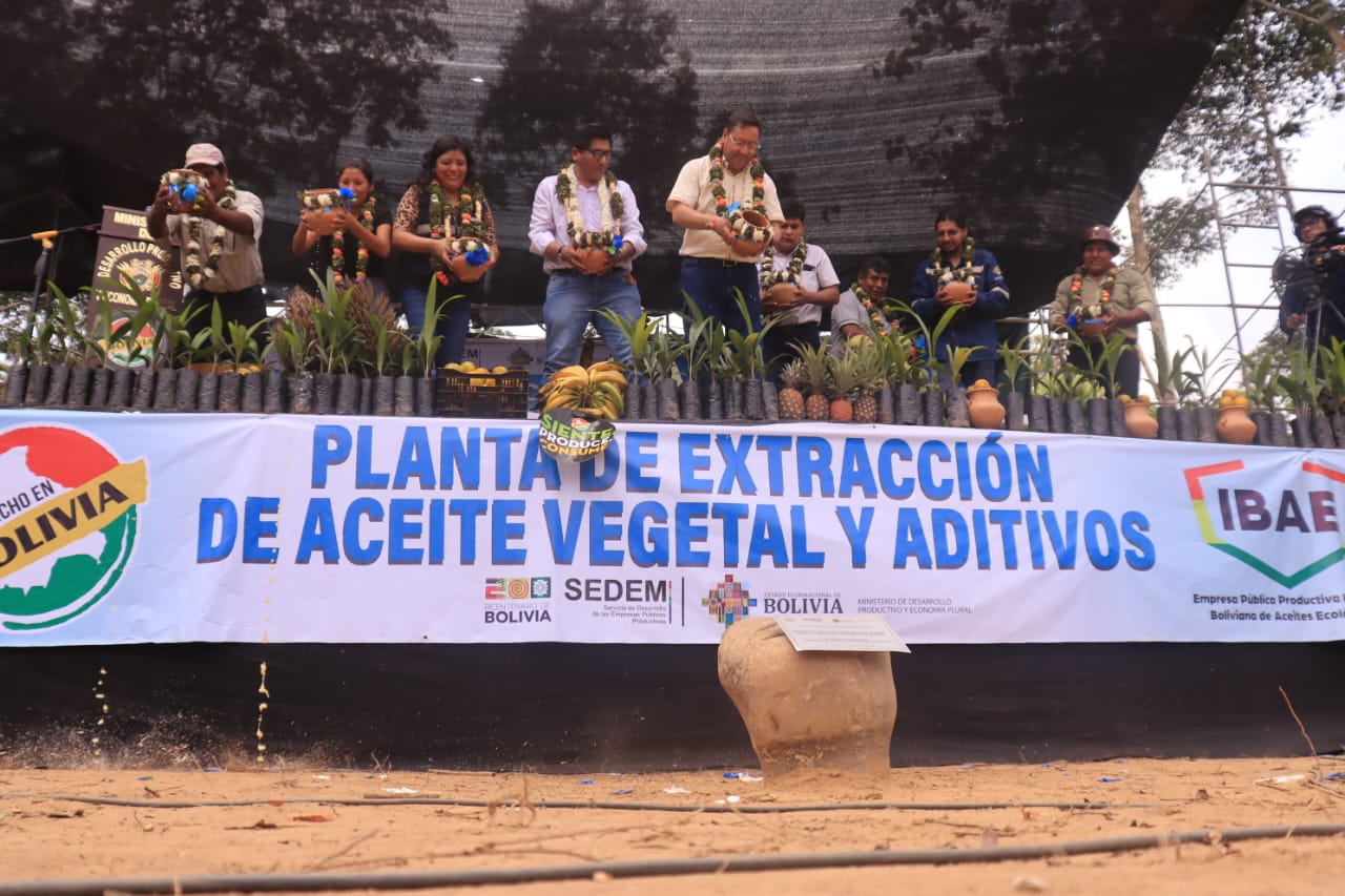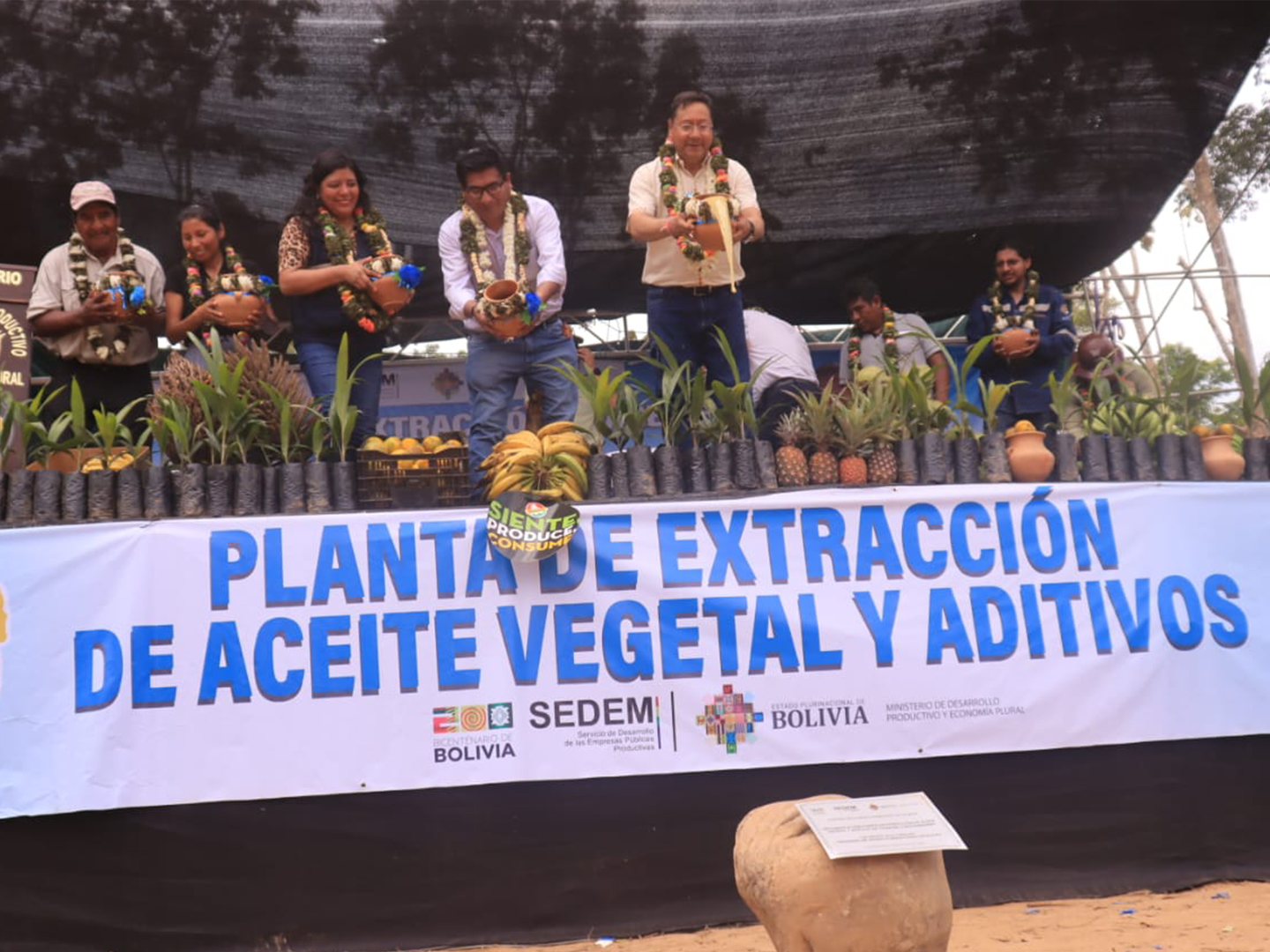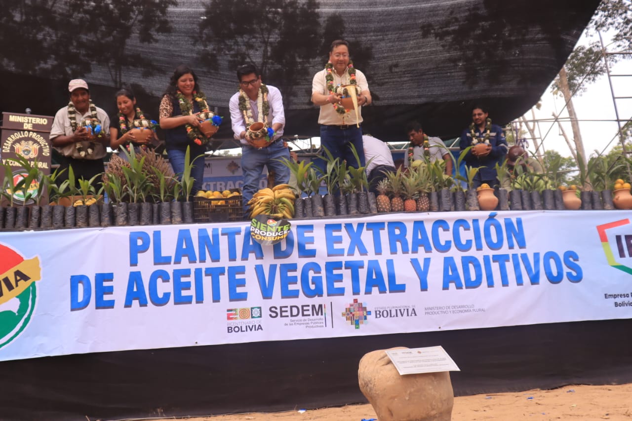 Presidente coloca la piedra fundamental para la construcción de la Planta de Extracción de Aceite Vegetal y Aditivos en Chimoré, Cochabamba.Estefanny Bolivar ArancibiaGalería Fotográfica 12 Septiembre 2023 Visto: 19138ShareTwittearshare with Whatsappshare with Telegram Fuente: Comunicación PresidencialAnteriorSiguiente