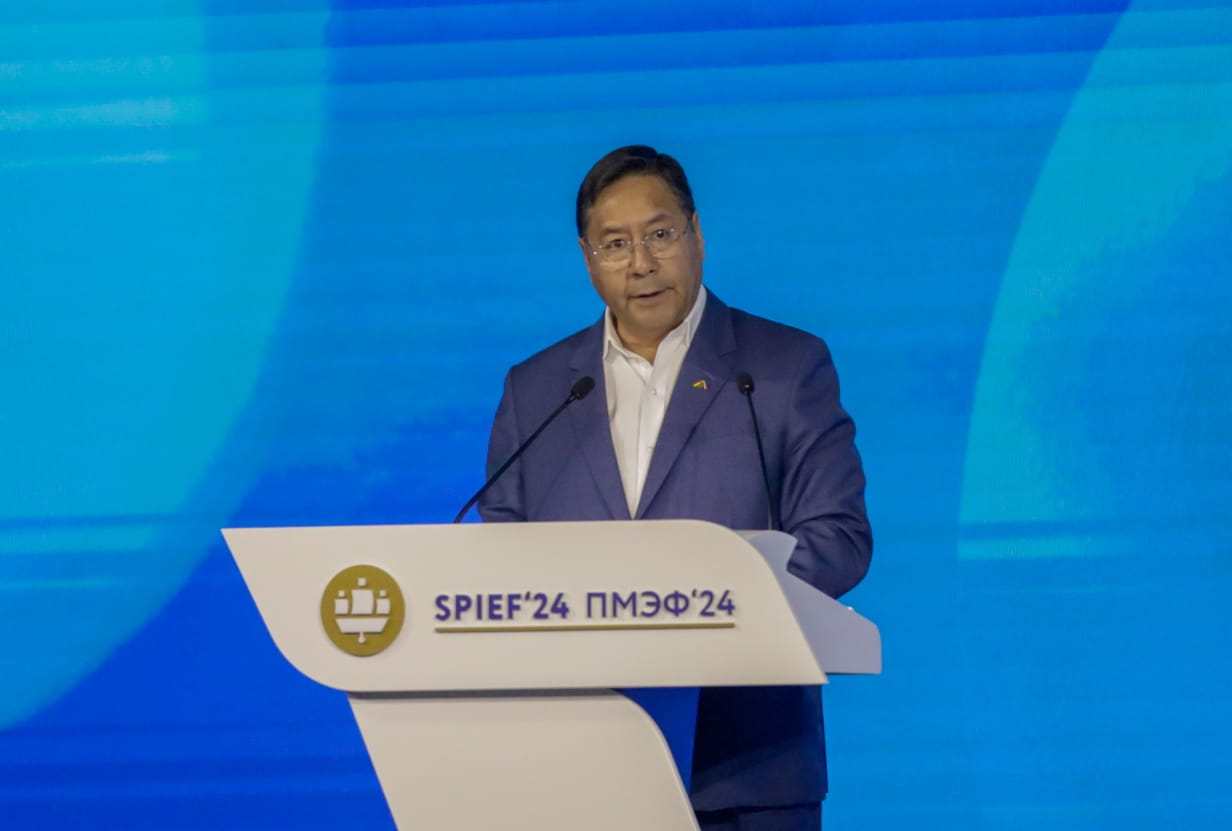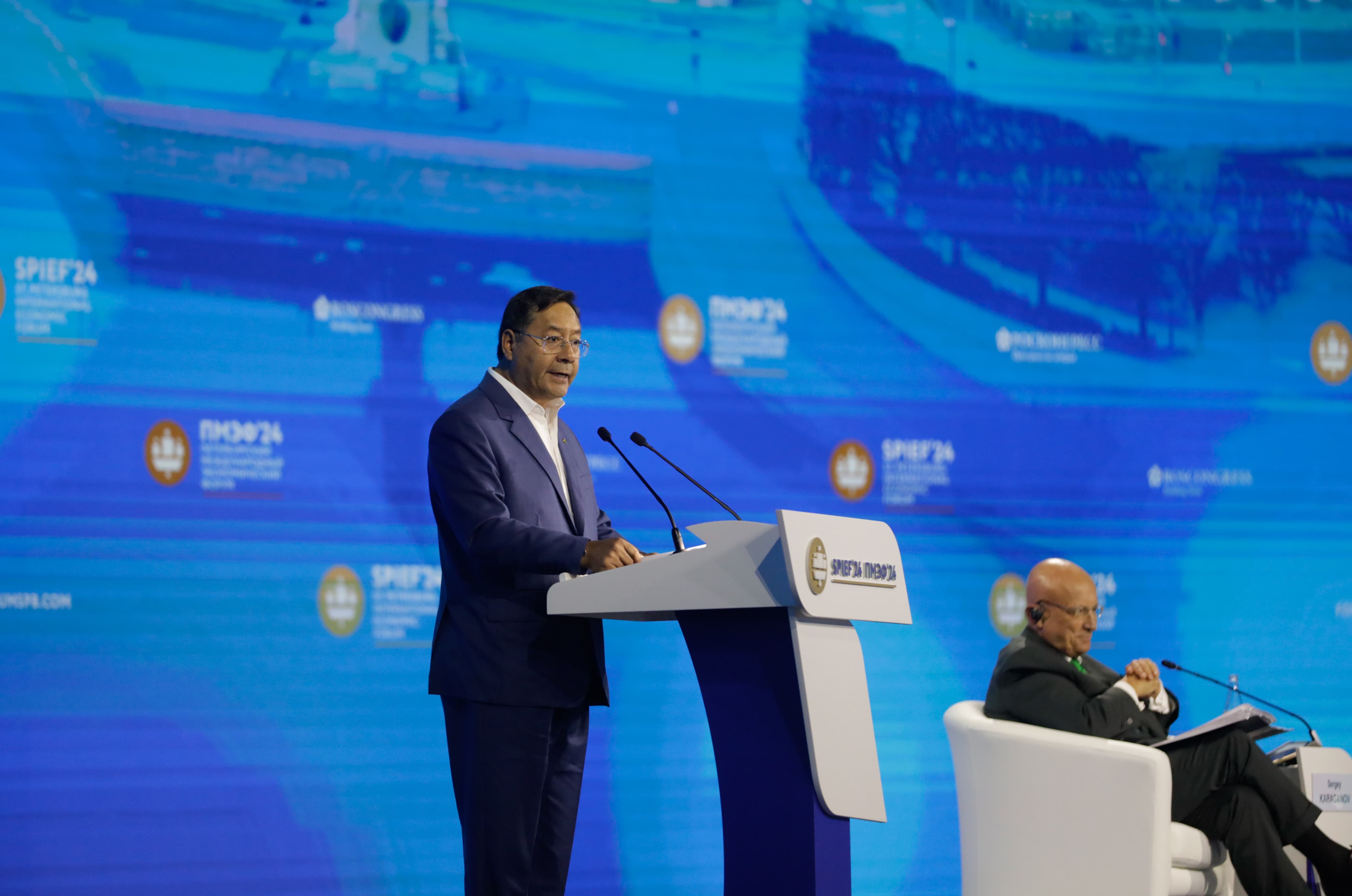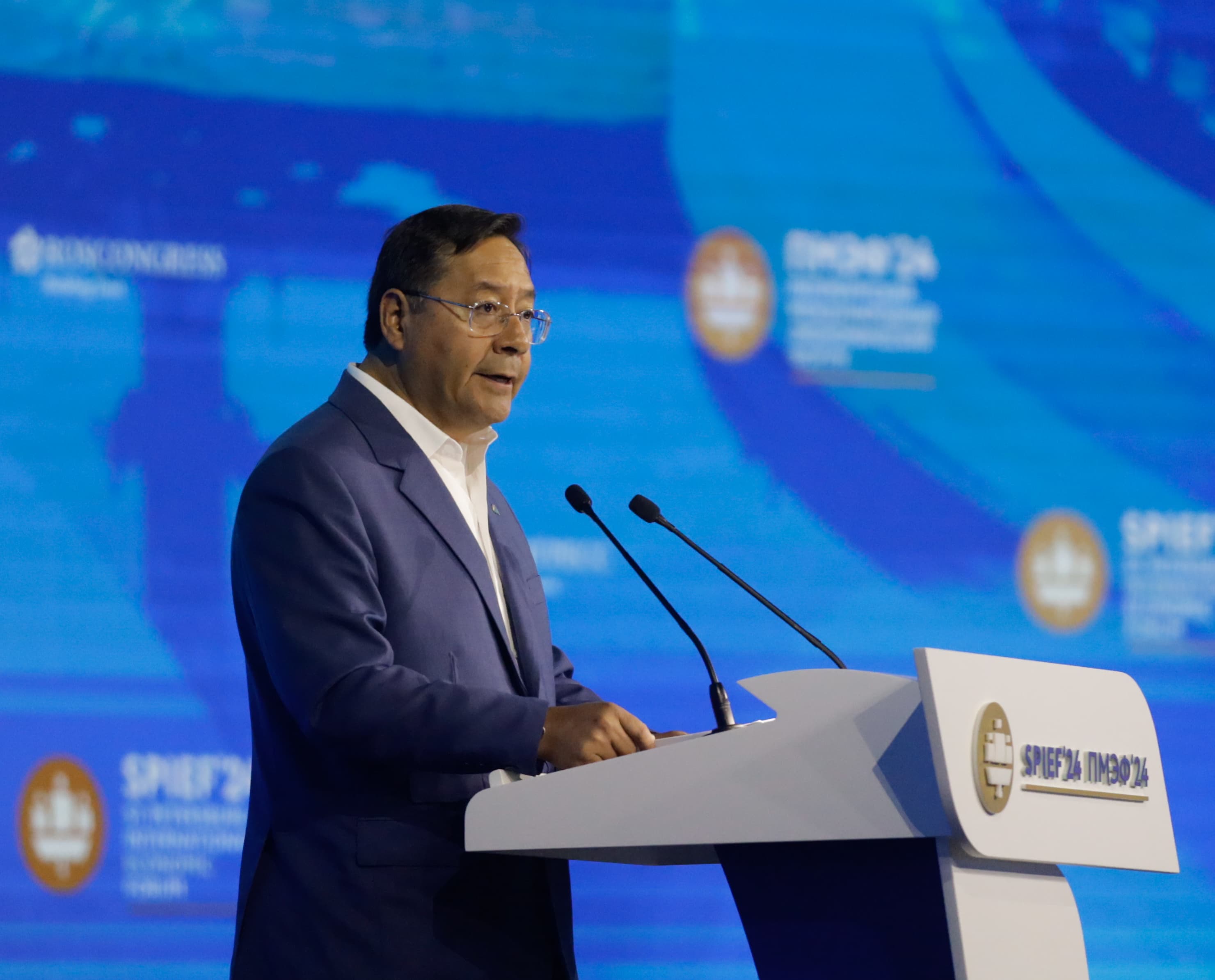 El presidente del Estado, Luis Arce Catacora, participa del Foro Económico Internacional de San PetersburgoUsuario ABIGalería Fotográfica 07 Junio 2024 Visto: 3705ShareTwittearshare with Whatsappshare with Telegram Foto: Rolando Encinas / Comunicación PresidencialAnteriorSiguiente