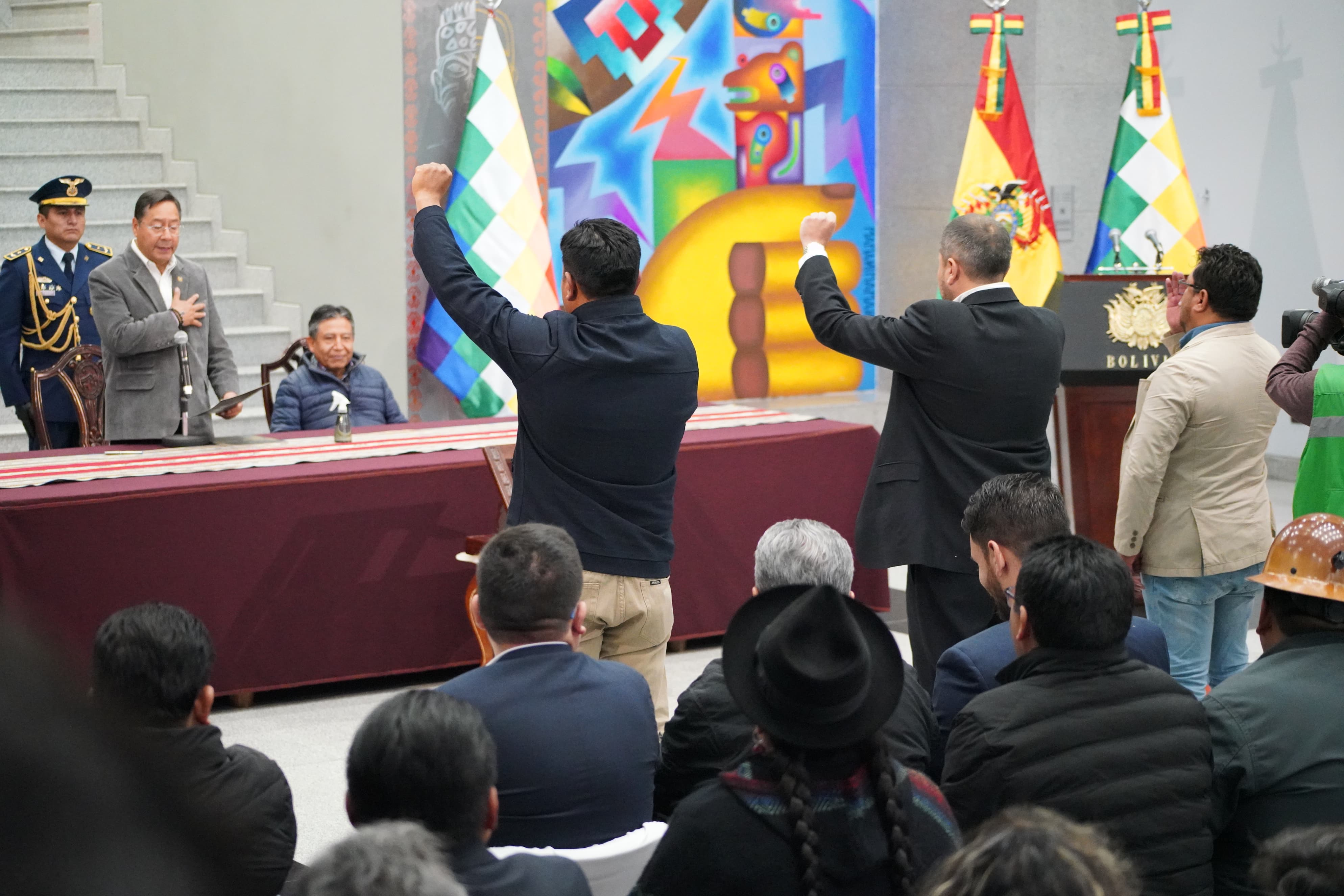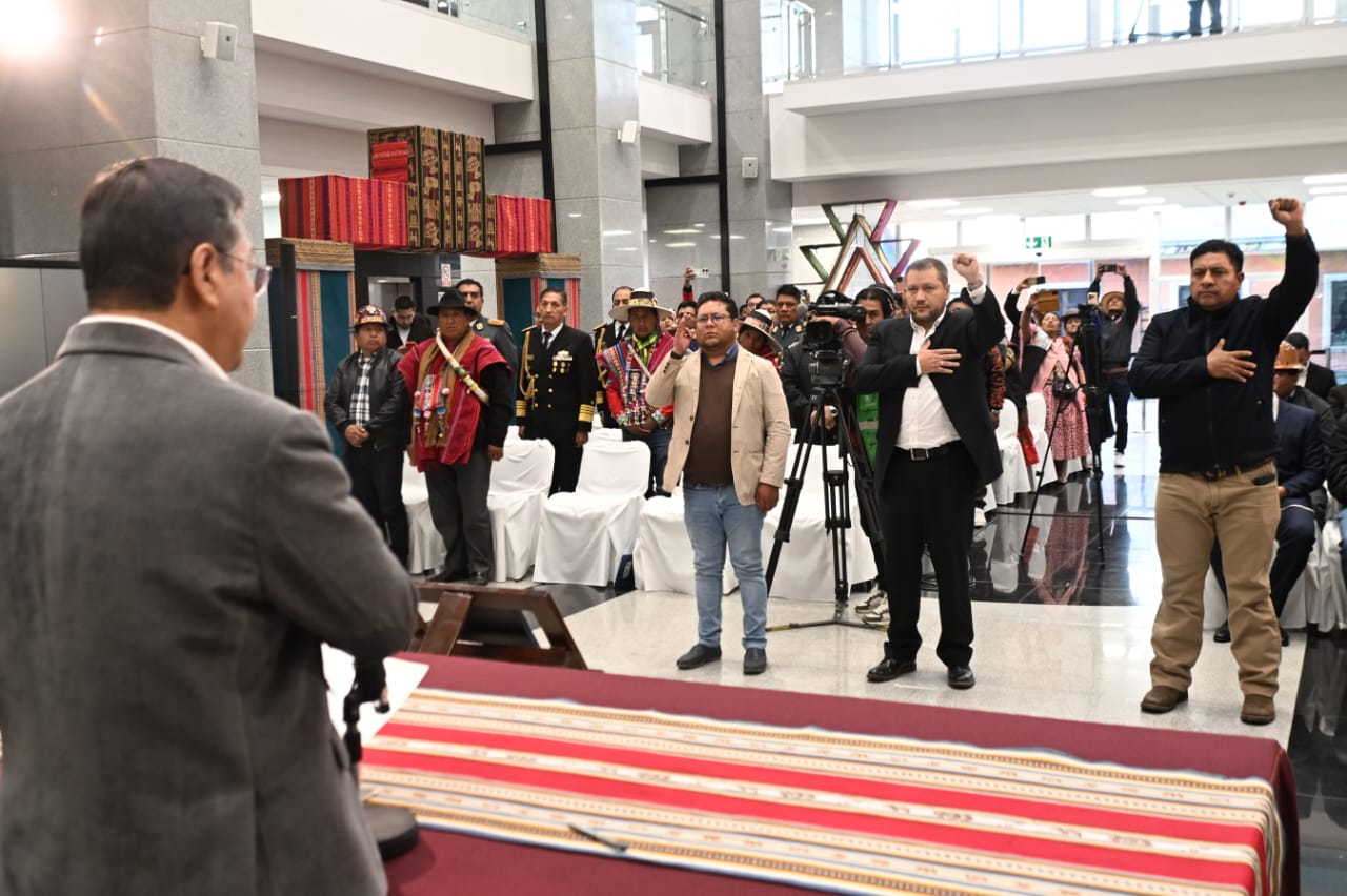 El presidente del Estado, Luis Arce Catacora, posesiono este lunes a tres nuevos ministro en las carteras de Hidrocarburos y Energías, de Trabajo y Previsión Social y de Desarrollo Rural y TierrasUsuario ABIGalería Fotográfica 12 Agosto 2024 Visto: 2528ShareTwittearshare with Whatsappshare with Telegram Fuente Comunicación Presidencial y Jorge Mamani AnteriorSiguiente