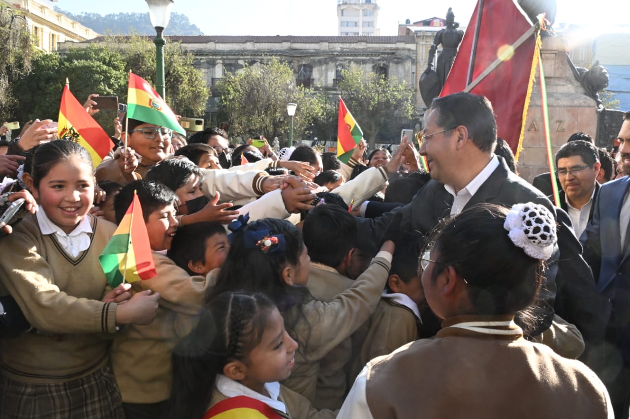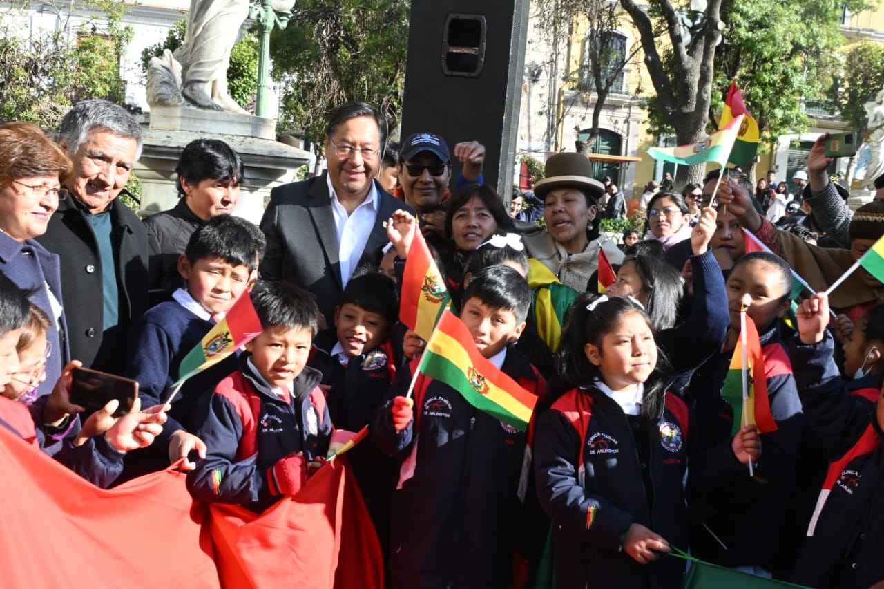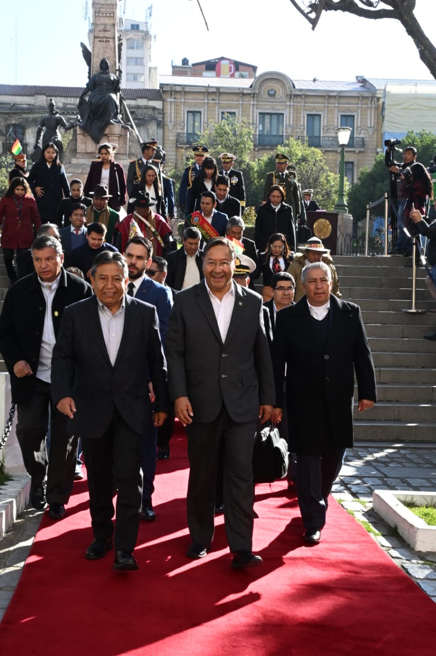 El presidente del Estado, Luis Arce Catacora, participa en actos en homenaje al Día de la Bandera Usuario ABIGalería Fotográfica 19 Agosto 2024 Visto: 3461ShareTwittearshare with Whatsappshare with Telegram Fuente Comunicación Presidencial AnteriorSiguiente