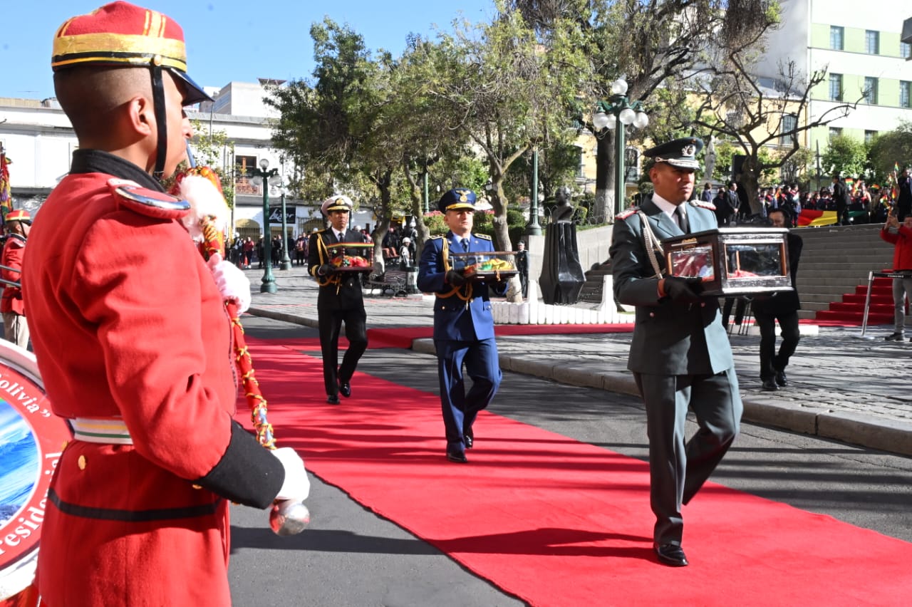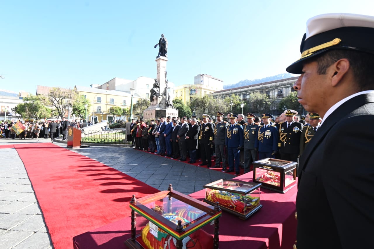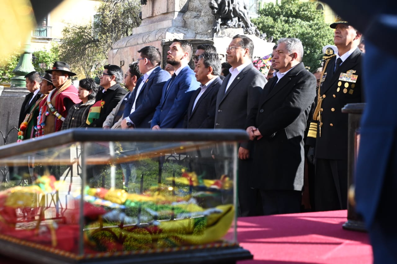 El presidente del Estado, Luis Arce Catacora, participa en actos en homenaje al Día de la Bandera Usuario ABIGalería Fotográfica 19 Agosto 2024 Visto: 3461ShareTwittearshare with Whatsappshare with Telegram Fuente Comunicación Presidencial AnteriorSiguiente