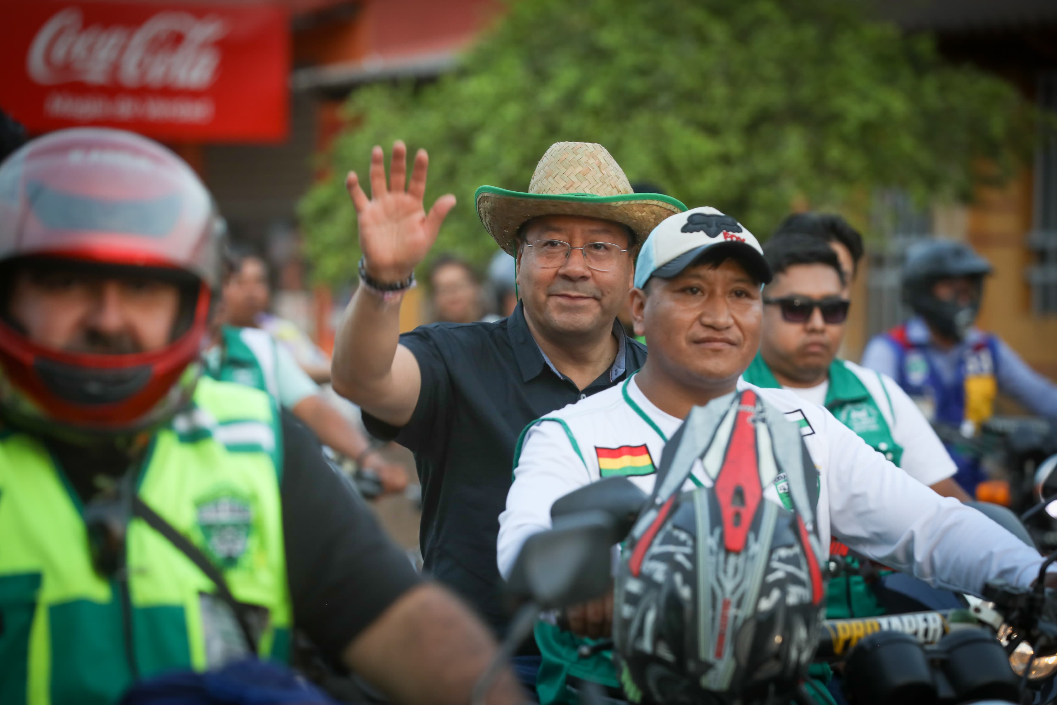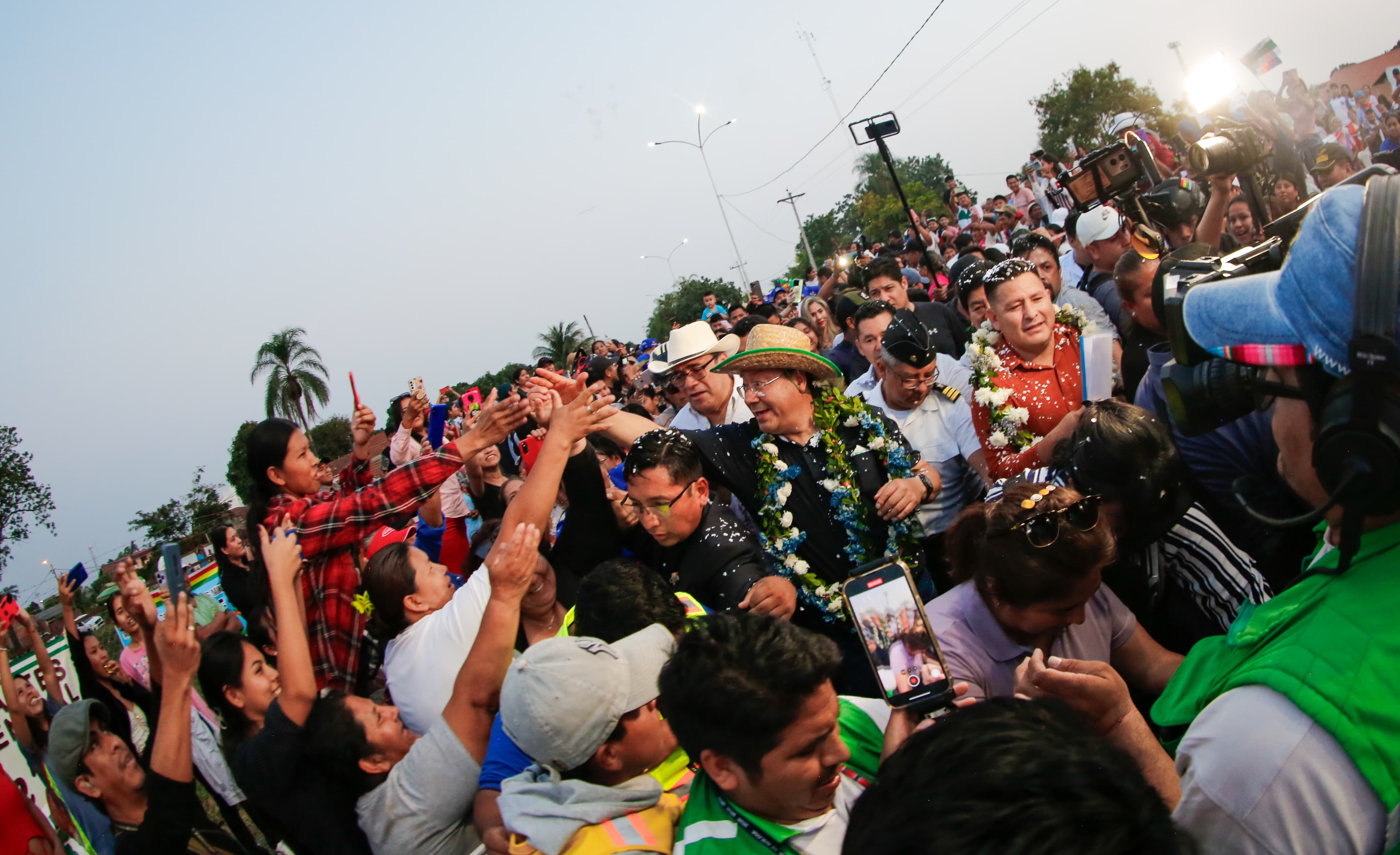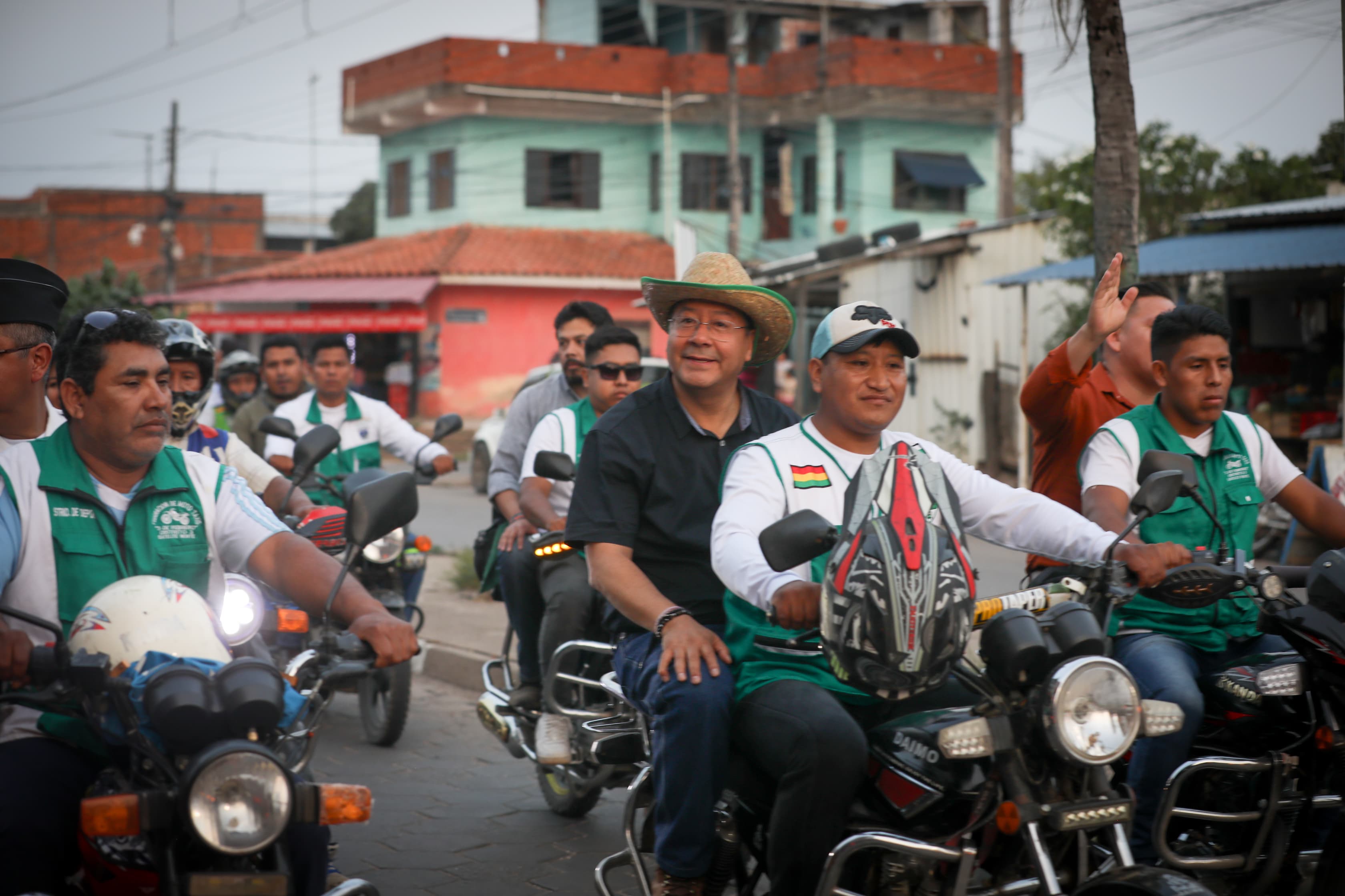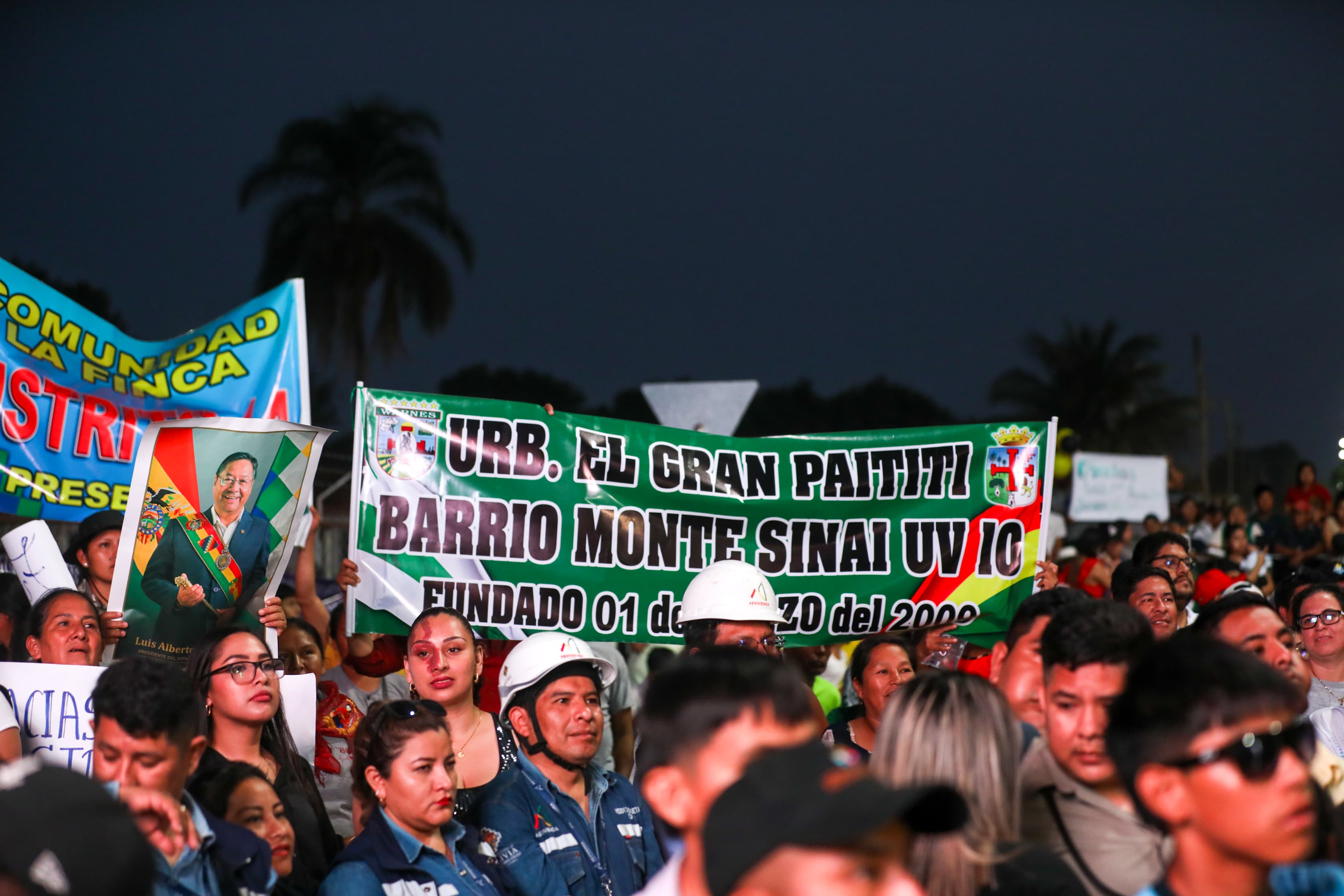 El presidente del Estado, Luis Arce Catacora, entrega el Proyecto Manejo Integral de la Microcuenca Parque Lineal Ecológico del Río Chane - Warnes, en el municipio de Warnes, Santa Cruz
