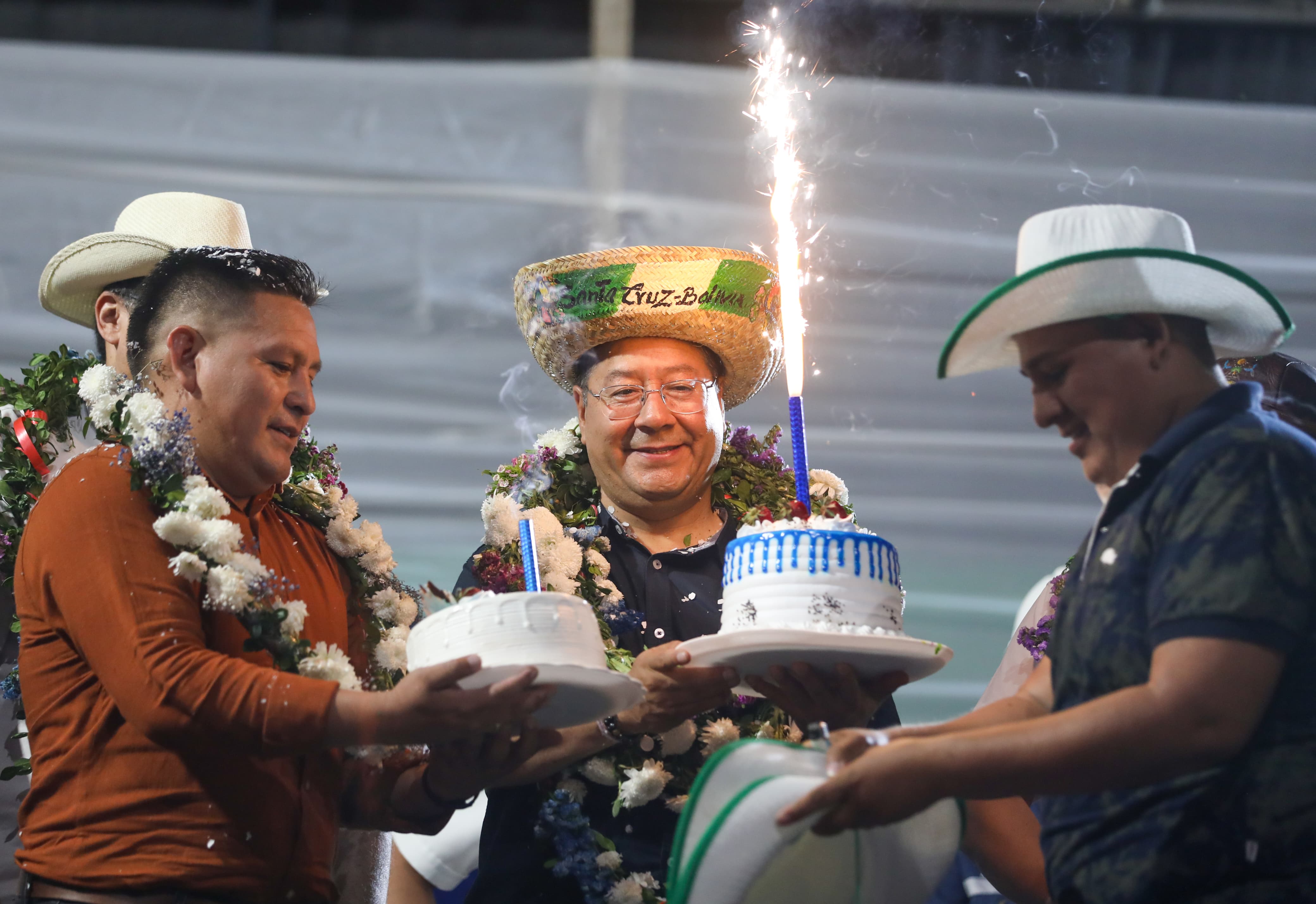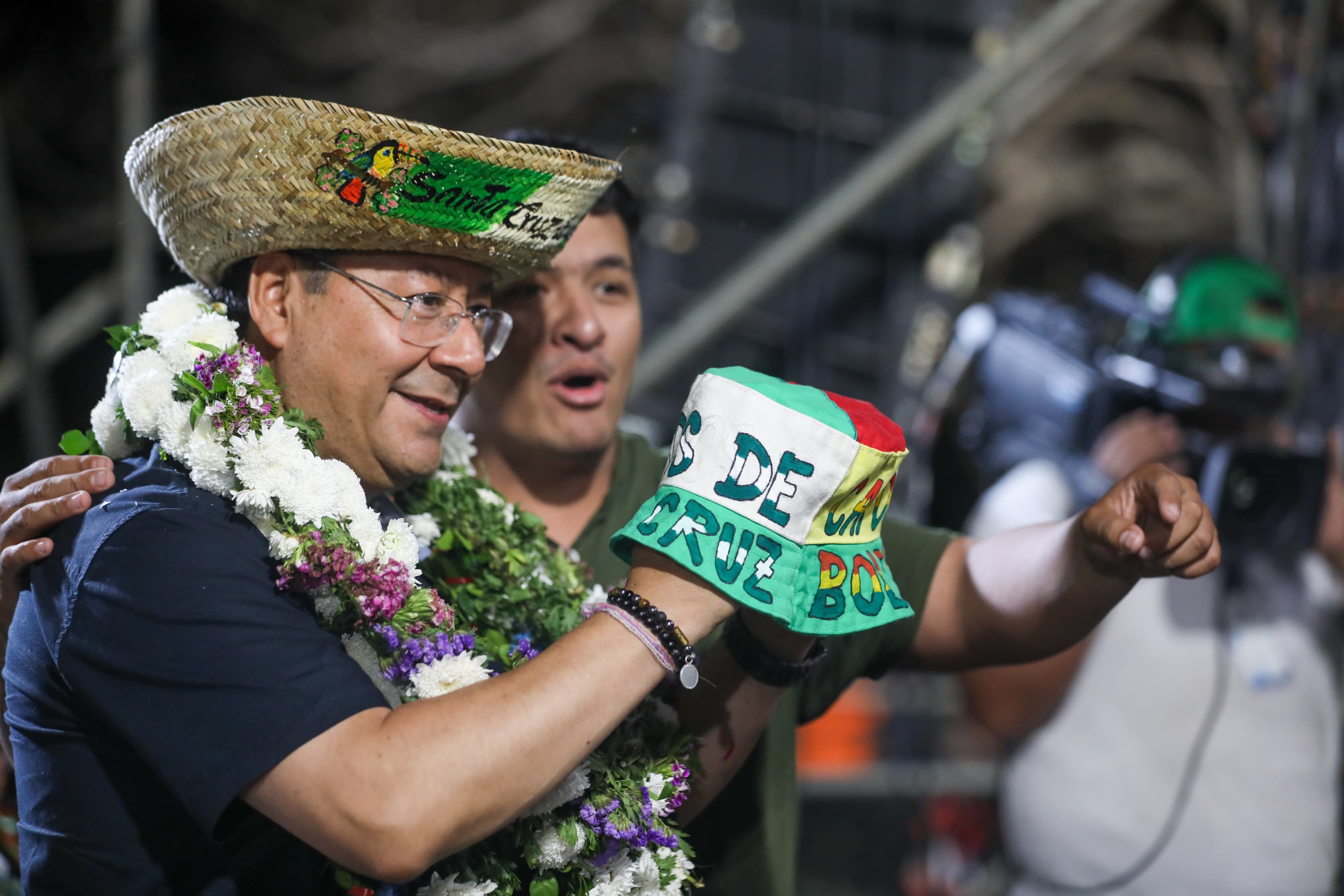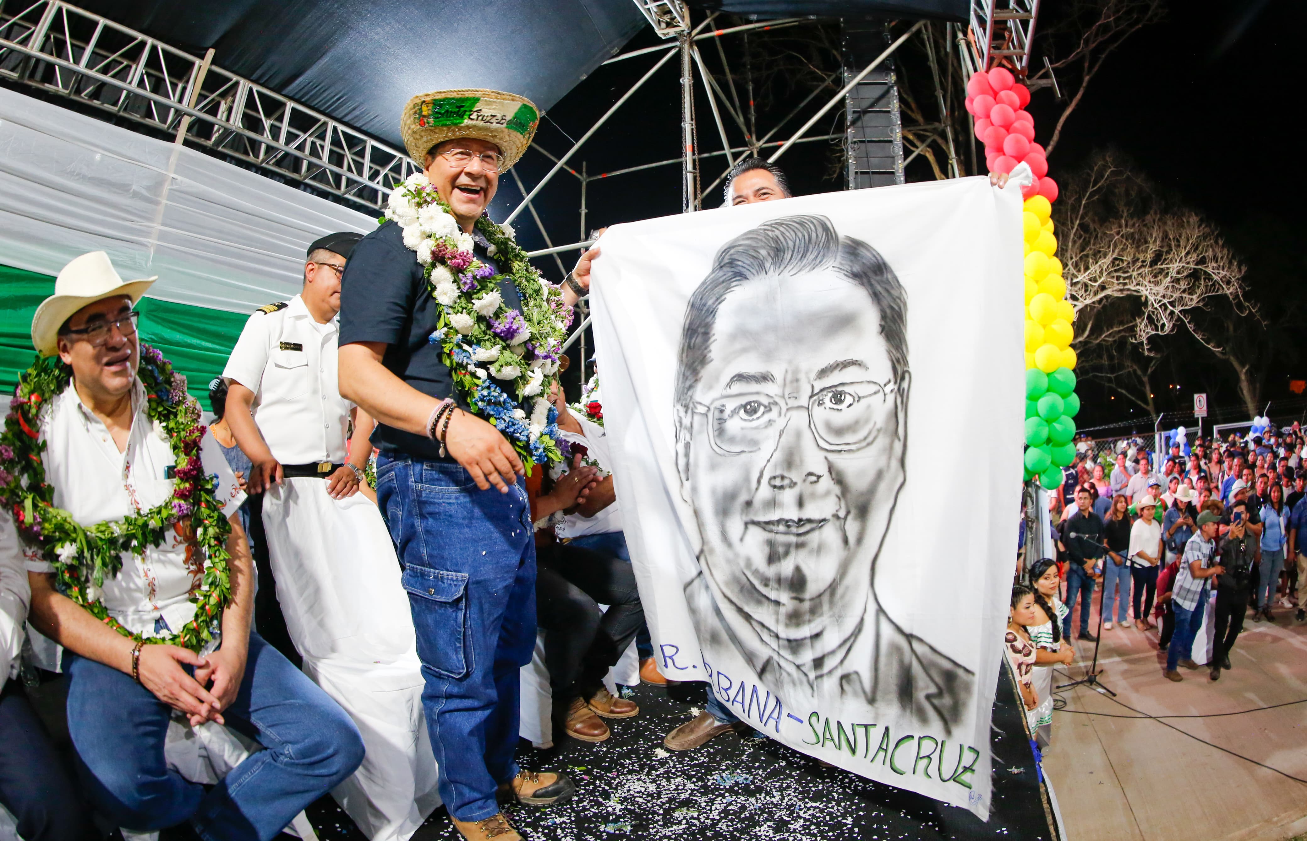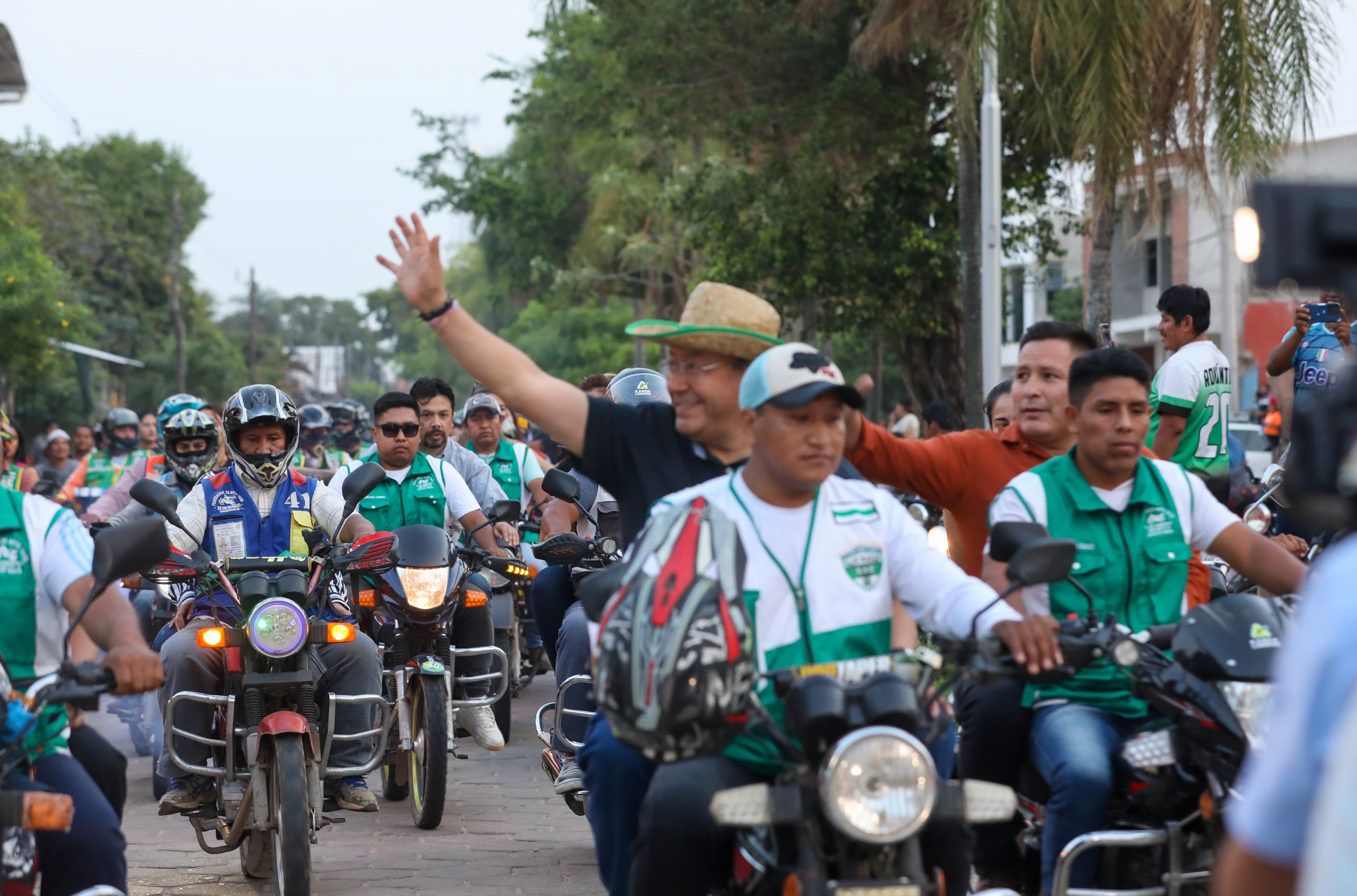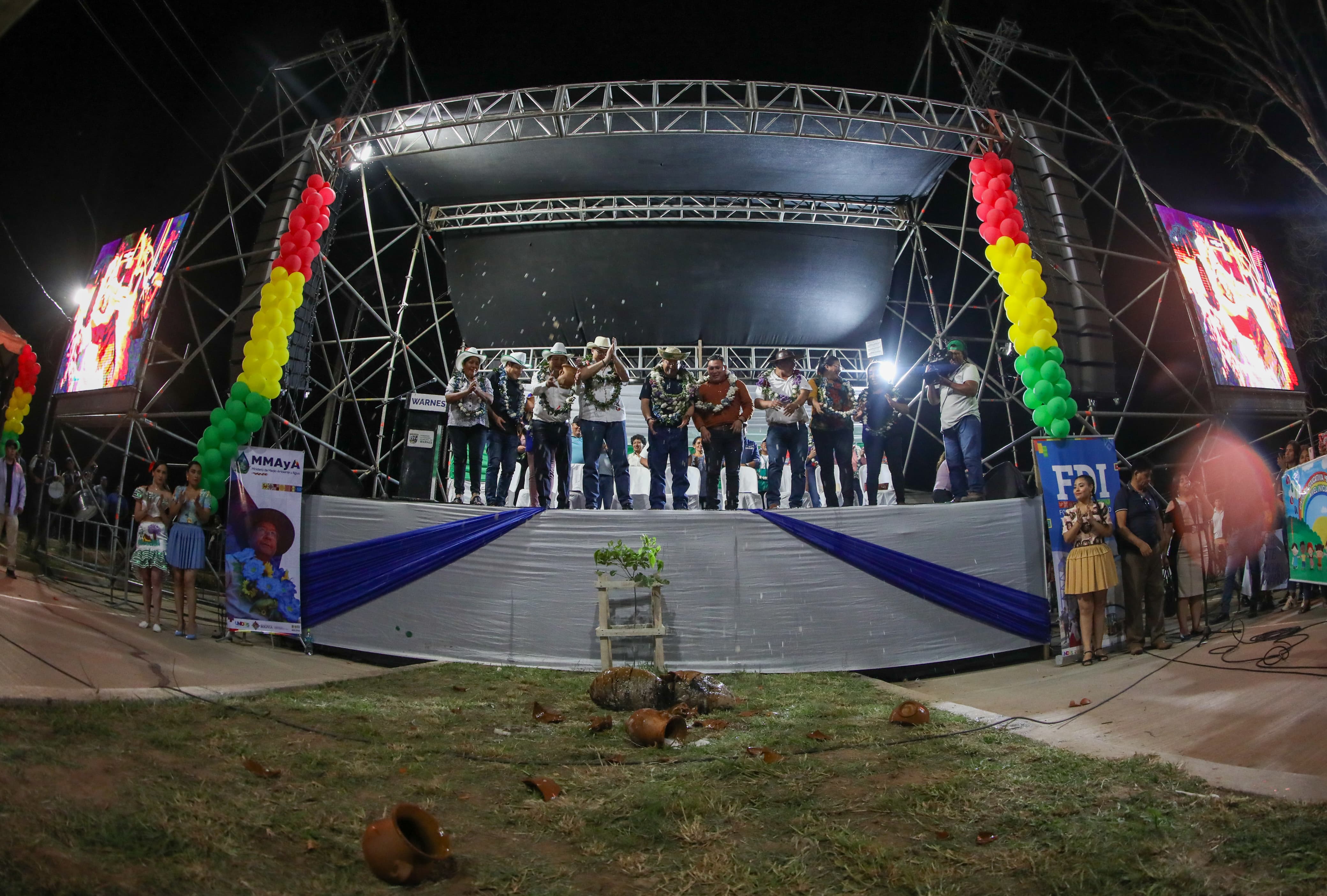 El presidente del Estado, Luis Arce Catacora, entrega el Proyecto Manejo Integral de la Microcuenca Parque Lineal Ecológico del Río Chane - Warnes, en el municipio de Warnes, Santa Cruz