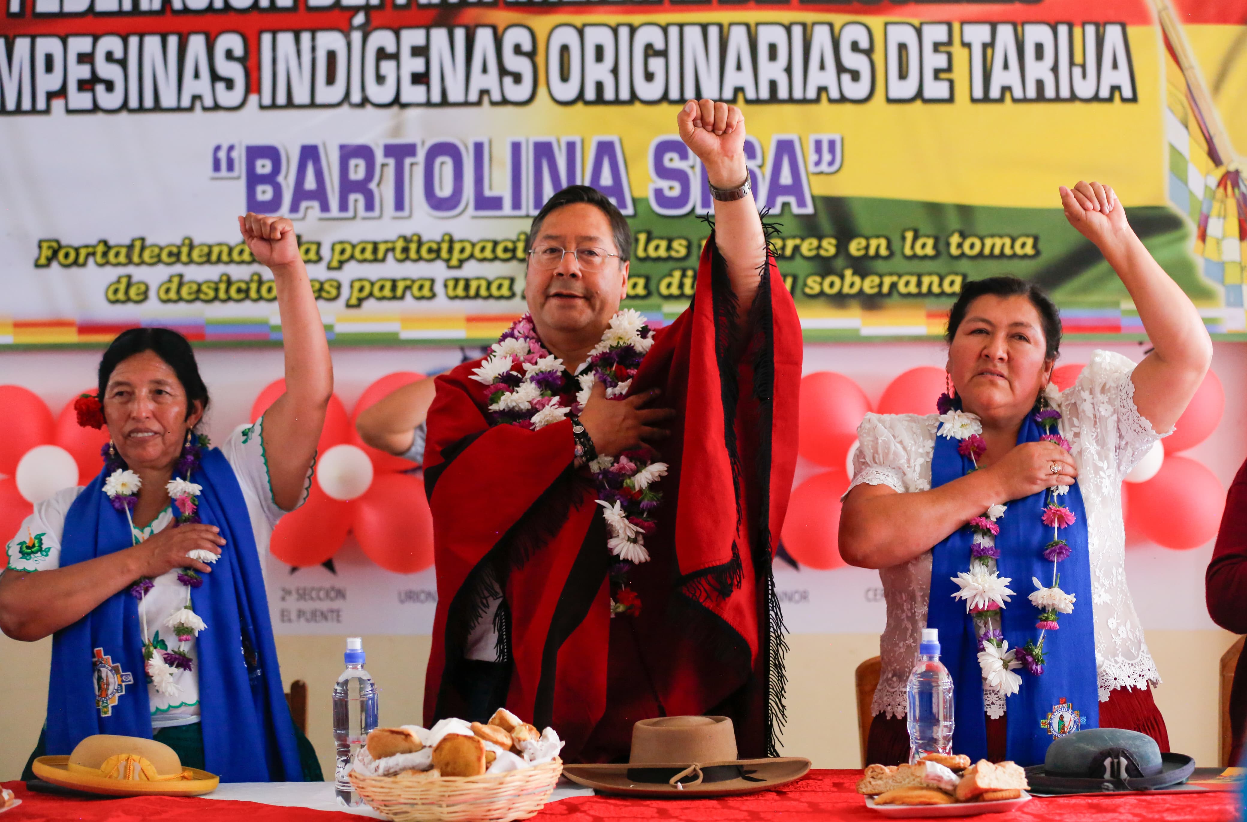 El presidente del Estado, Luis Arce Catacora, participa en el 24 aniversario de la Federación Departamental de Mujeres Campesinas Indígenas Originarias de Tarija, Bartolina Sisa