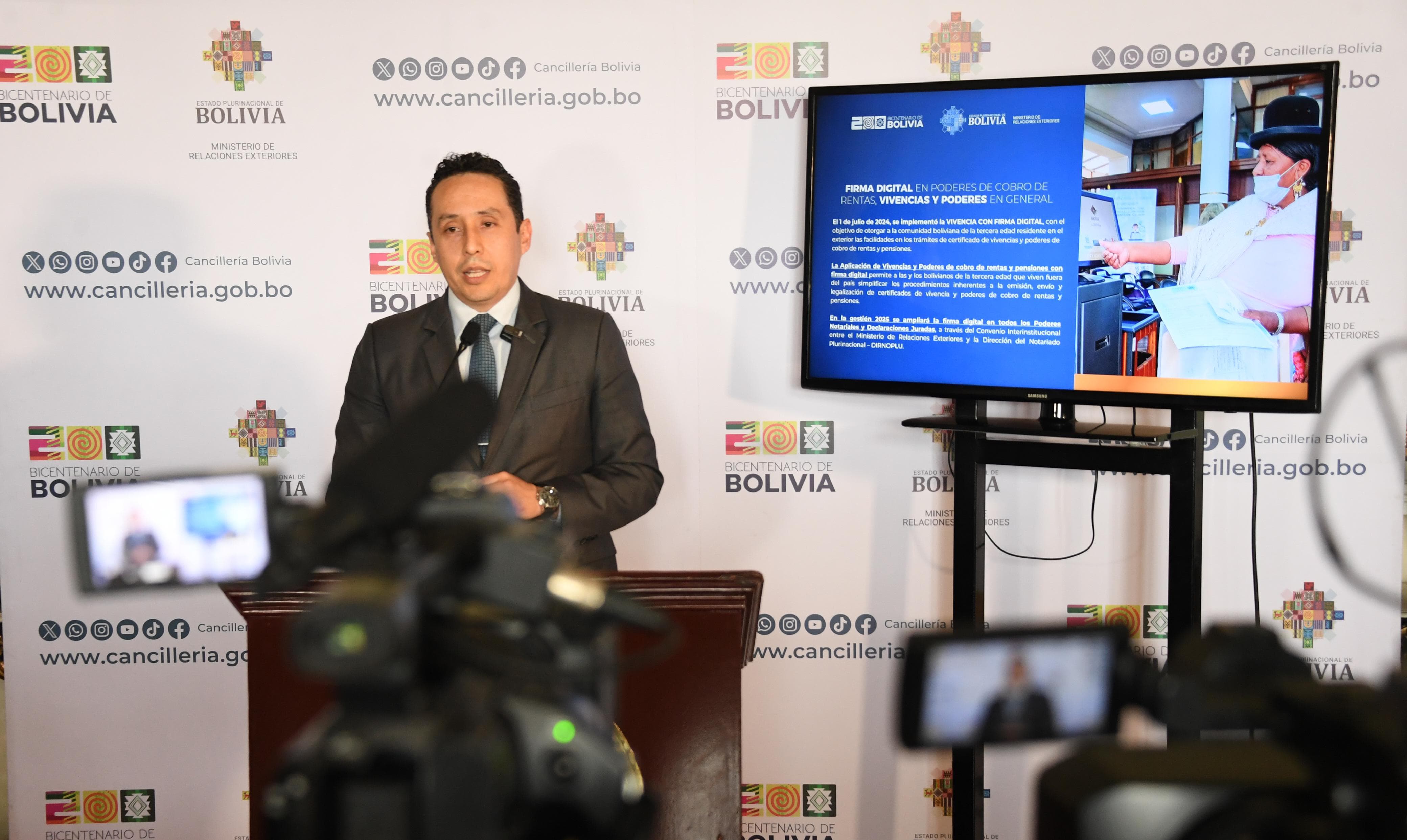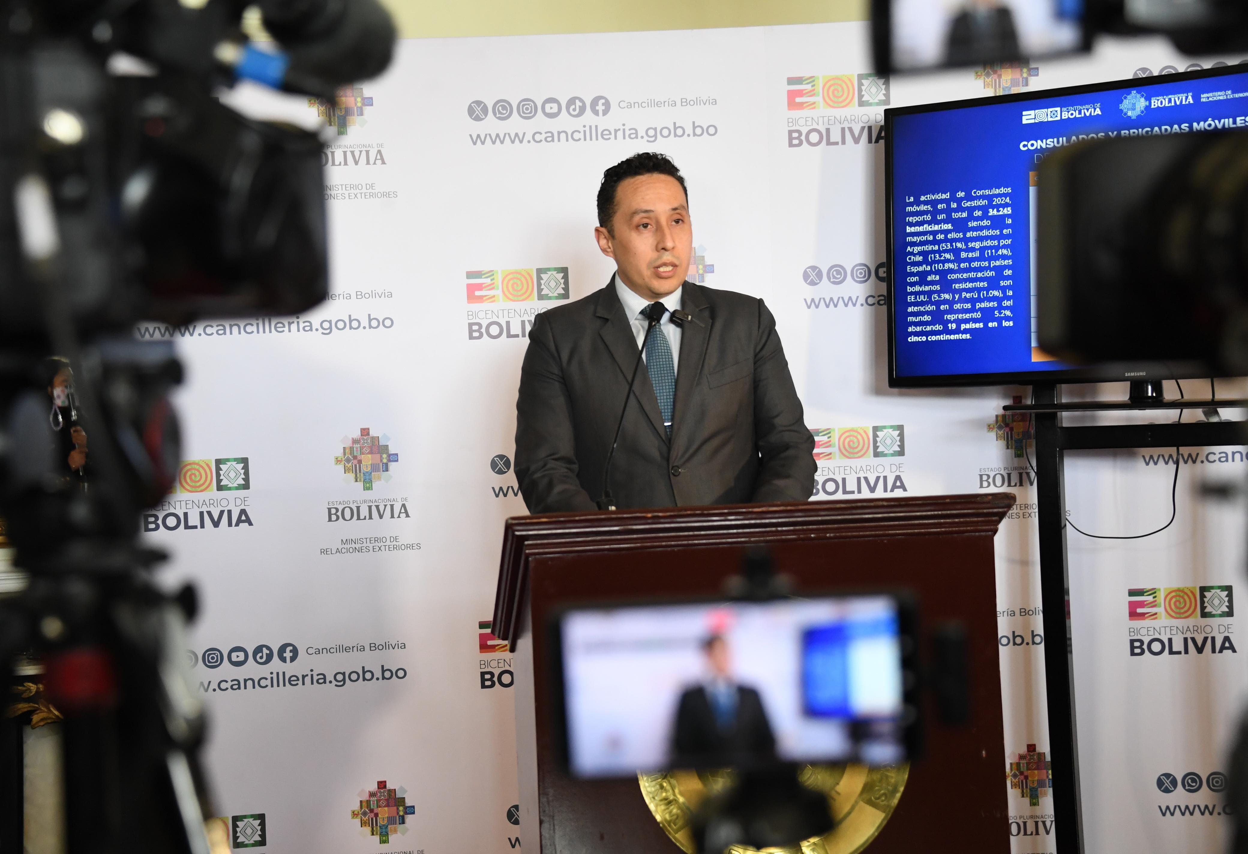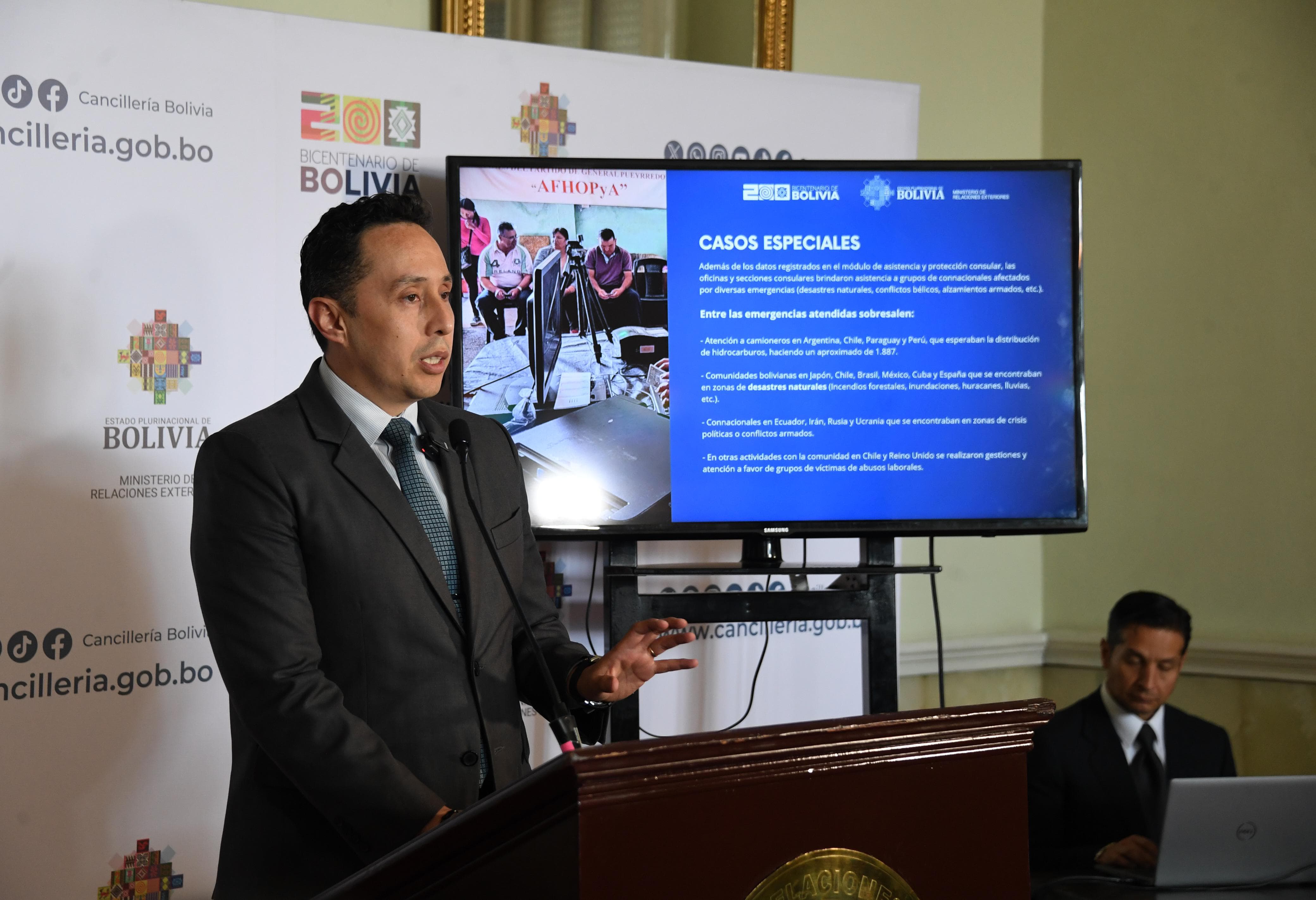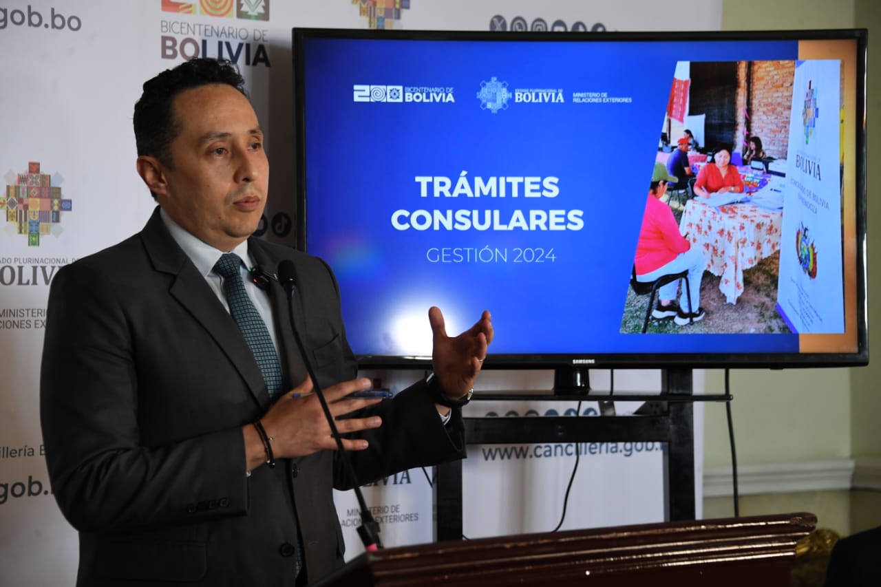 El viceministro de Gestión Consular e Institucional, Fernando Pérez Cárdenas, brindó el informe 2024 de Atención y Protección Consular, y Trámites ConsularesUsuario ABIGalería Fotográfica 09 Enero 2025 Visto: 1102ShareTwittearshare with Whatsappshare with TelegramFotos: Josué Cortéz - ABI AnteriorSiguiente
