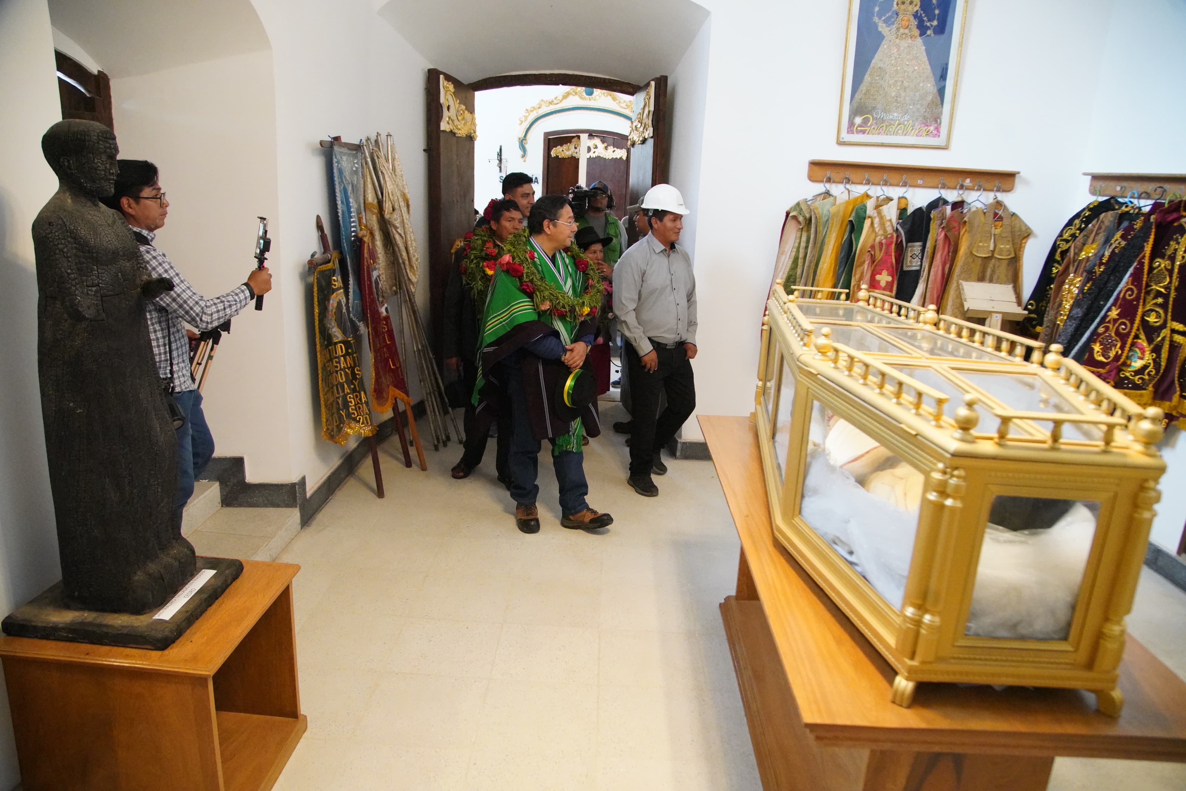 El presidente del Estado Plurinacional de Bolivia, Luis Arce Catacora, entrega el Proyecto de Restauración y Refacción del Templo Santiago de Frontera en el municipio de Tomina, Chuquisaca