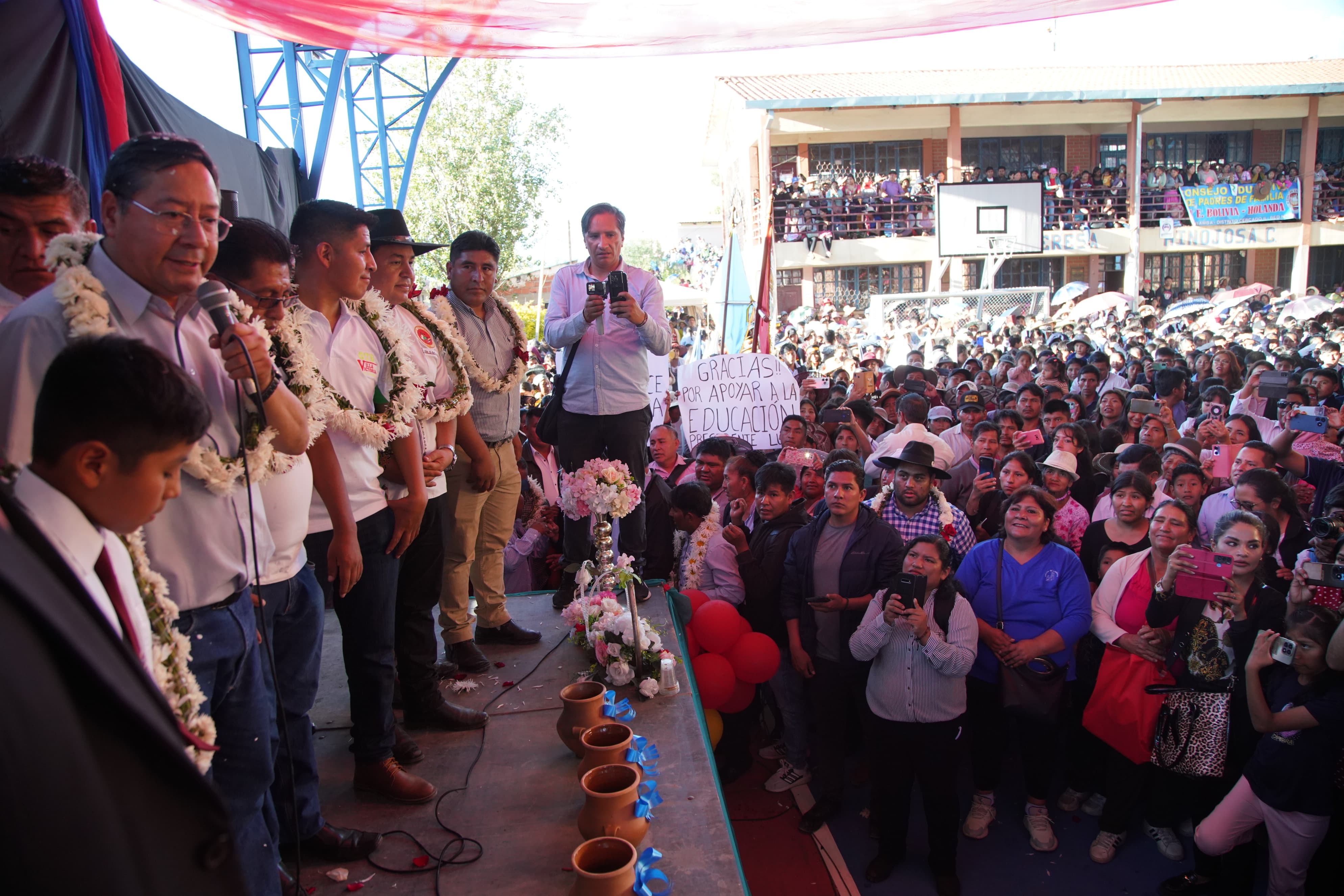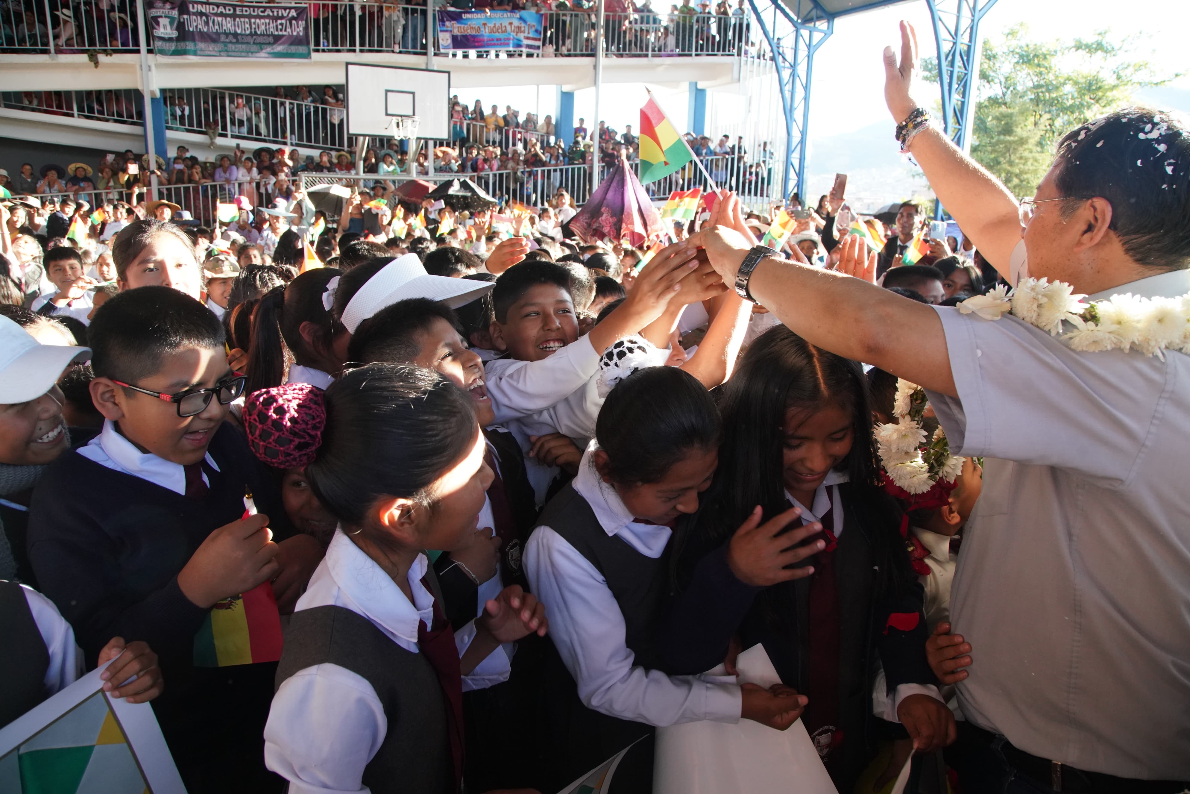 El Presidente del Estado Plurinacional de Bolivia, Luis Arce Catacora, ch'alla y entrega la Unidad Educativa "Teresa Hinojoza Caprirolo" en el municipio de CochabambaUsuario ABIGalería Fotográfica 03 Febrero 2025 Visto: 416ShareTwittearshare with Whatsappshare with TelegramFuente Comunicación Presidencial AnteriorSiguiente