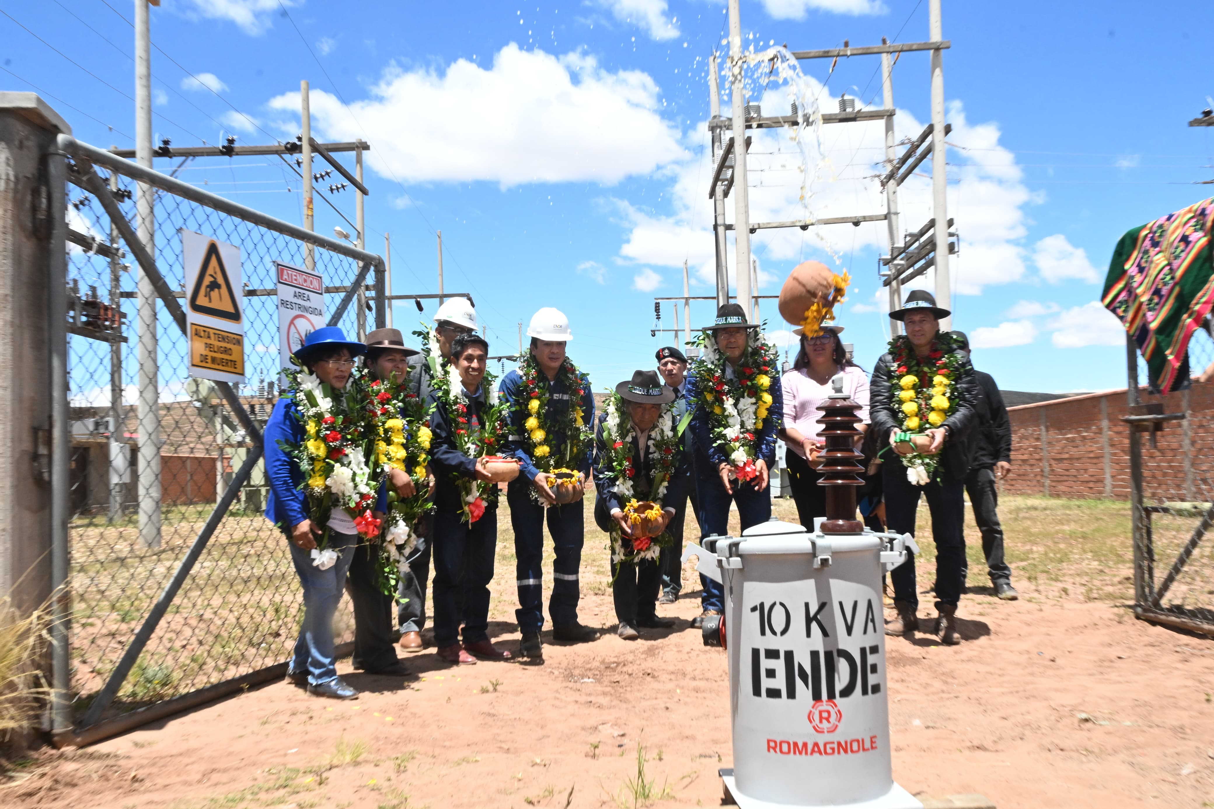 El Presidente del Estado Plurinacional de Bolivia, Luis Arce Catacora, ch'alla y entrega la construcción de la Línea de Media Tensión 24,9 kV Tramo Corque – Ancaravi, Alimentador Pisiga, en el municipio de Corque, Oruro