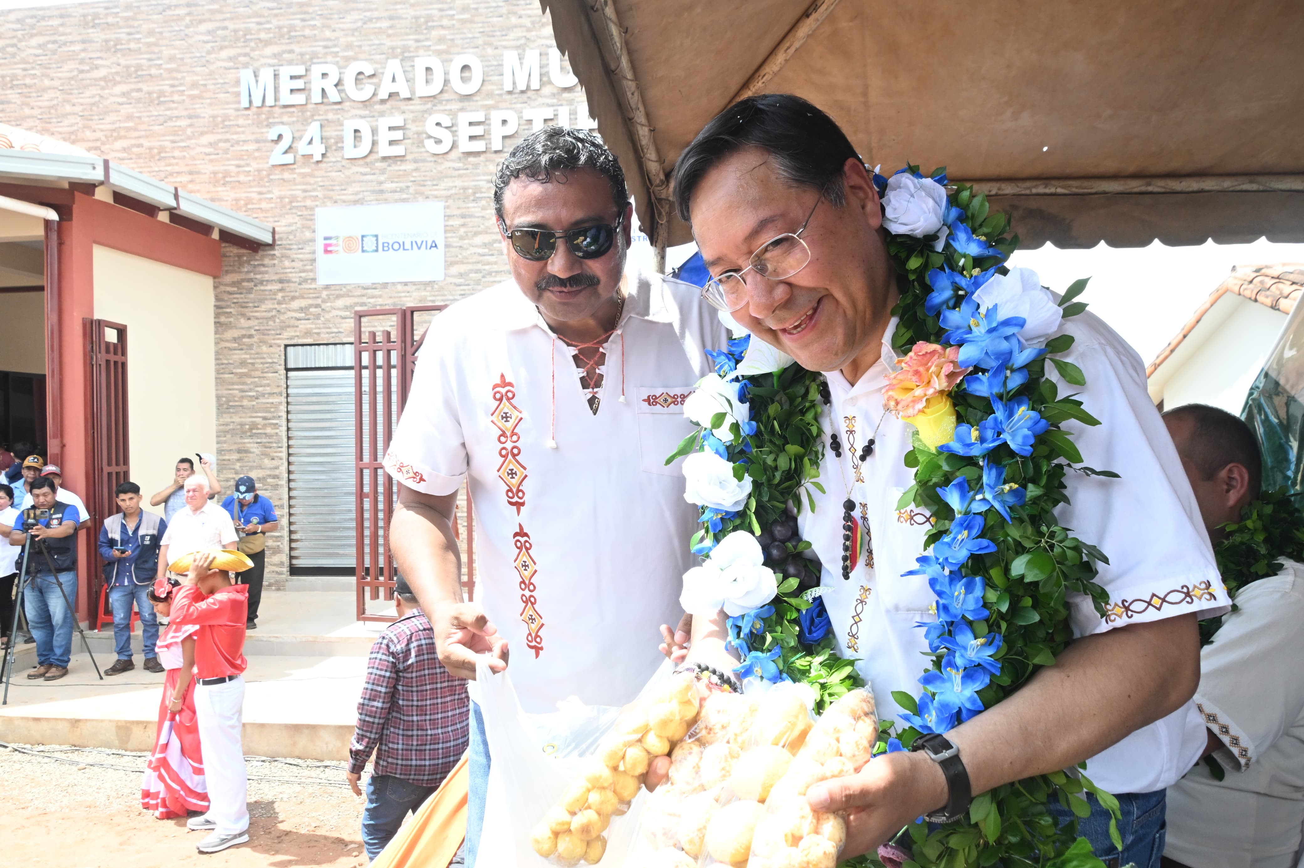 El Presidente del Estado Plurinacional de Bolivia, Luis Arce Catacora, entrega el Mercado Municipal Campesino 24 de Septiembre en San Javier, Santa CruzUsuario ABIGalería Fotográfica 12 Febrero 2025 Visto: 451ShareTwittearshare with Whatsappshare with TelegramFuente Comunicación Presidencial AnteriorSiguiente