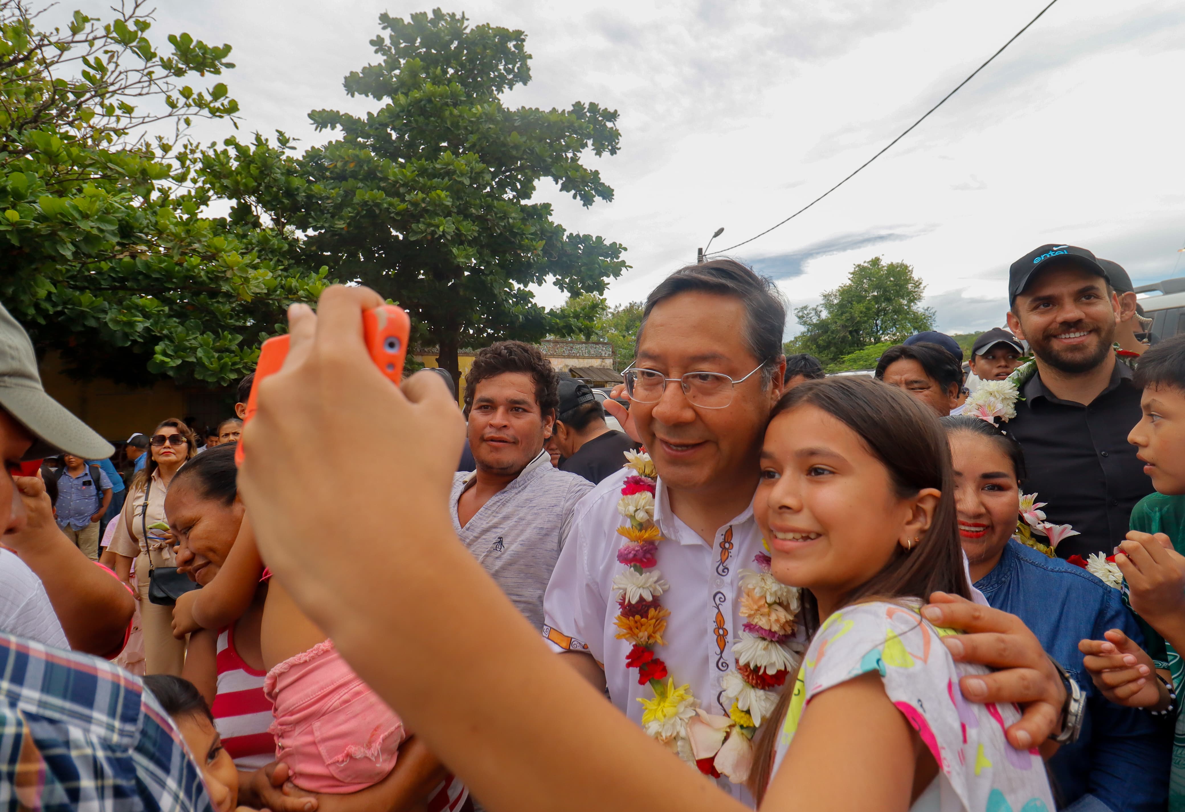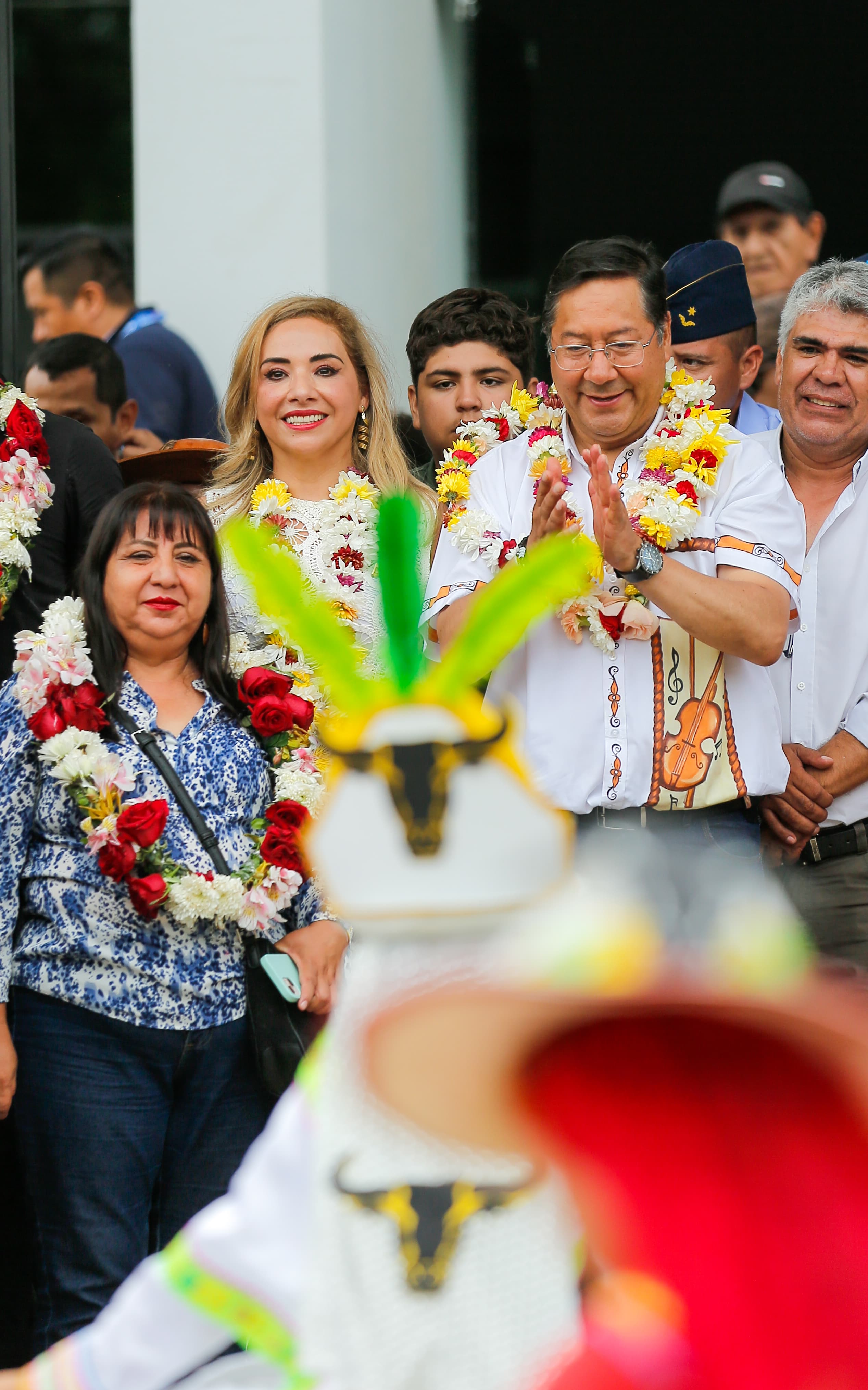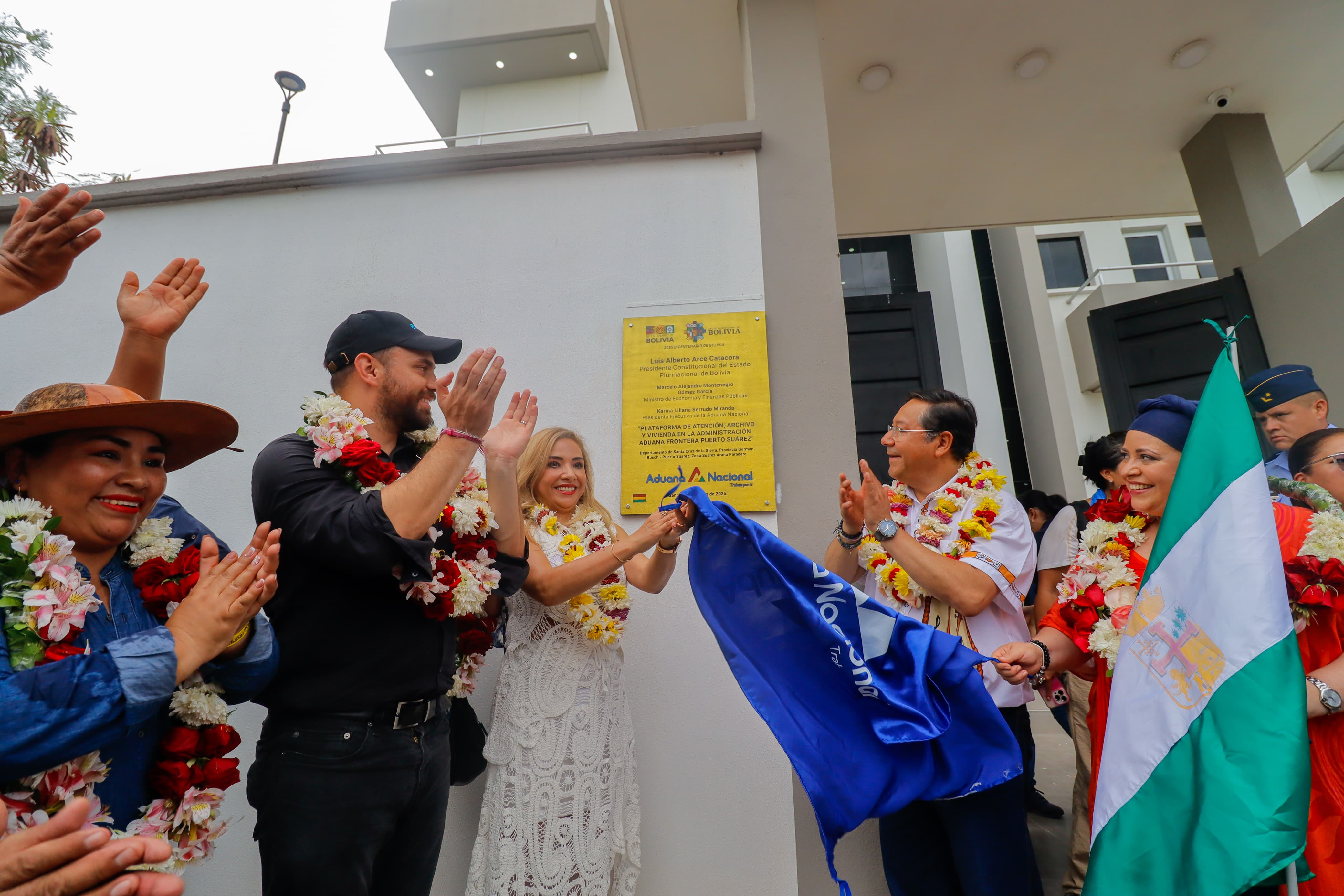 El Presidente del Estado Plurinacional de Bolivia, Luis Arce Catacora, realiza chˈalla y entrega de la Plataforma de Atención, Archivo y Vivienda en La Administración de Aduana Frontera, en el municipio de Puerto Suárez, Santa Cruz
