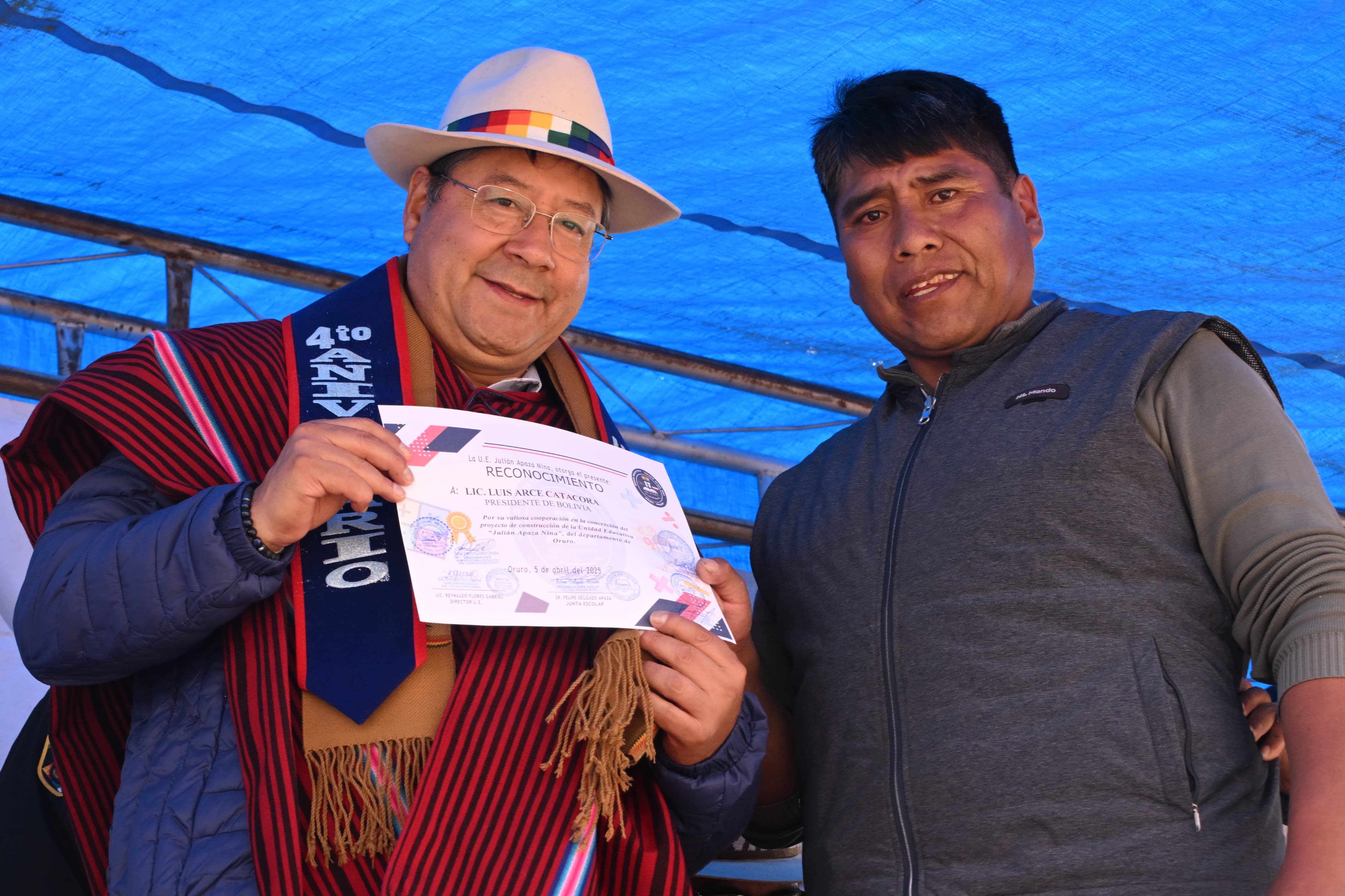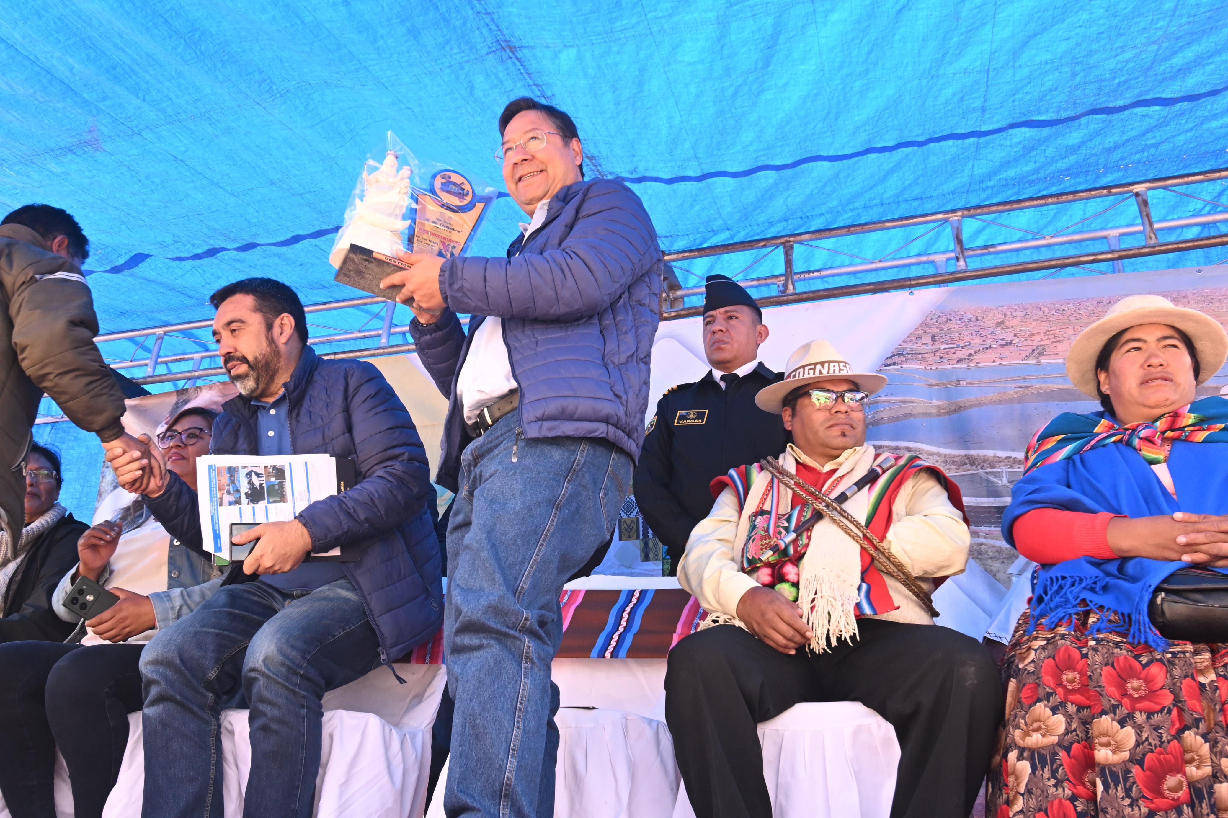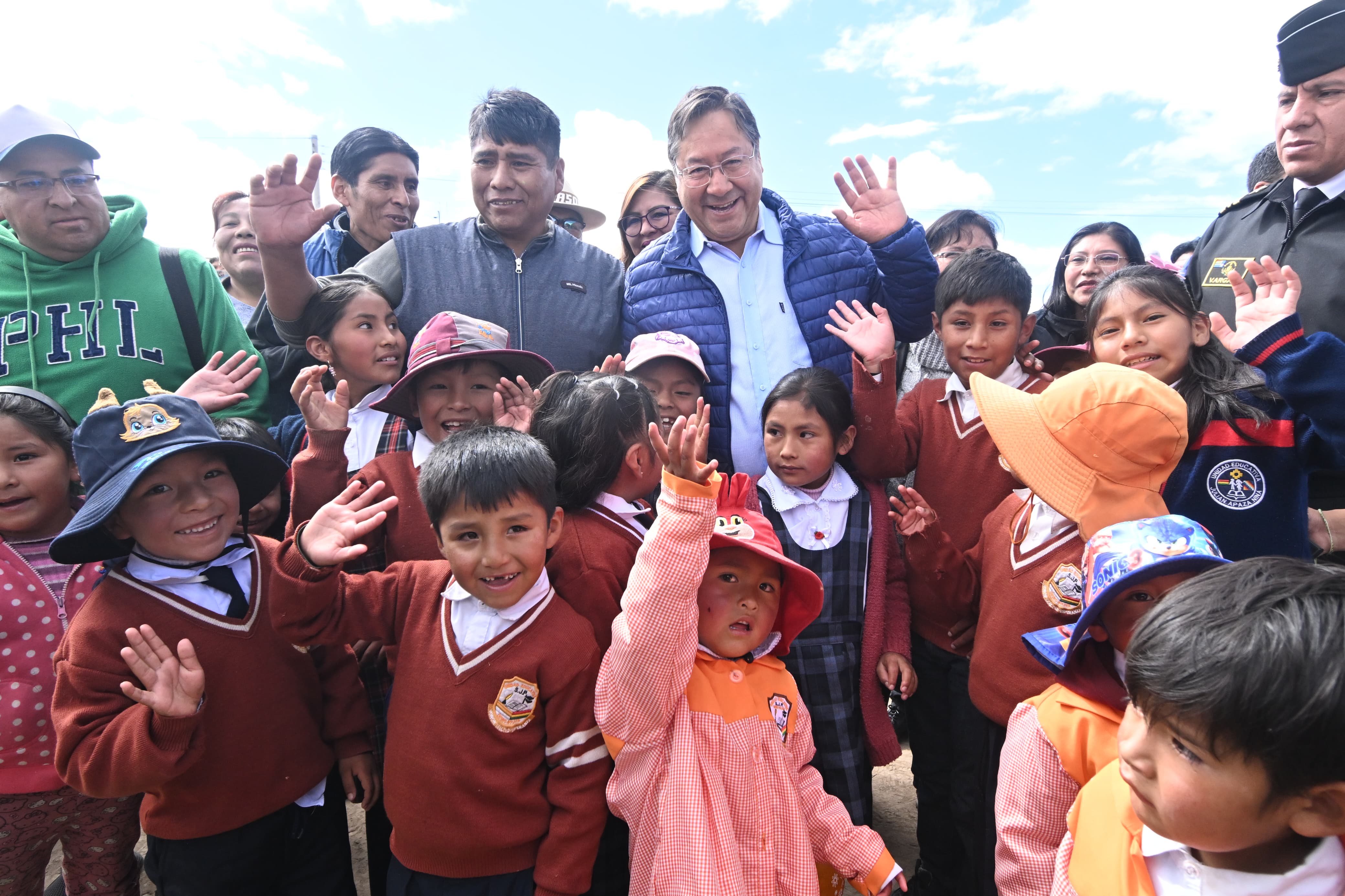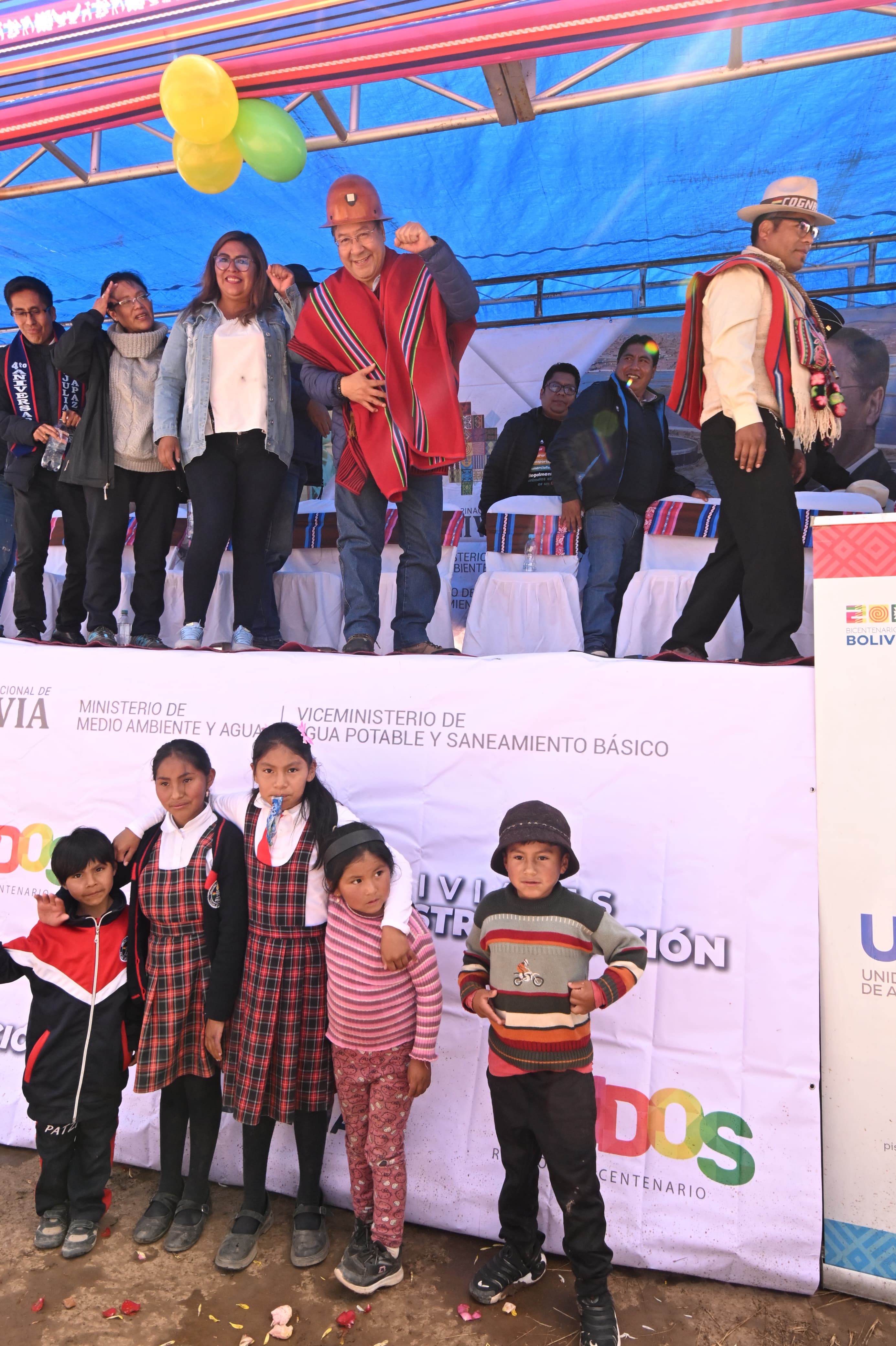 El Presidente del Estado Plurinacional de Bolivia, Luis Arce Catacora, participa en inicio a las obras de mejoramiento y ampliación del sistema de agua potable para recientes asentamientos urbanos, en la urbanización 12 de Octubre